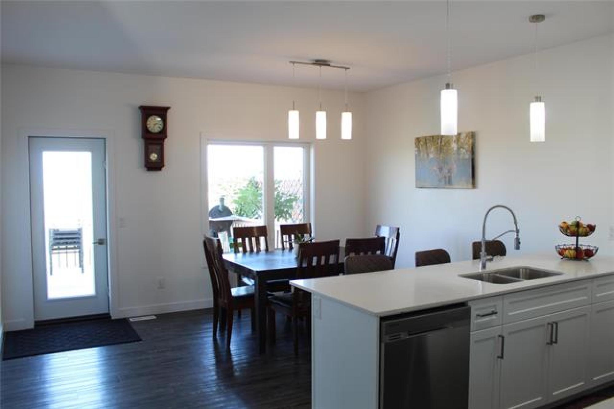 OPEN HOUSE: Thursday, Oct 9 from 6-8 pm. BEAUTIFULLY MAINTAINED 4 BEDROOM HOME featuring a recently UPGRADED BASEMENT and stylish modern finishes throughout! The bright kitchen showcases WHITE CABINETRY, QUARTZ COUNTERTOPS, STAINLESS STEEL APPLIANCES, and a cozy breakfast nook. A spacious dining area with GARDEN DOORS opens to a private DECK, while the family room offers a comfortable space to unwind. The large primary bedroom includes DUAL CLOSETS and a 4-PIECE ENSUITE. Enjoy the quality of TRIPLE-PANE PVC WINDOWS and LUXURY VINYL PLANK hazelwood driftwood flooring throughout the main living areas. The FULLY FINISHED BASEMENT adds a generous rec room, two additional bedrooms, extra storage space, and a full bathroom—perfect for family or guests. Step outside to your 14x12' DECK and STONE PATIO, overlooking open green space with NO BACKYARD NEIGHBOURS. A NEW 10x8' SHED, DOUBLE-WIDE CONCRETE DRIVEWAY with room for four vehicles, and an INSULATED, DRYWALLED GARAGE complete this exceptional property. A perfect blend of comfort, style, and space—this MOVE-IN READY HOME has everything your family needs and more! Call today to schedule your private tour.