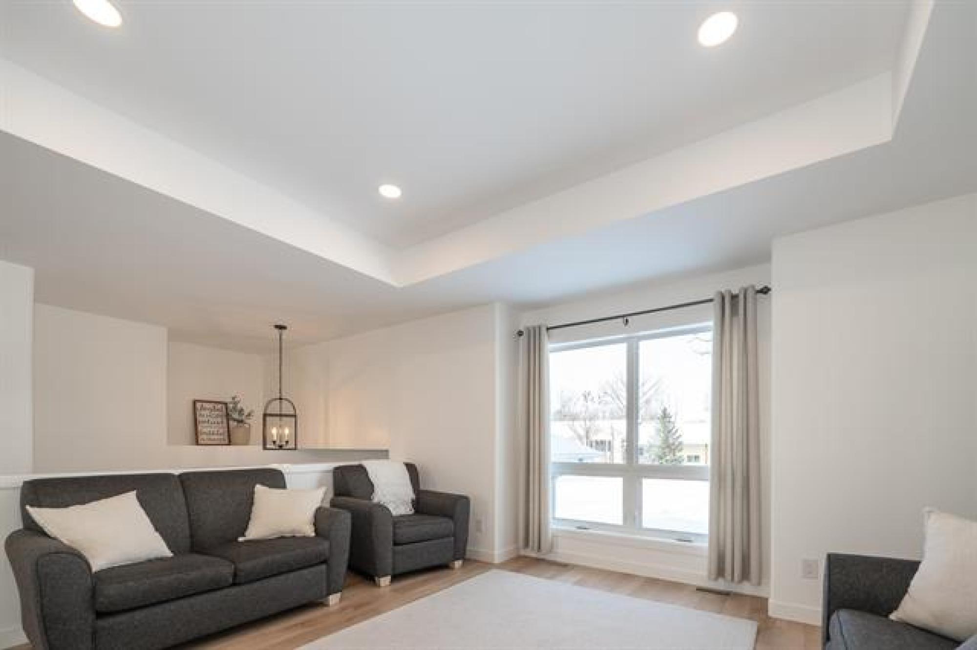 Welcome to this beautiful 1175 sq ft, bi-level home in Kleefeld just steps from K-8 school, finished with Hardie board siding and stone veneer for great curb appeal. A paver-style walkway leads to the front, providing a polished welcoming approach. Inside, the foyer and stairs feature tile flooring, leading up to a bright main floor with vinyl plank flooring throughout. The living room offers tray ceilings and pot lights, while the kitchen features quartz countertops, white shaker-style cabinets with soft-close doors and drawers, farmhouse sink, stainless steel appliances and a corner pantry. The primary bedroom has direct access to a 4-piece Jack & Jill bathroom. With two additional main-floor rooms including Bedroom 2 and Bedroom 3. Bedroom 3 is currently used as a laundry room but easily converted back. Triple-pane windows and patio door lead to a large deck and fully fenced yard with an 8’ x 12’ shed. The partially finished basement offers a carpeted rec room, 4th bedroom, 4-piece bath, dual-pane windows, and potential for a 5th bedroom.