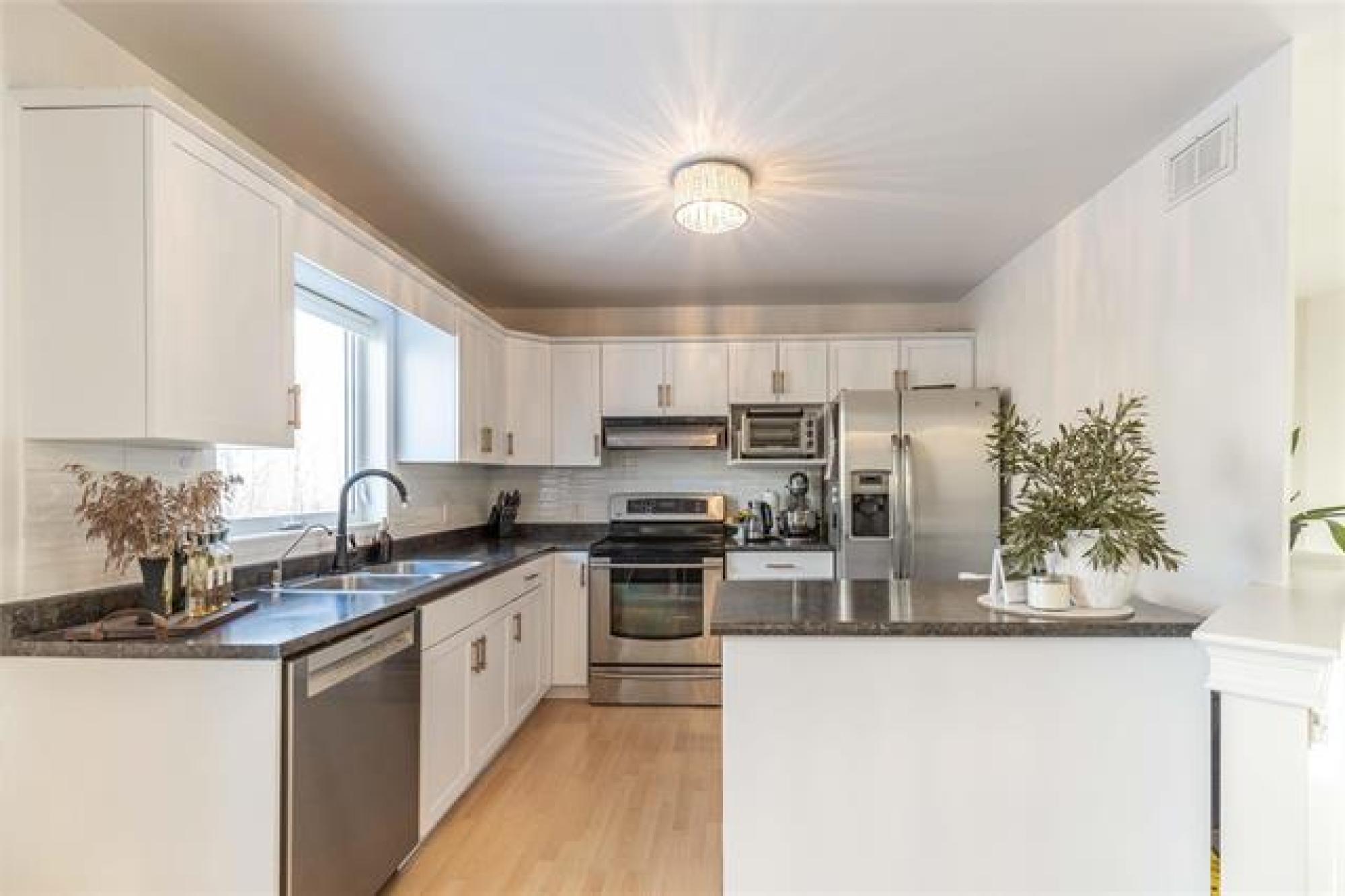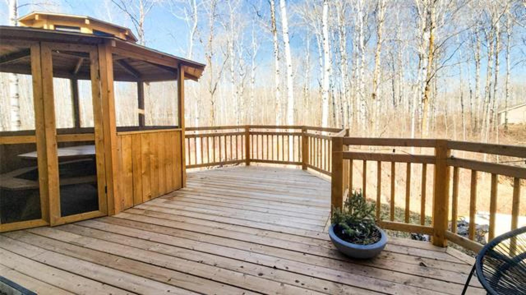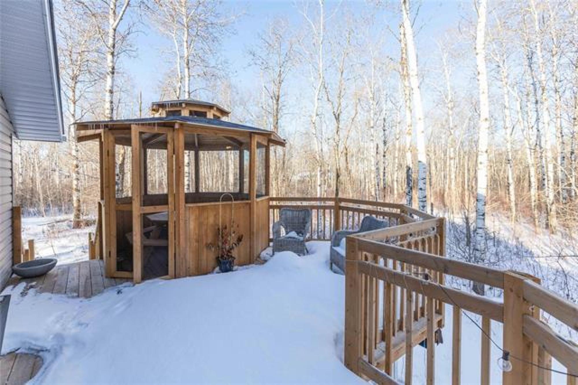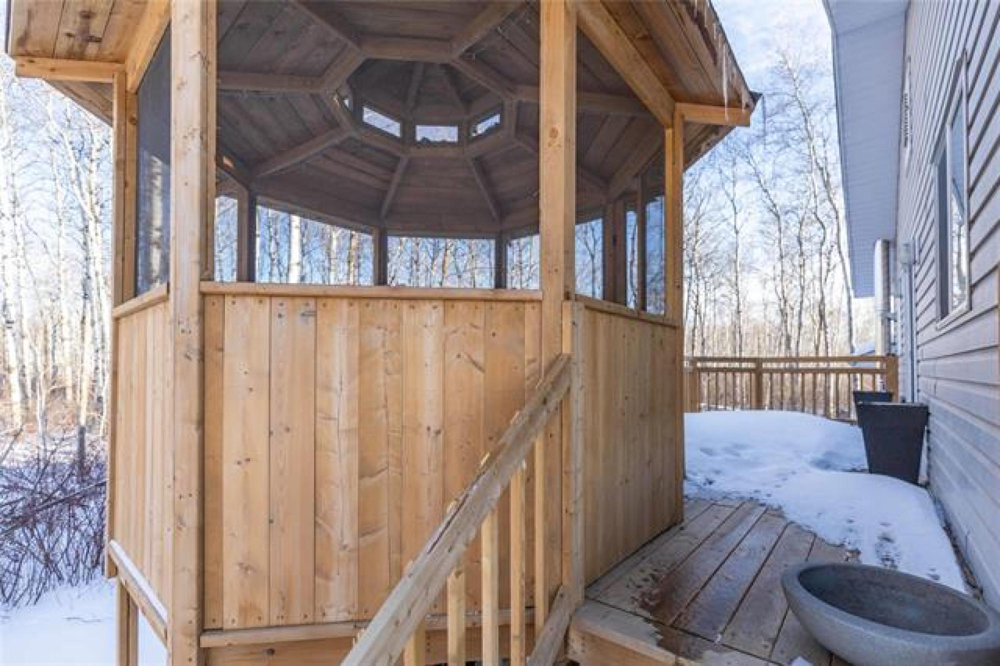 Showings start: Thurs, Mar 19. No offers before Open House. OPEN HOUSE: Sat, Mar 21 from 1-3 pm. Elegant and beautifully maintained 4 bedroom, 2 bathroom home set on nearly 2 acres of private, picturesque land. The stunning kitchen is a true highlight, featuring white shaker-style cabinets, tile backsplash, pristine stainless steel appliances and a spacious island. The dining area is enhanced by a striking feature wall and patio doors leading to the deck, creating a seamless connection to outdoor living. The inviting living room offers an elegant atmosphere with a cozy fireplace as its focal point. The main level hosts 2 bright bedrooms and a 4 pc bathroom. Downstairs, the lower level offers 2 spacious bedrooms, family room with wood stove and large 4 pc bathroom with jetted tub. Unique design details throughout add charm and character to this exceptional property. Step outside and enjoy your own private summer retreat. The raised deck and gazebo offer the perfect place to relax or entertain, overlooking a beautifully treed backyard framed by mature birch trees. With almost 2 acres, this property offers exceptional privacy, peaceful surroundings and the perfect blend of country-style living & comfort.