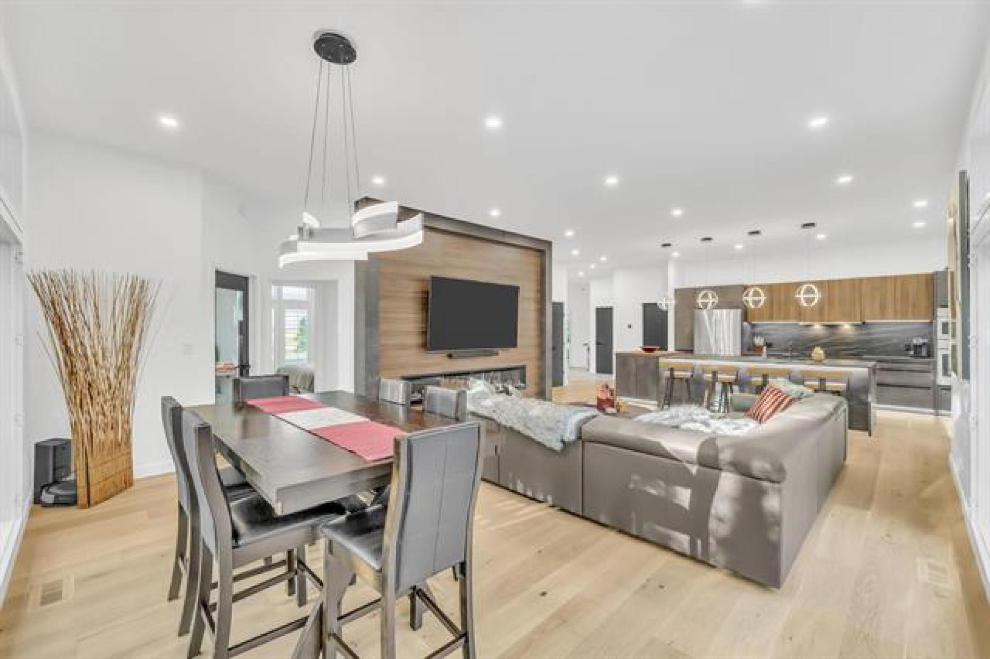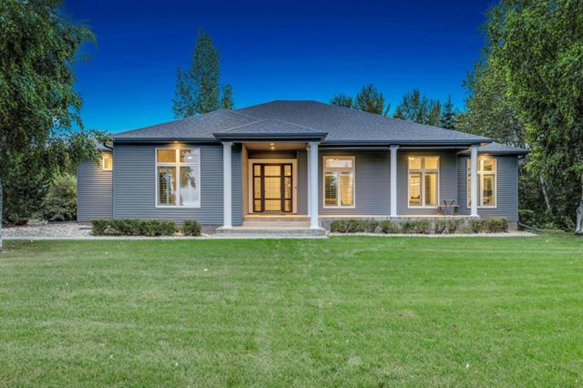 NEW PRICE! This showstopping Springfield stunner delivers luxury, space & jaw-dropping style on a sprawling 2-acre treed lot! Complete main floor makeover w/Soaring 10' ceilings, wood accents & bold dark finishes set the tone the moment you step inside. The great room stuns—anchored by a sleek electric fireplace & flanked by a magazine-worthy kitchen w/ custom cabinetry & under cab lighting, wall oven, cooktop & split-level island w breakfast bar. The layout flows effortlessly through the living area into a dramatic formal dining space—made to host. Main level features a dream home office(4th bedroom) and a convenient mudroom w laundry. The Master WOWing w/ walk-in shower & standing tub. Downstairs? Fully finished & ready to impress: massive rec room, theatre, bathroom + gym(can be converted back into 2 bedrooms)! Outside, entertain in total privacy w/ a concrete deck, firepit, patio & manicured yard. Oversized attached double garage. Ski trails, Champion Golfing, the perimeter of Winnipeg & Town of Birds Hill just minutes away—this is more than a home, it’s a lifestyle upgrade!