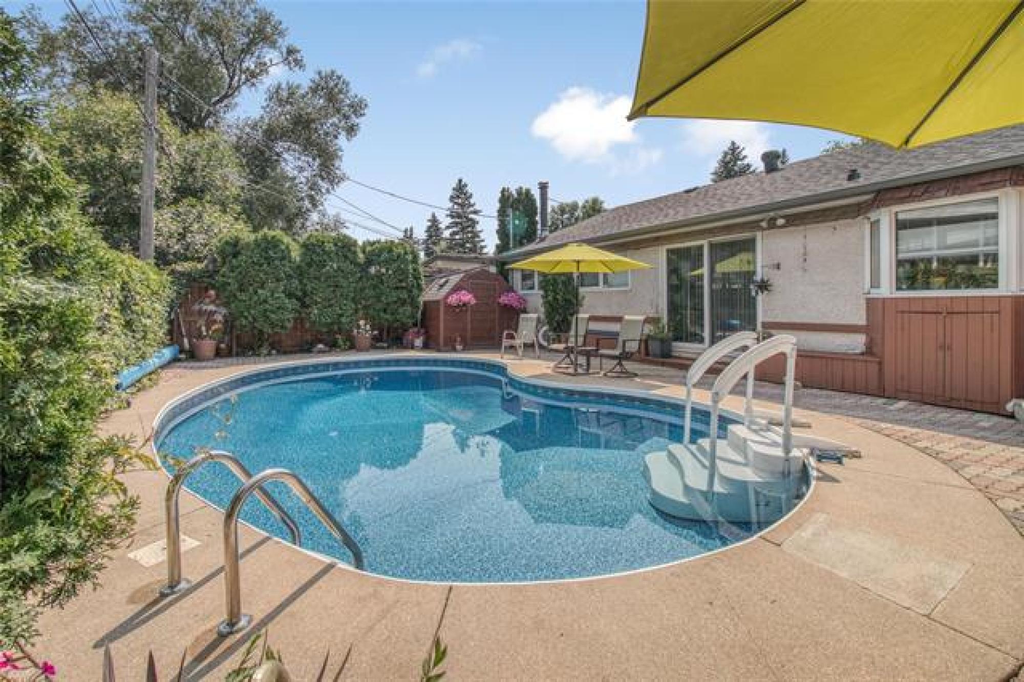 S/S Thurs Oct 2, offers Thurs Oct 9. You are going to love this Niakwa Park lovingly maintained and updated 1527 sf bungalow with attached garage. Just steps away from kayaking on the Seine and amazing walking trails. Step into the foyer and discover the lovely living room with hardwood floors and large window for natural light open to the dining room which is adjacent to the gorgeous updated kitchen with cork flooring, maple cabinetry, granite counters and stainless steel appliances. Step around the corner and check out the four season sunroom with gas stove. 3 lovely main floor bedrooms with 5pc modern bath. The finished basement is awesome with a huge rec room, t & g cedar feature wall, wet bar and stone faced woodburning fireplace. Updated tiled 2nd bath with shower and sauna. 4th bedroom (non egress), laundry, utility room and storage. The maintenance free fenced yard is absolutely amazing with patio, gazebo, raised deck, shed and the best part... a 16x32 kidney shaped pool with newer liner. Many updates over the years: most windows, shingles, kitchen, baths, appliances, flooring & more