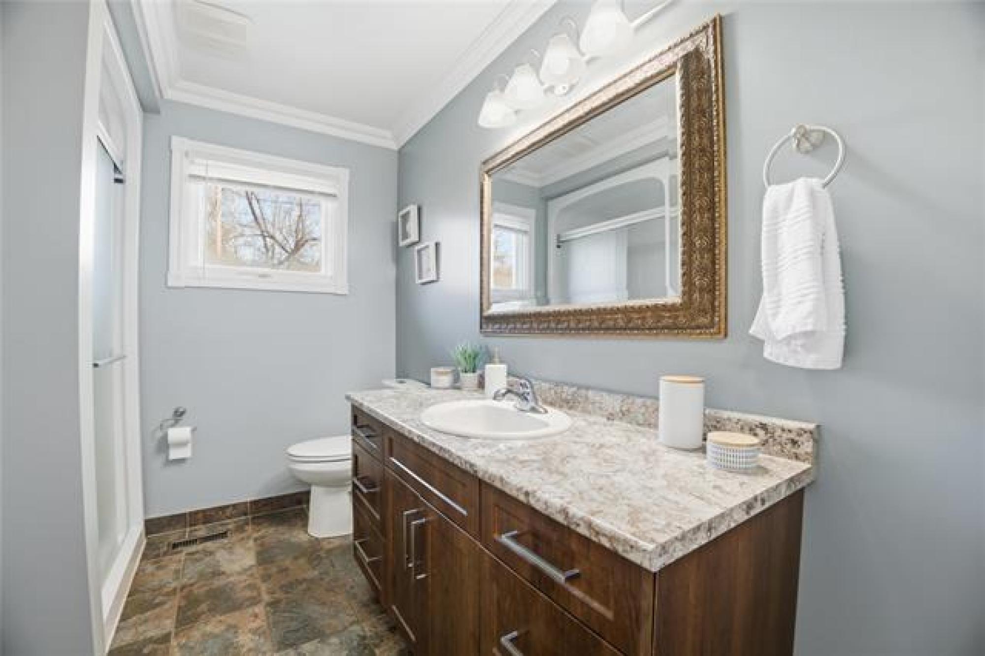 Beautiful well maintained property surrounded by mature trees! This 2,000 SqFt bungalow features 4 bedrooms, 2 bathrooms, main floor laundry and potential for a second living quarters on the main floor! Walk into the foyer that leads you into the renovated peninsula style kitchen with new counter tops and a formal dining area! The living room is very spacious with a new wood burning fireplace and patio door to the backyard! The primary suite is large with a walk in closet, patio doors and a 4 piece spa like ensuite bathroom with a walk in shower and jetted tub! The main floor also features 2 additional bedrooms and a 4 piece bathroom. The 2nd part of the house has a cute niche area that can be used as an additional living room, work/office space, or seal it off and rent it out to a friend! There is a full basment under half the house that has a 4th bedroom and storage room. The other half is a crawl space. Attached is a large 27'x24' double car garage! The backyard has large mature trees, a fireplace and 16'x12' storage shed. Many updates through the home, (furnace, AC with heat pump, fireplace 2024) (windows 2023) (Septic field, hot water tank, water softener 2021) (Shingles 2016) and many more!