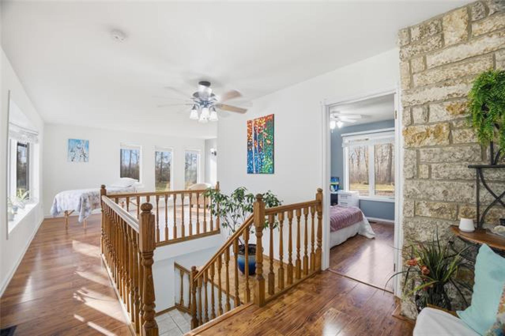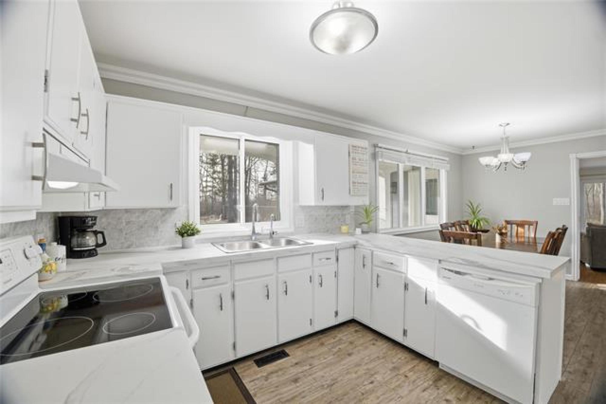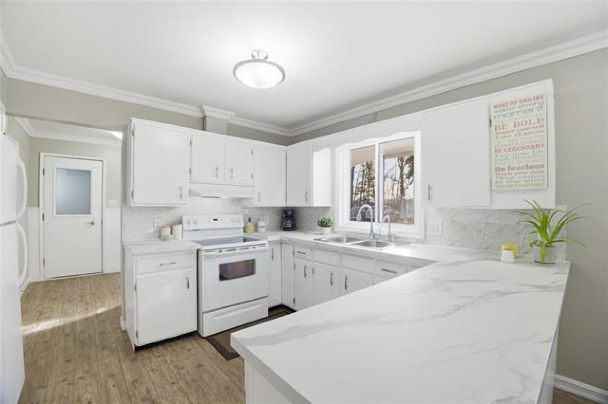 Beautiful well maintained property surrounded by mature trees! This 2,000 SqFt bungalow features 4 bedrooms, 2 bathrooms, main floor laundry and potential for a second living quarters on the main floor! Walk into the foyer that leads you into the renovated peninsula style kitchen with new counter tops and a formal dining area! The living room is very spacious with a new wood burning fireplace and patio door to the backyard! The primary suite is large with a walk in closet, patio doors and a 4 piece spa like ensuite bathroom with a walk in shower and jetted tub! The main floor also features 2 additional bedrooms and a 4 piece bathroom. The 2nd part of the house has a cute niche area that can be used as an additional living room, work/office space, or seal it off and rent it out to a friend! There is a full basment under half the house that has a 4th bedroom and storage room. The other half is a crawl space. Attached is a large 27'x24' double car garage! The backyard has large mature trees, a fireplace and 16'x12' storage shed. Many updates through the home, (Furnace, AC with Heat Pump, Fireplace 2024) (Windows 2023) (Septic Field, Hot Water Tank, Water Softener 2021) (Shingles 2016) and many more!