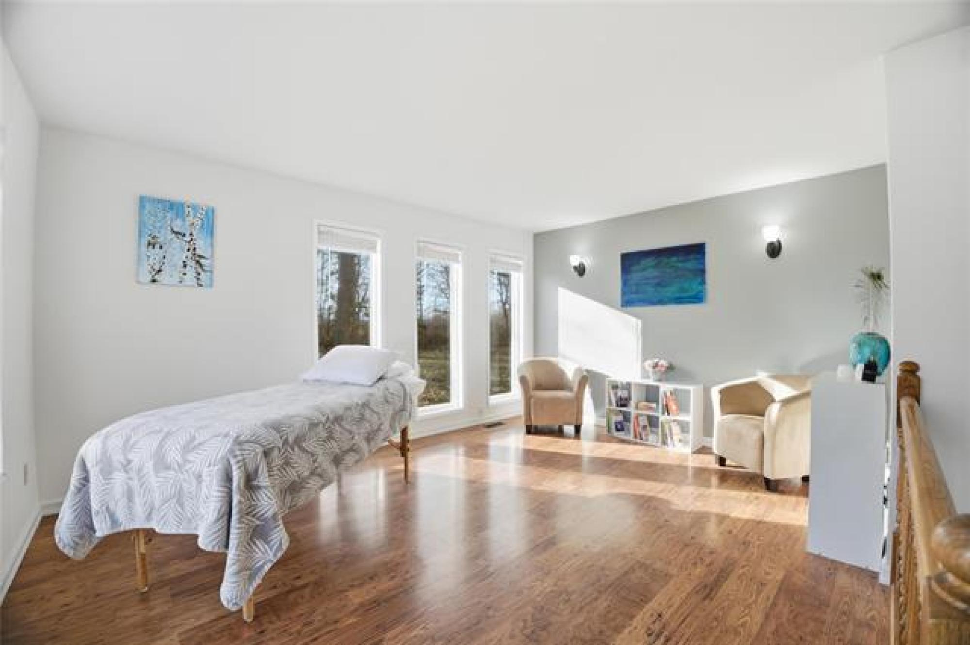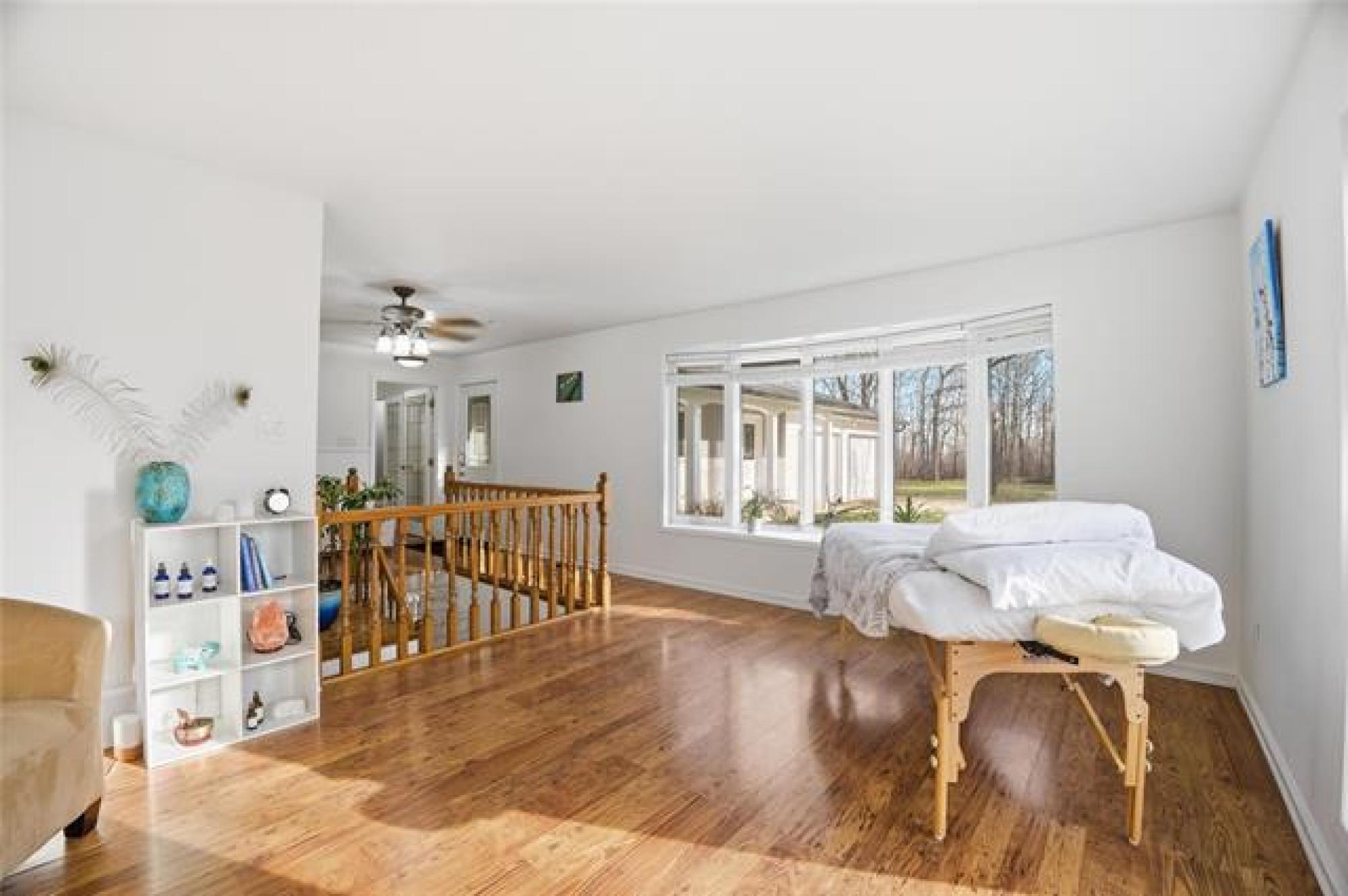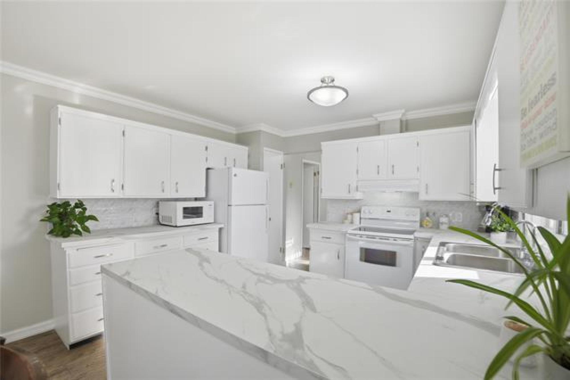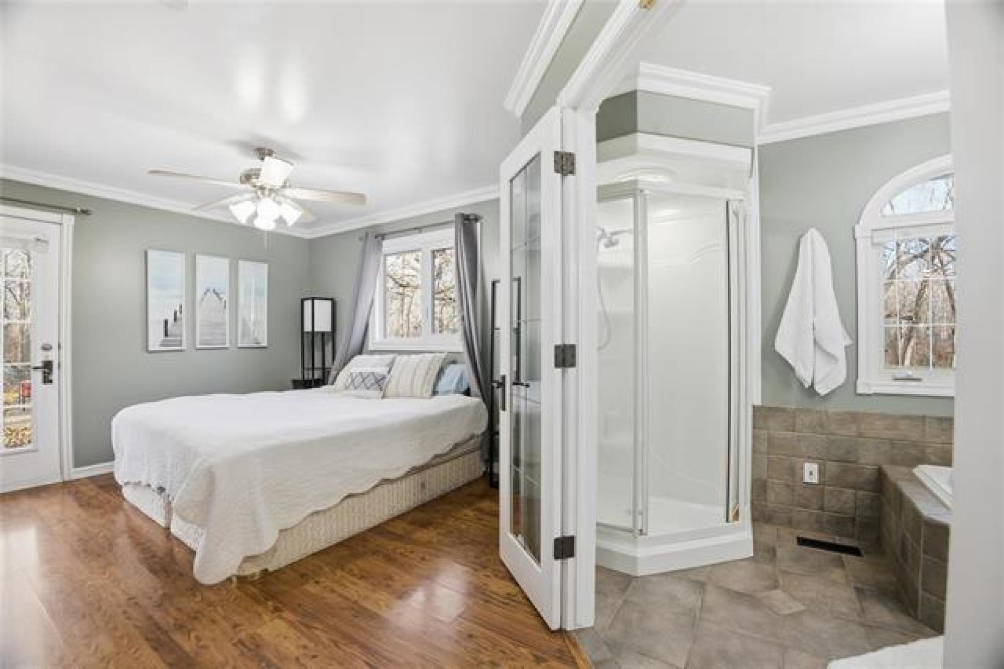 Beautiful well maintained property surrounded by mature trees! This 2,000 SqFt bungalow features 4 bedrooms, 2 bathrooms, main floor laundry and potential for a second living quarters on the main floor! Walk into the foyer that leads you into the renovated peninsula style kitchen with new counter tops and a formal dining area! The living room is very spacious with a new wood burning fireplace and patio door to the backyard! The primary suite is large with a walk in closet, patio doors and a 4 piece spa like ensuite bathroom with a walk in shower and jetted tub! The main floor also features 2 additional bedrooms and a 4 piece bathroom. The 2nd part of the house has a cute niche area that can be used as an additional living room, work/office space, or seal it off and rent it out to a friend! There is a full basment under half the house that has a 4th bedroom and storage room. The other half is a crawl space. Attached is a large 27'x24' double car garage! The backyard has large mature trees, a fireplace and 16'x12' storage shed. Many updates through the home, (Furnace, AC with Heat Pump, Fireplace 2024) (Windows 2023) (Septic Field, Hot Water Tank, Water Softener 2021) (Shingles 2016) and many more!