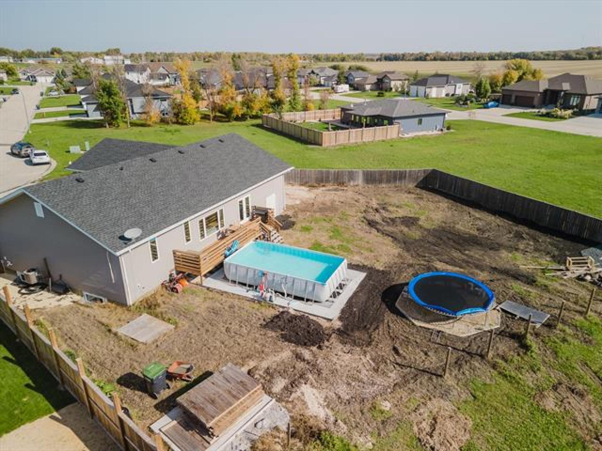 Exceptional custom built raised bungalow in premium location just 30 mins south of Wpg! No cookie cutter build here...this amazing 10 year old 4 bedroom, 2 full bathroom home has been designed & constructed w/impeccable upgrades & premium materials. Open concept main floor living, dining, kitchen w/deluxe appliance package. The primary suite includes ensuite w/double sinks & walk in closet. 2 more bedrooms & main 4 piece bath is thoughtfully laid out. A welcoming foyer is complimented by terrific storage/mudroom from the garage. Bright large windows & 9' ceilings create an idyllic atmosphere. The fully insulated basement is roughed in w/plumbing for an additional bath & wet bar. A blank canvas for an amazing recreation/family room & additional bedrooms w/office space, laundry & storage. Attached oversized garage w/3 overhead doors designed for ultimate convenience for your vehicles & recreation/power toys. The ultimate location backing onto greenspace w/easy access to playground, daycare and more. Situated in a serene neighborhood surrounded by beautiful homes & easy access to all the communities amenities! Full building plans & survey available w/outdoor pool/equipment & pool table also included!