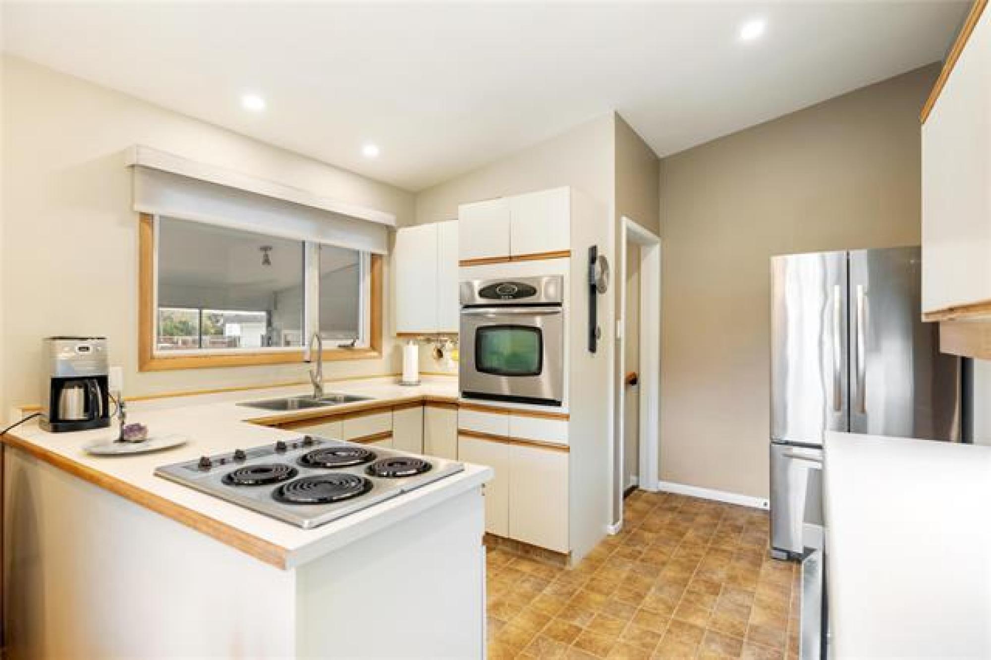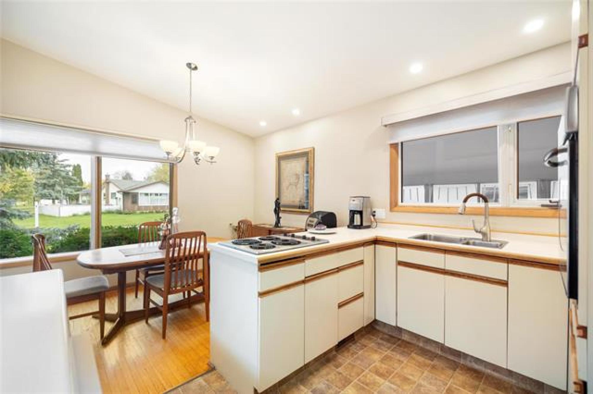 SS Now, OTP Wed Oct 22nd at 3pm. Welcome home to your slice of Westwood paradise! This straight and solid bungalow has been lovingly cared for by the same owner for 55 years, a true reflection of the amazing neighbourhood, location, and beautiful, private yard. Feels like living at the lake! Bright and inviting, the home features an open, airy layout with vaulted ceilings, hardwood floors, and an electric fireplace as the cozy focal point. The kitchen offers great prep space, ample storage, and easy flow to the dining area. The main floor offers three bedrooms, an updated bath with double sinks, and good closet space. Two bedrooms have patio doors leading directly to the serene landscaped deck and treed yard, ideal for enjoying the outdoors in every season. Downstairs, the fully finished basement adds flexibility with a large rec room, office or play area, a fourth bedroom, and a second full bath. Plenty of storage under the stairs, in the laundry/mechanical room, and an extra coat closet keep everything organized. Updates include shingles (2016), Trane furnace (2009), Daikin A/C (2021), and 200-amp service. Carport is garage-ready. A truly wonderful place to call home!