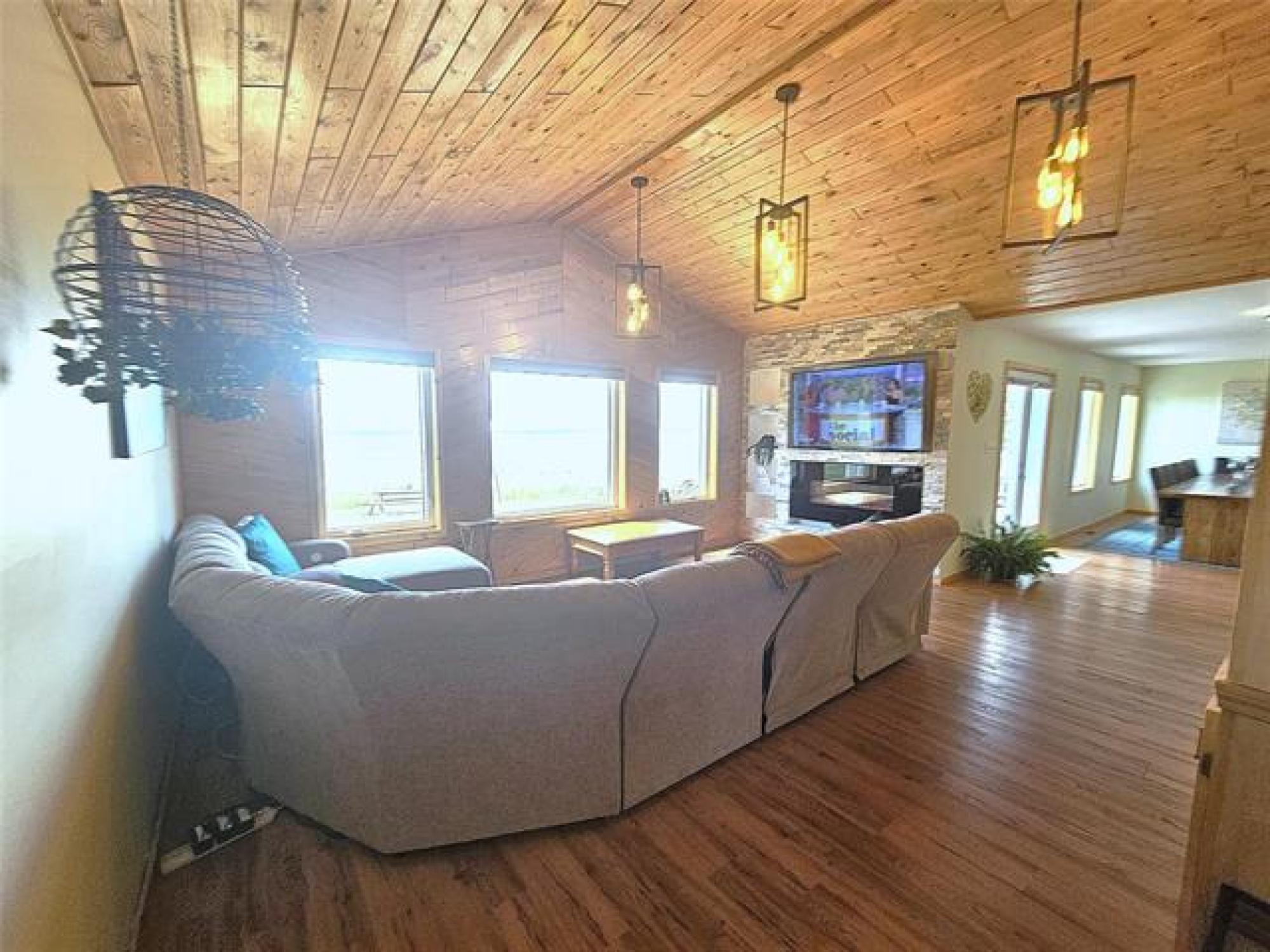 Offers Anytime On This Meticulously Updated, & Extremely Well Kept, Lake Front Year Round Home! Features Approx 1850 sqft With 4BRs & 3 Bathrooms (2 Are En-suites). Enter Into The Home Either Thru The Double Attached Garage (Which Has A Wheel Chair Lift) Entry To The Large Mudroom/Laundry Room, Or The Front Door To A Spacious Entry/Foyer With Large Double Closet Area. Huge DinRm Area With Fantastic Lake Views & Garden Doors To A 22X8 Composite Deck. Kitchen Features Solid Oak Cabinets, Corian Counter Tops & Newer High End Appliances, Huge LR W/Vaulted Ceiling, Feature Wall W/Electric Fireplace & Entertainment Area PLUS, Large Windows Facing The Lake & Stunning Sun Sets! All 4 Brs Are A Good Size W/Primary BR W/3 Piece En-suite On 1 Side Home, 2nd BR w/3 Piece En-suite Off DR/LR, 3rd Bathroom (4 Piece), 3rd & 4th BRs Are By The 3rd Bathroom. 4th Bedroom Has Lake (West) Facing Garden Doors To A Composite Deck With Hot Tub! Home Features Maintenance Free Exterior, Triple Pane Windows Thru-Out, Heat Pump, Central Air, Large Concrete Holding Tank, LVP Flooring Plus So Much More! Shows "AAAA"! Call Your Agent To Get More Info Or To View This Property.