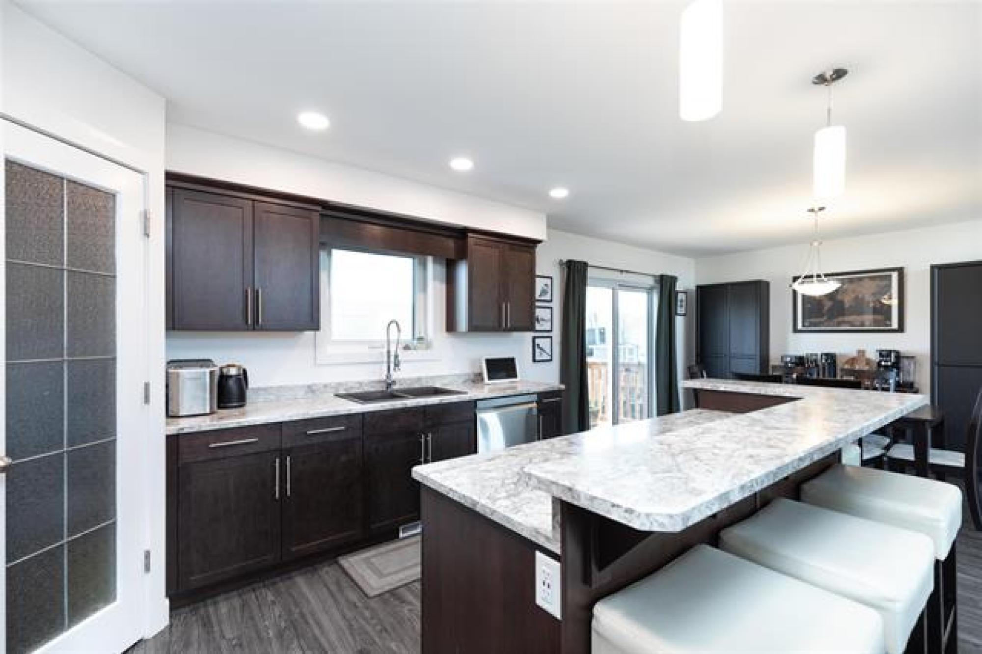 Offers presented Wed Nov 12 @ 7pm. OPEN HOUSE: Sun, NOV 9 from 2-4pm! Enjoy relaxing country views & stunning sunsets right out your wall of windows! This delightful 1601 SF, 4BR, 2 bath home sits on a roomy lot with a fully fenced backyard. A spacious front entry welcomes you in with a handy laundry room to the right if you have dirty clothes to remove! Step into the impressive open concept main living area. The LR features vaulted ceiling, a wall of windows & an electric fireplace feature wall with shelves. The KIT is sure to impress with its large island w/bar seating for 4 & corner pantry. The dining area has handy patio doors opening to the back deck, the gas BBQ is included! Durable yet beautiful vinyl plank floors run throughout, perfect for children & pets! The primary suite sits on the opposite side of the home from the other BRs, offering privacy. It features a WI closet & 3pc ensuite. 2 more BRs & the main bath complete this level. Downstairs you will appreciate the high ceilings. There is a 4th BR & plenty of space for a 5th. There is also room for a 3rd bath & large family room. The possibilities are endless! C/A will help keep you cool during the hot summer! Don't let this one slip away!