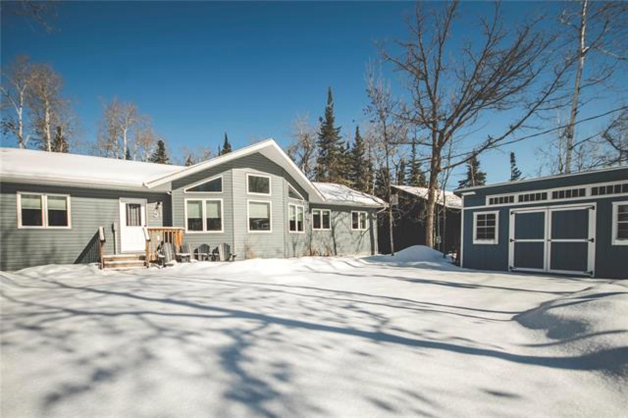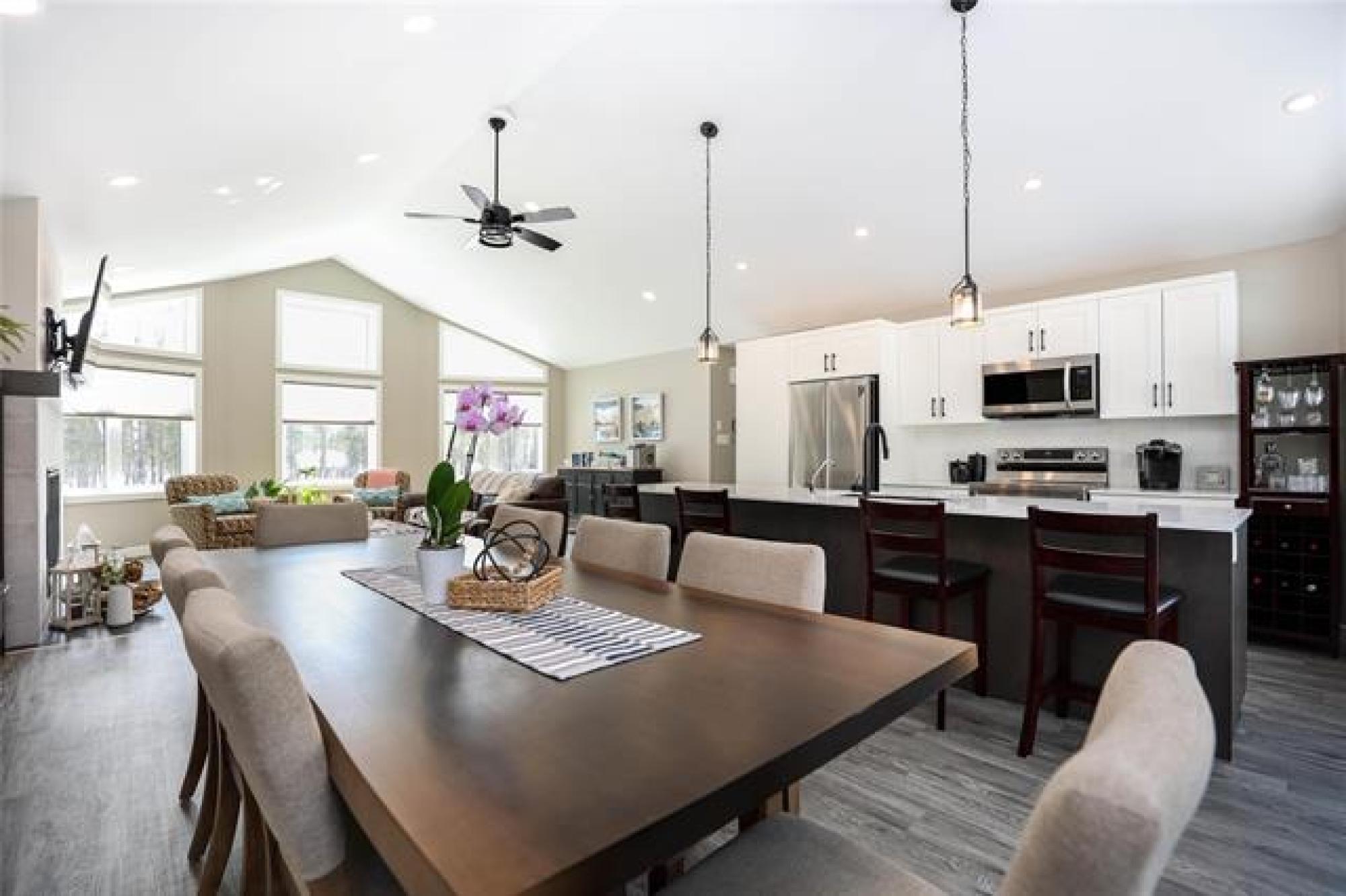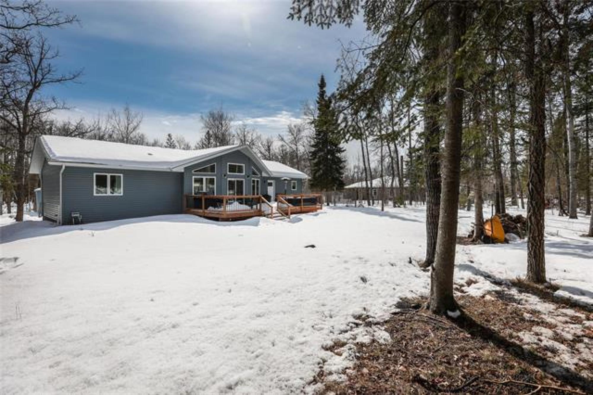 Stunning 2022-built home on a rare 74'x350' lot, offering 1,666 sq.ft. of bright, modern and functional one-level living. Featuring FOUR BEDROOMS, including a private primary suite with ensuite and walk in closet, this thoughtfully designed layout is ideal for for families in search of year-round living, or anyone seeking a place to relax and unwind. The OPEN-CONCEPT kitchen, dining, and living area showcases soaring VAULTED CEILINGS creating an airy, sun-filled gathering space and a gas fireplace that can heat the home during power outages. Quartz countertops throughout, a well located two-piece bath, spacious pantry, generous entryway, and excellent storage throughout add everyday convenience. Three additional bedrooms and a full bath sit in their own separate wing. Built on piles, the home includes an insulated crawl space on concrete—perfect for extra storage and housing the hot water tank, furnace, HRV, and sump pump. A large deck extends the living space outdoors, ideal for relaxing or entertaining. Just steps from the marina, trails, shopping, schools, and town amenities—right in the heart of town yet surrounded by nature and wildlife. Do not miss this rare, one-of-a-kind property.