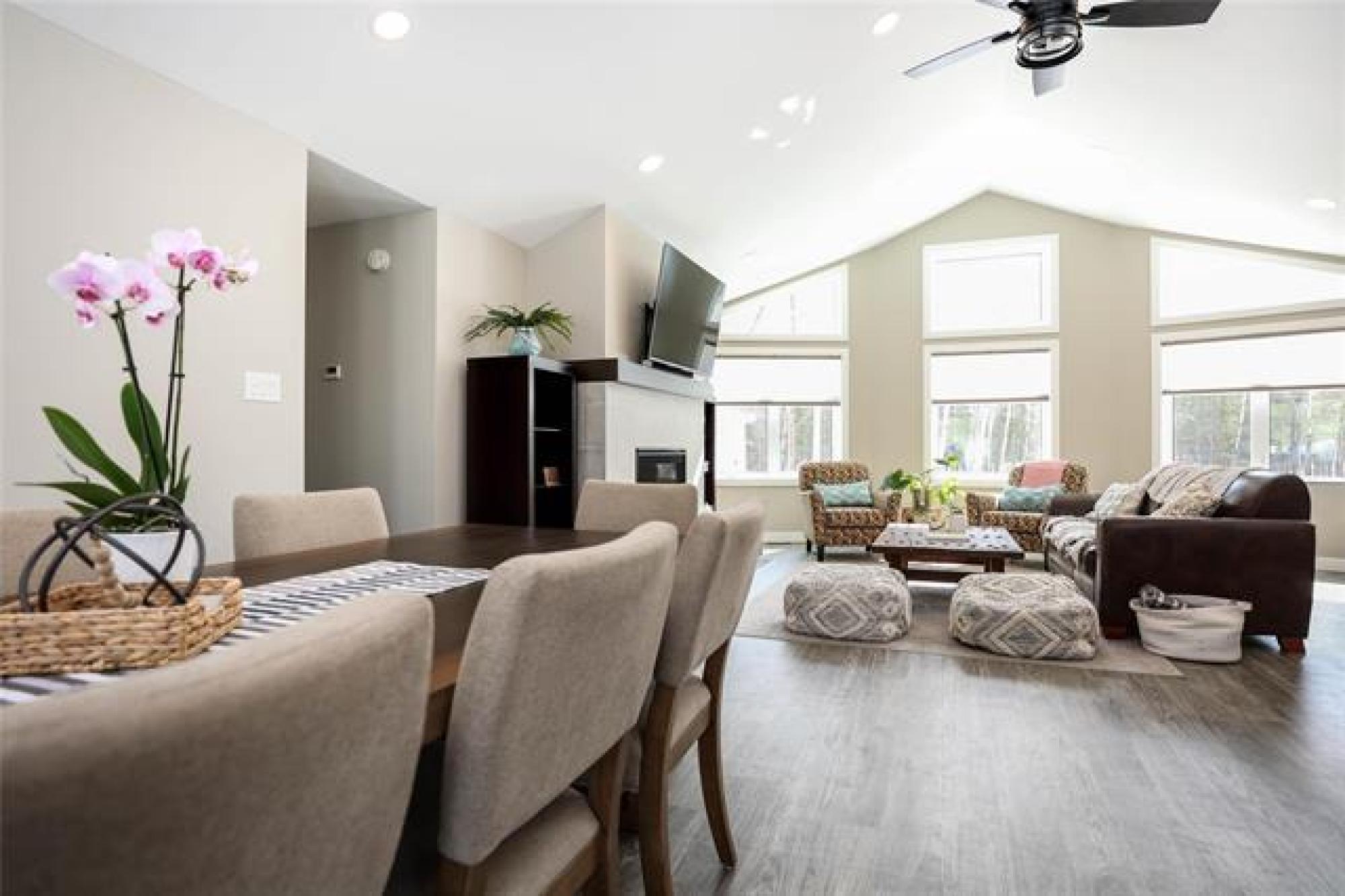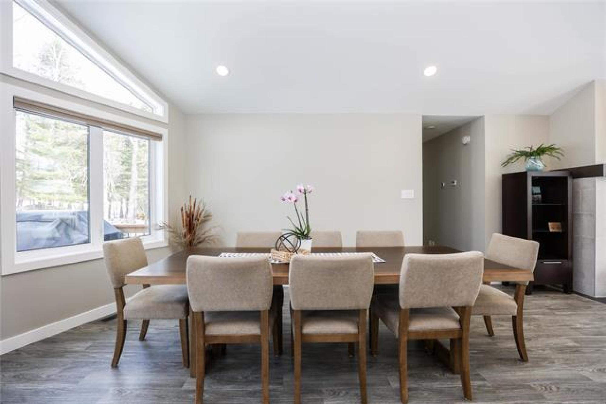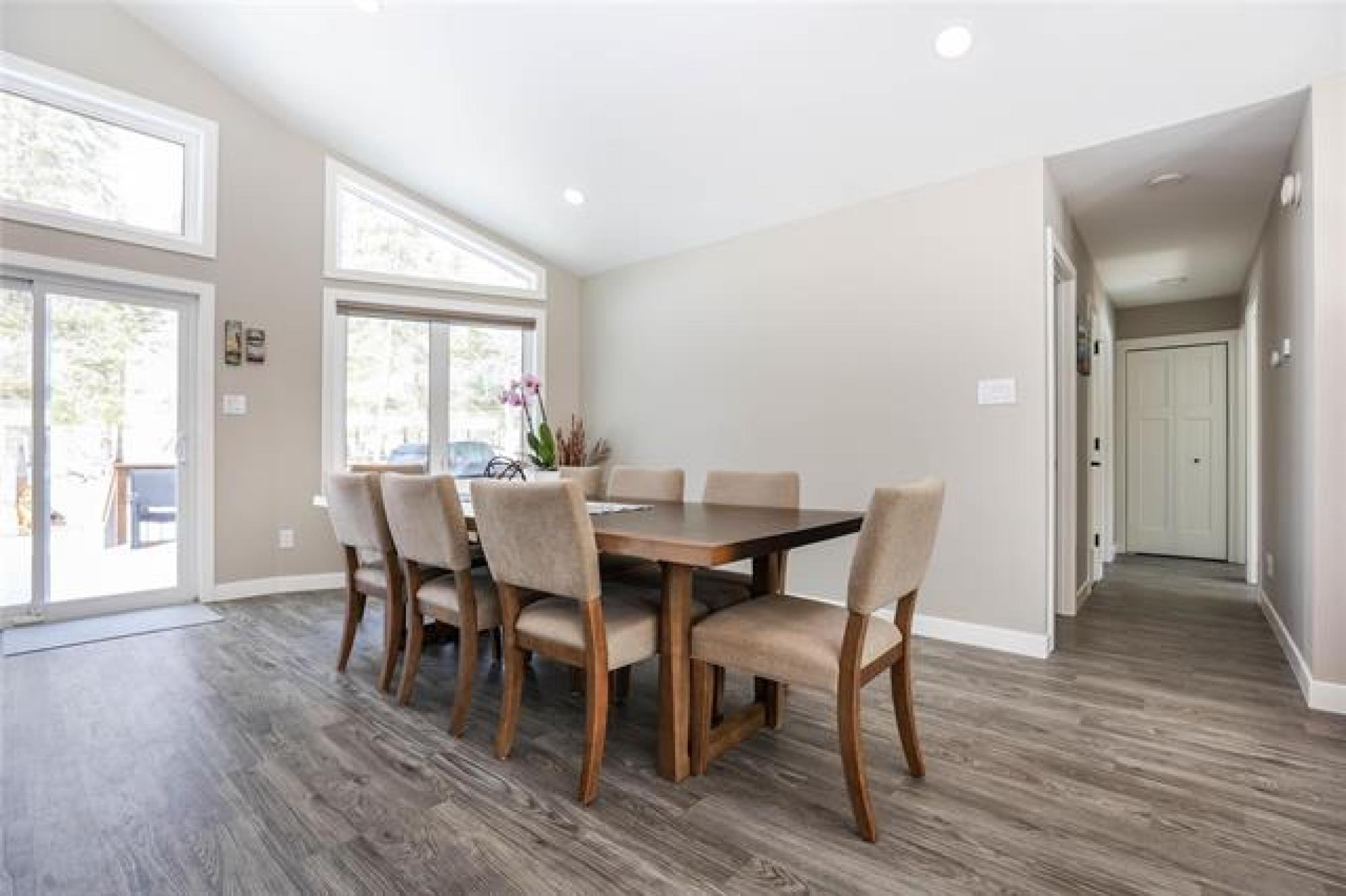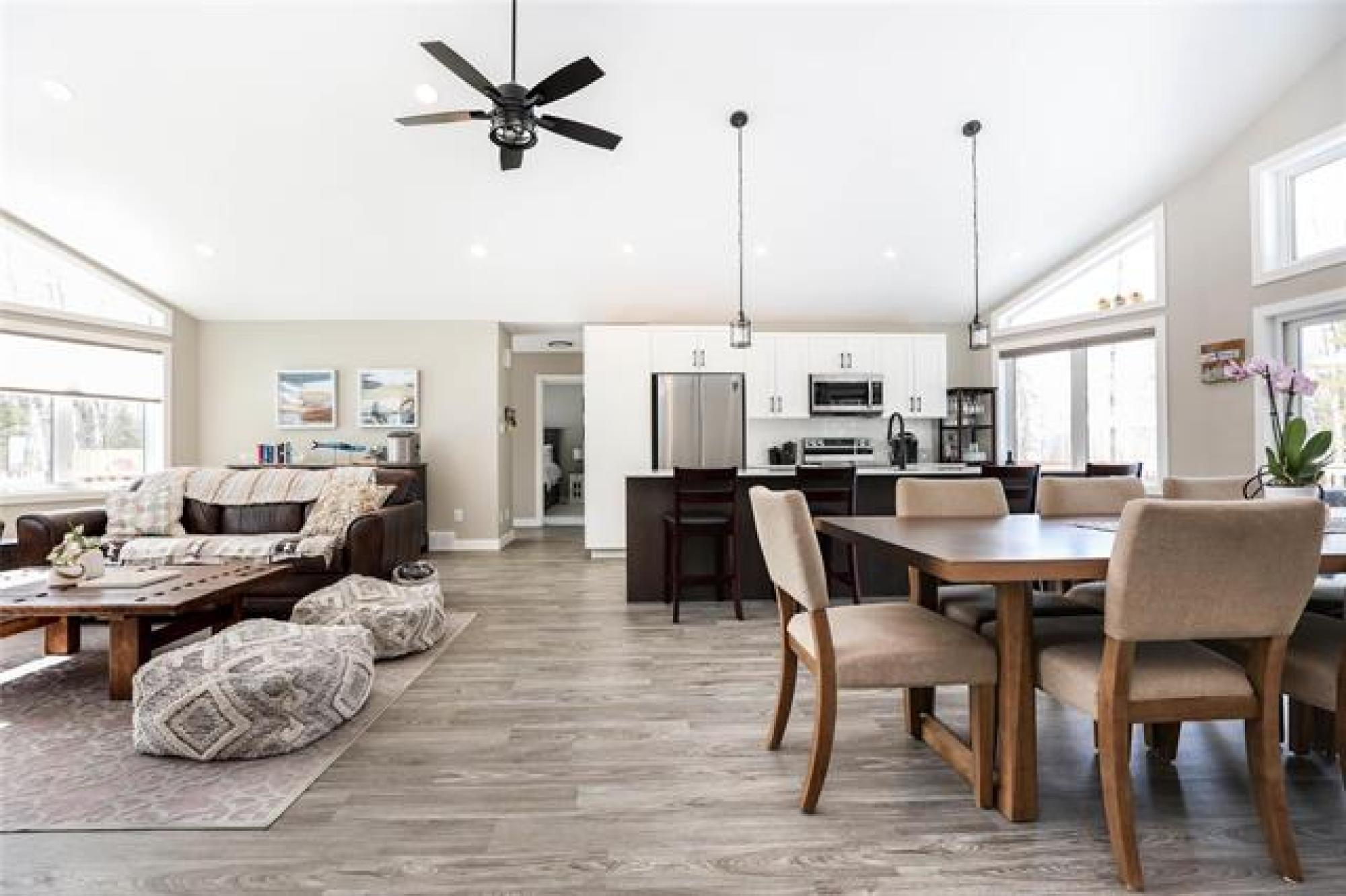 Stunning 2022-built home on a rare 74'x350' lot, offering 1,666 sq.ft. of bright, modern and functional one-level living. Featuring FOUR BEDROOMS, including a private primary suite with ensuite and walk in closet, this thoughtfully designed layout is ideal for for families in search of year-round living, or anyone seeking a place to relax and unwind. The OPEN-CONCEPT kitchen, dining, and living area showcases soaring VAULTED CEILINGS creating an airy, sun-filled gathering space and a gas fireplace that can heat the home during power outages. Quartz countertops throughout, a well located two-piece bath, spacious pantry, generous entryway, and excellent storage throughout add everyday convenience. Three additional bedrooms and a full bath sit in their own separate wing. Built on piles, the home includes an insulated crawl space on concrete—perfect for extra storage and housing the hot water tank, furnace, HRV, and sump pump. A large deck extends the living space outdoors, ideal for relaxing or entertaining. Just steps from the marina, trails, shopping, schools, and town amenities—right in the heart of town yet surrounded by nature and wildlife. Do not miss this rare, one-of-a-kind property.