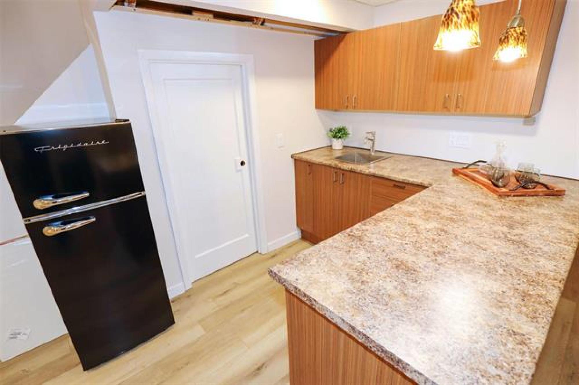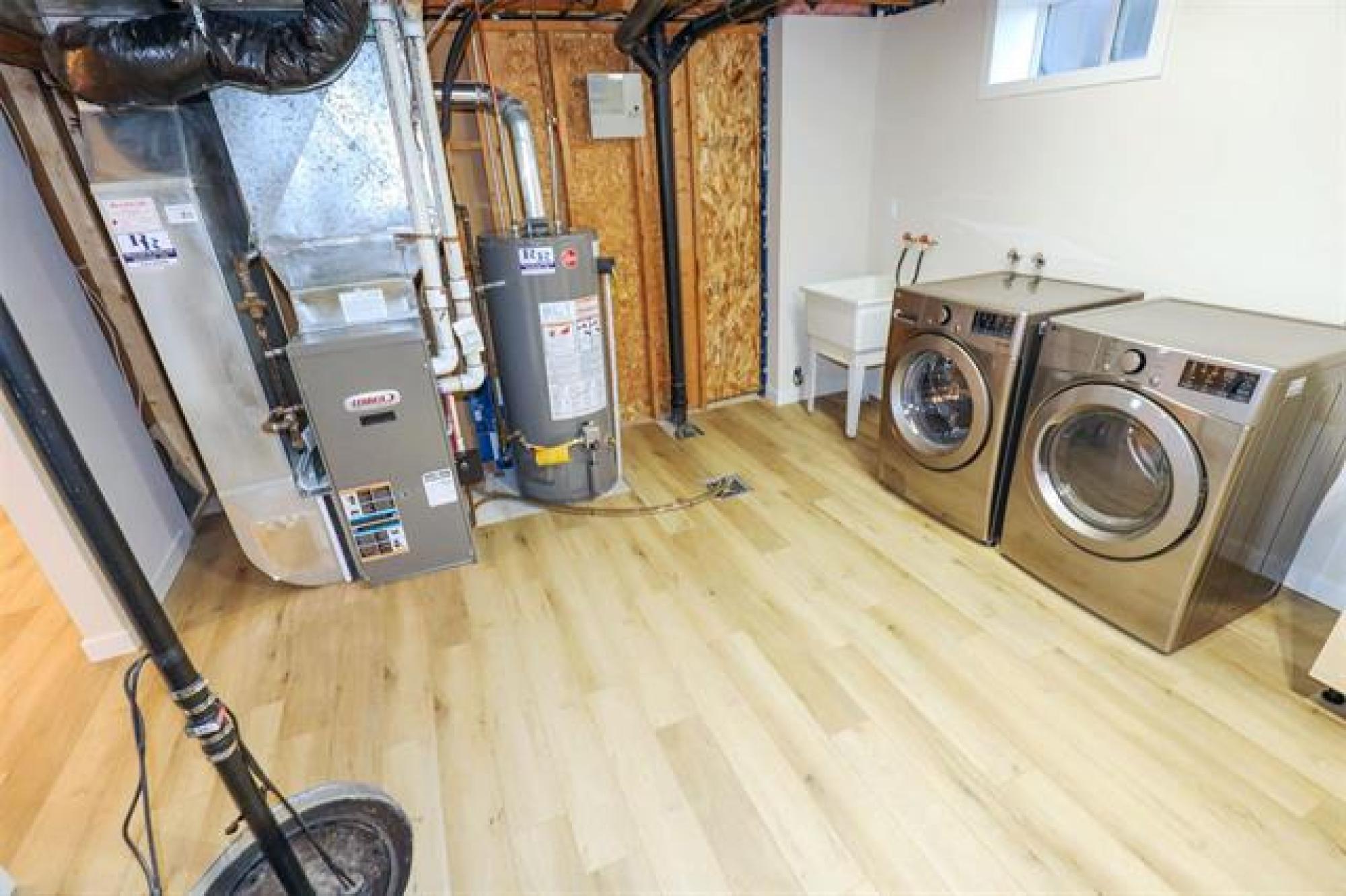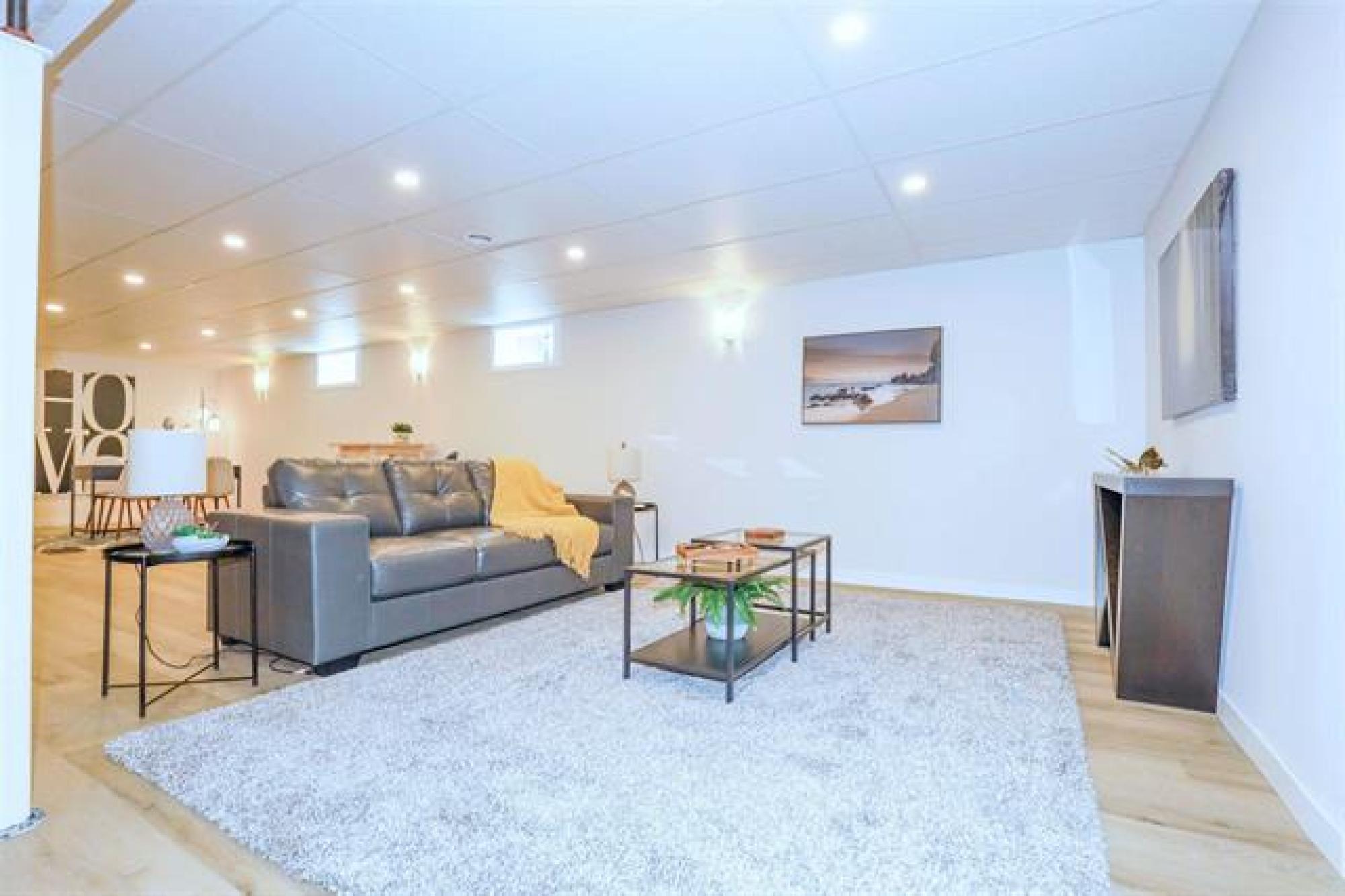 Viewings start Thurs Oct 9. Offers reviewed Tues Oct 14 at 8pm. LIKE A SHOW HOME! Extremely desirable Charleswood location. Tastefully remod 1400 sq ft bungalow features attractive curb appeal, stone front, newer re-finished hardwoods through main floor, new designer light fixtures throughout, spacious living/dining room with gas FP, stunning remod white eat in kitchen, loads of new cabinets, quartz counters, tile backsplash & 4 new stainless steel appliances, 3 generous size main floor bedrooms, 3 full updated baths, main bath & ensuite with Bathfitter tub or shower & new quartz vanity tops, functional front entrance area & side entrance area with garage & backyard access. Nicely finished basement, huge modern drywalled recroom with wet bar, drop ceiling, pot lighting & loads of space for games area, remod bath with glass shower, good size potential 4th bedroom (window not meet egress), large laundry/utility room new with sink, cabinets, washer & dryer. Central air & updated Lennox high efficient furnace. Private fenced yard with garden area & screened room off back entrance. Paved drive to double attached garage with 2 updated insulated car doors. Great family home. Truly a must to see!