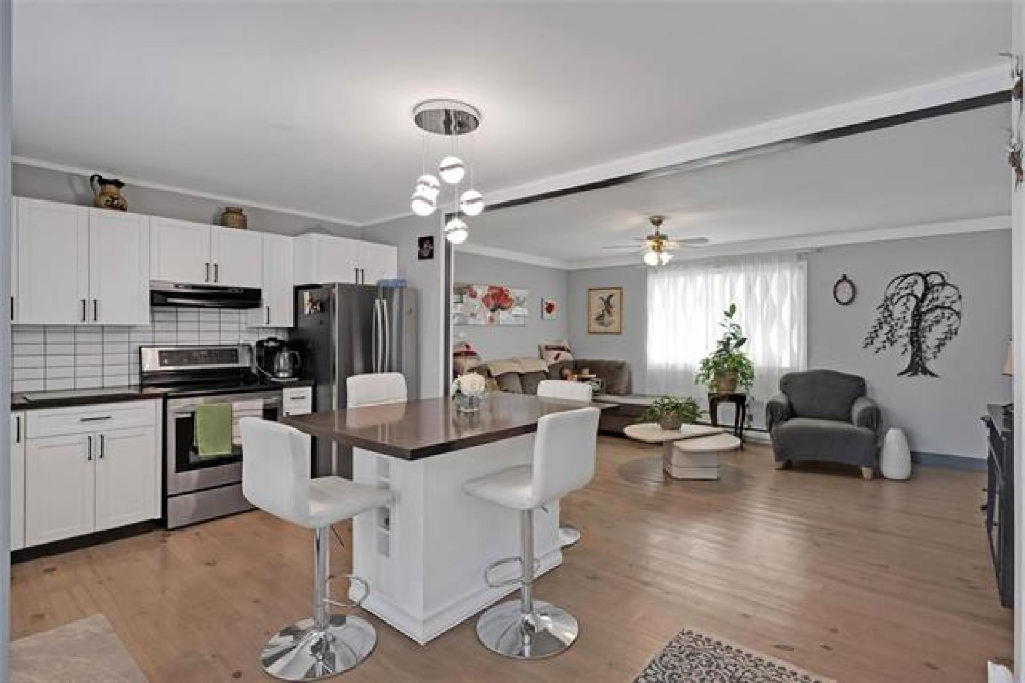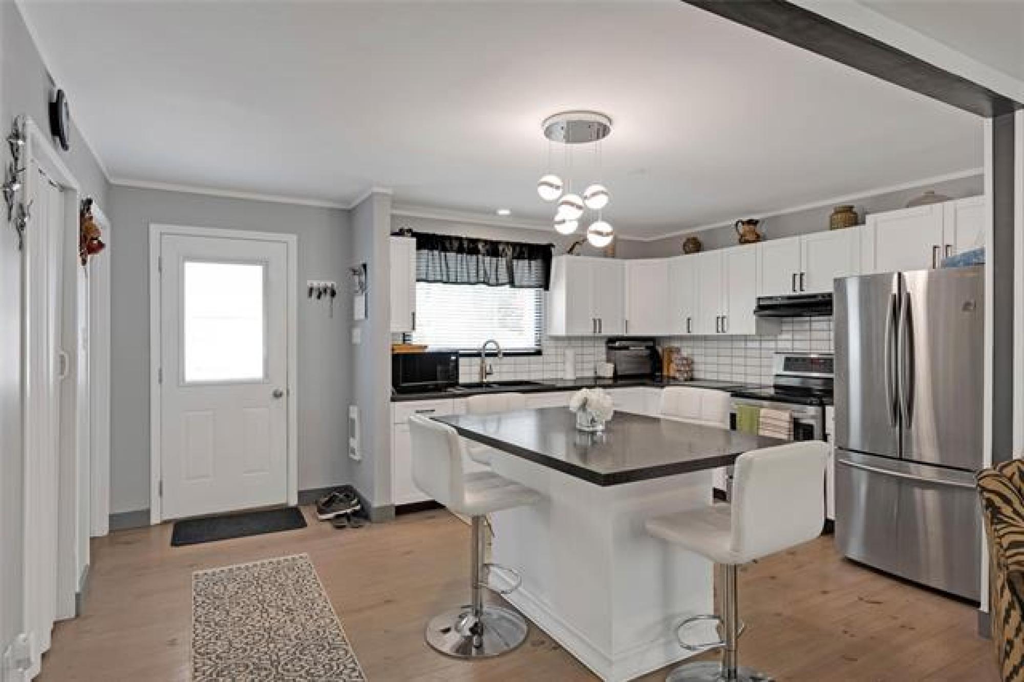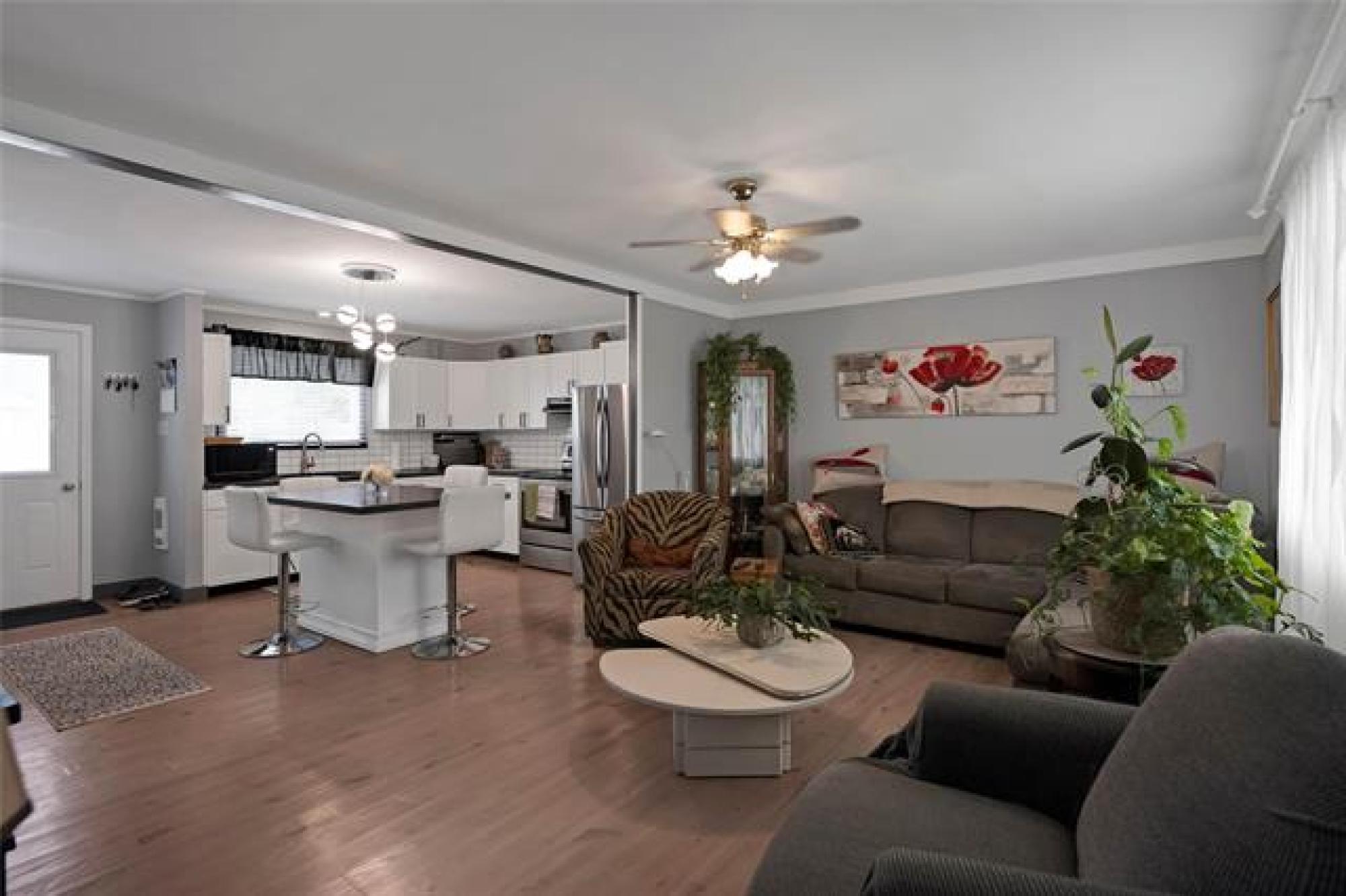 Fantastic 1056 sf family home in Winnipeg Beach! 4 bedrooms, 1 bath home with open concept kitchen & living room! Kitchen & bathroom renovated in 2021, metal roof in 2017, skylight in bathroom replaced in 2023. Kitchen features s/s appliances & a large island. The 6 barstools are included. Wood floors in kitchen, living room & 2 bedrooms, carpet in the other 2 bedrooms. Primary bedroom has an adjoining bedroom, that is perfect for a nursery or office space. Triple pane windows throughout. Back yard is fully fenced & features a large deck, fire pit area, vegetable garden, 3 sheds, and parking space for 4 vehicles! This little gem is sure to impress you!
