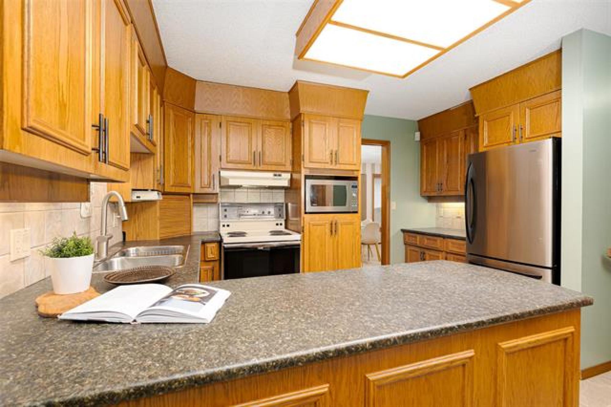 SS Nov 3, offers Nov 10. Custom built by Arlt Homes, this one-owner home is on the market for the very first time! Backing onto Island Shore Park, this fabulously laid out, 1557 Sq Ft. bungalow, offers 4 beds, 3 full baths, a large primary with 3 pc ensuite, a formal dining room, extended eat-in kitchen with newer dishwasher, refrigerator and microwave & a sunken family room with a wood burning fireplace and patio doors leading to a sizeable 3 season sunroom. The lower level is drywalled and ready for your dreams to come to life. Here is your chance to plan out your very own space: theatre, games, family or hobby room, wine cellar, sauna... you name it. Accompanied by a full bathroom, large bedroom (may not meet egress), and loads of storage. Additional features include: Brick driveway leading to a double attch'd garage + workshop, underground irrigation, fenced, private yard. Shingles upgraded this summer ('25), Sump pump ('24), lower lvl windows ('21), HEF & AC ('14), HWT ('14). Cherished and meticulously maintained, this lovely bungalow could be yours! Close to parks, walking trails, schools, shopping, public transportation & all other amenities & conveniences. Appointments are being accepted now!