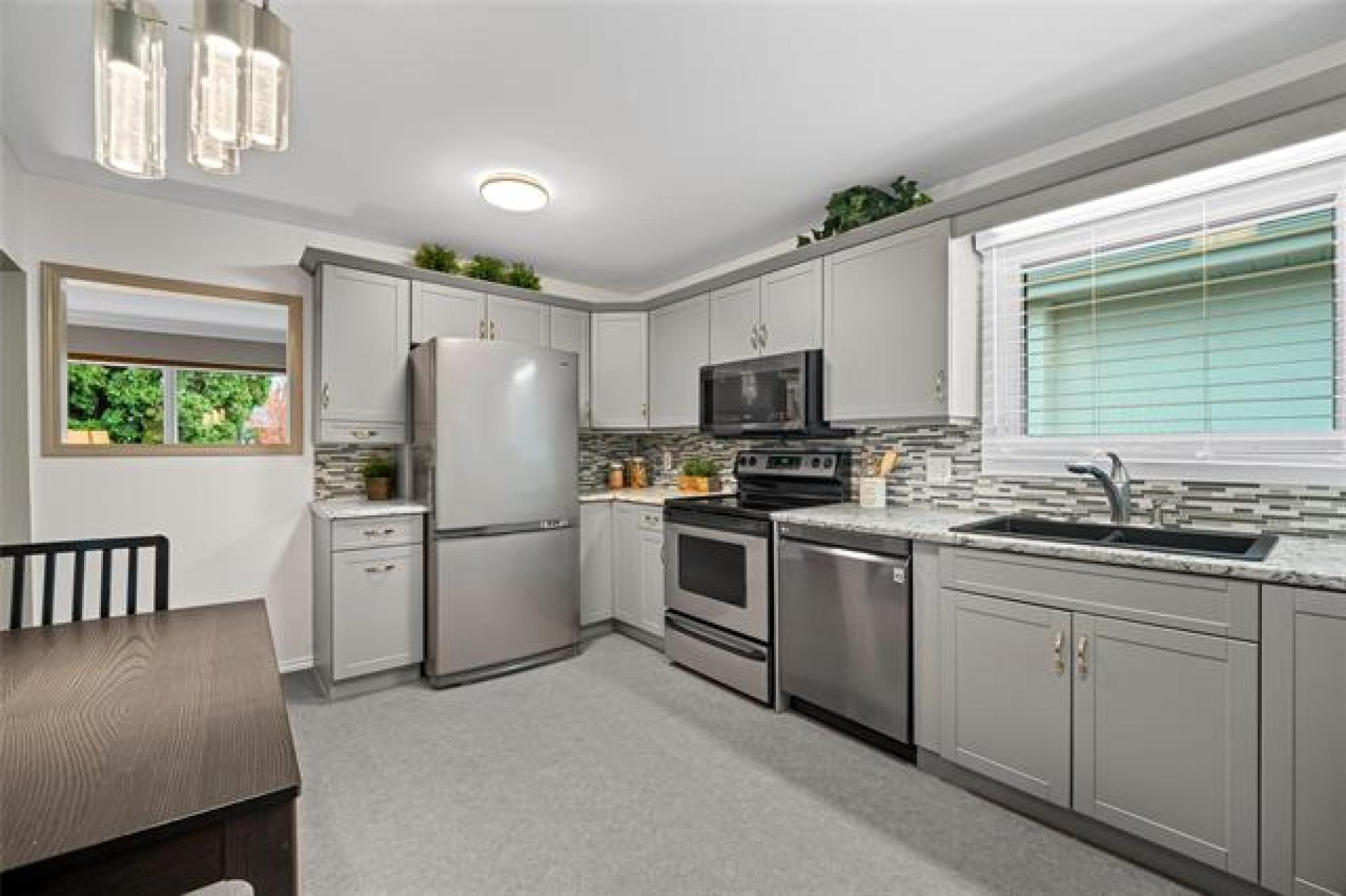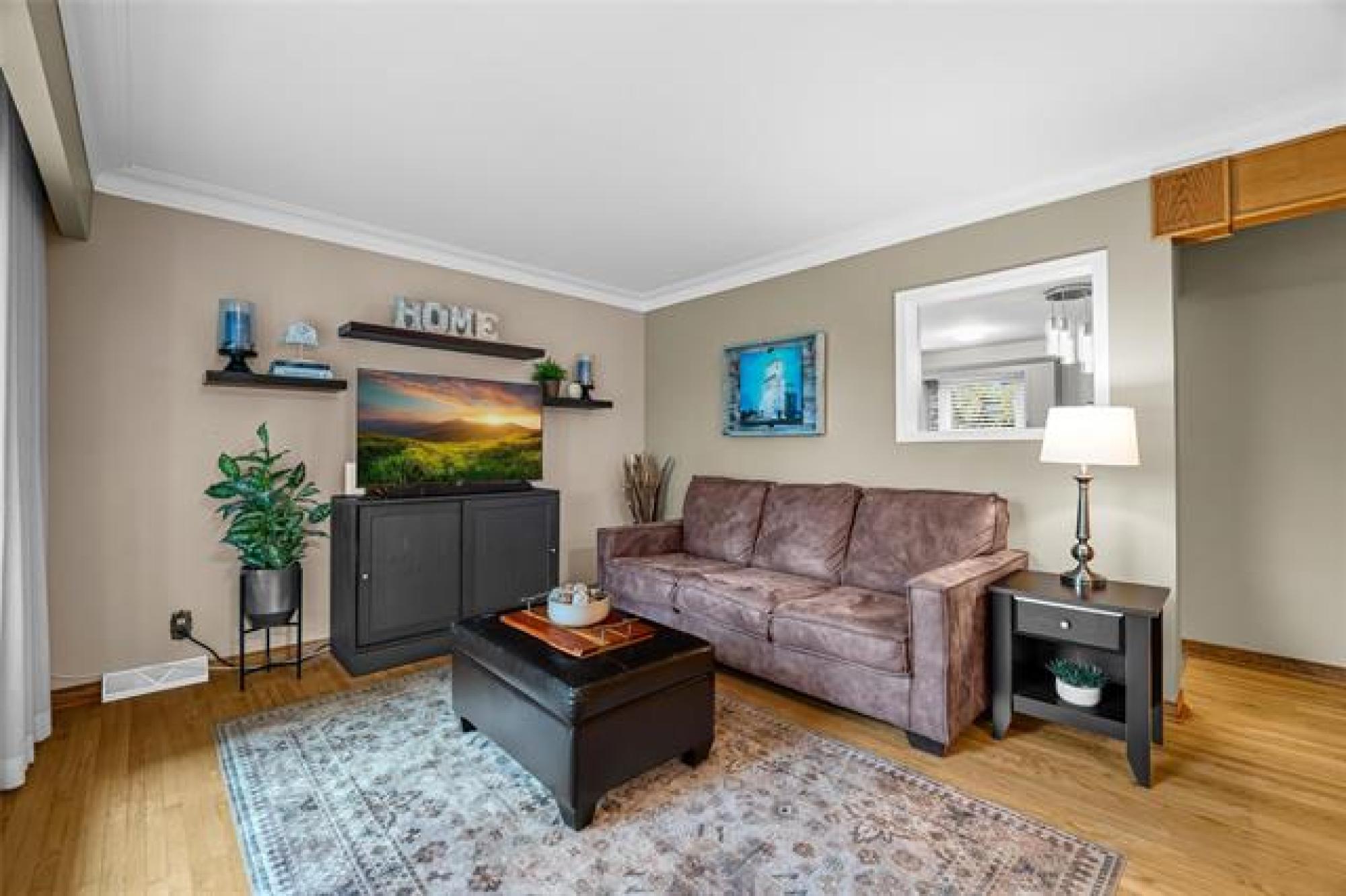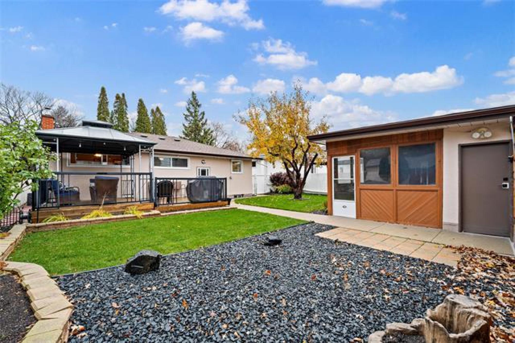 SS Nov3, offers reviewed eve rec'd Nov 10+. This warm+inviting bungalow sits on a quiet, tree-lined street in desirable East Kildonan. You’ll love the bright, open feel with original hardwood floors and lots of natural light.Enjoy relaxing in the living room that features a huge picture window and warm tones, creating an inviting and warm space. The beautifully updated kitchen offers modern finishes, abundant counter space, and stainless steel appliances, creating an ideal setting for cooking and entertaining.The bright eat-in area adds style+comfort for everyday living. Three comfy bedrooms and a refreshed full bath complete the main floor. The lower level adds even more living space with large rec room complete with wet bar, extra bedroom, 2nd bath, and great storage. Step outside to a beautiful backyard oasis — a lush lawn, huge deck, and your very own apple tree - perfect for entertaining! The double detached garage is perfect for parking or projects with a workspace area. This home has been so well cared for, with upgrades to the kitchen, bath, and many windows. Close to golf, schools, shopping, and transit — everything you need is right here. Move in and enjoy this lovely home and neighbourhood!