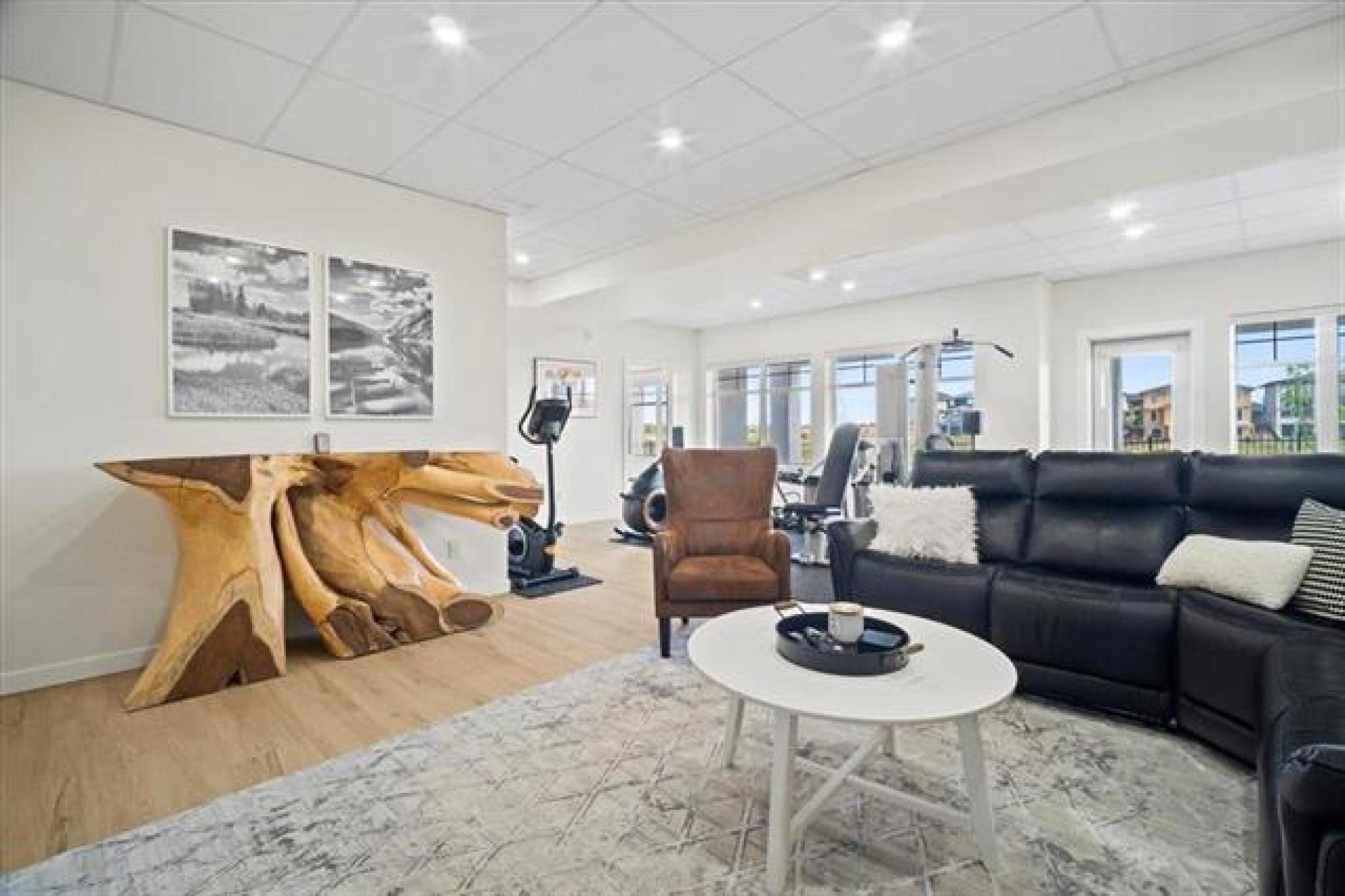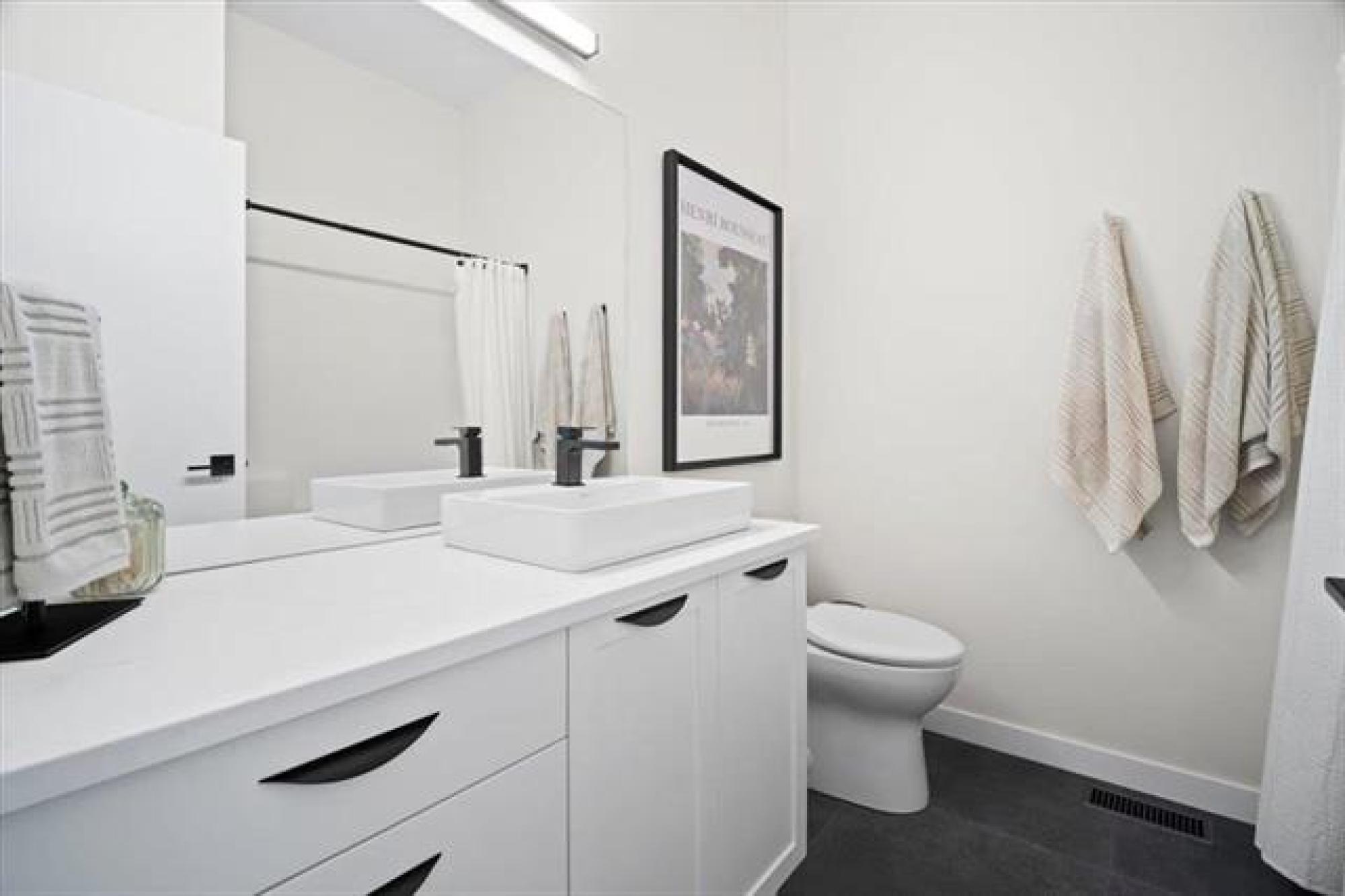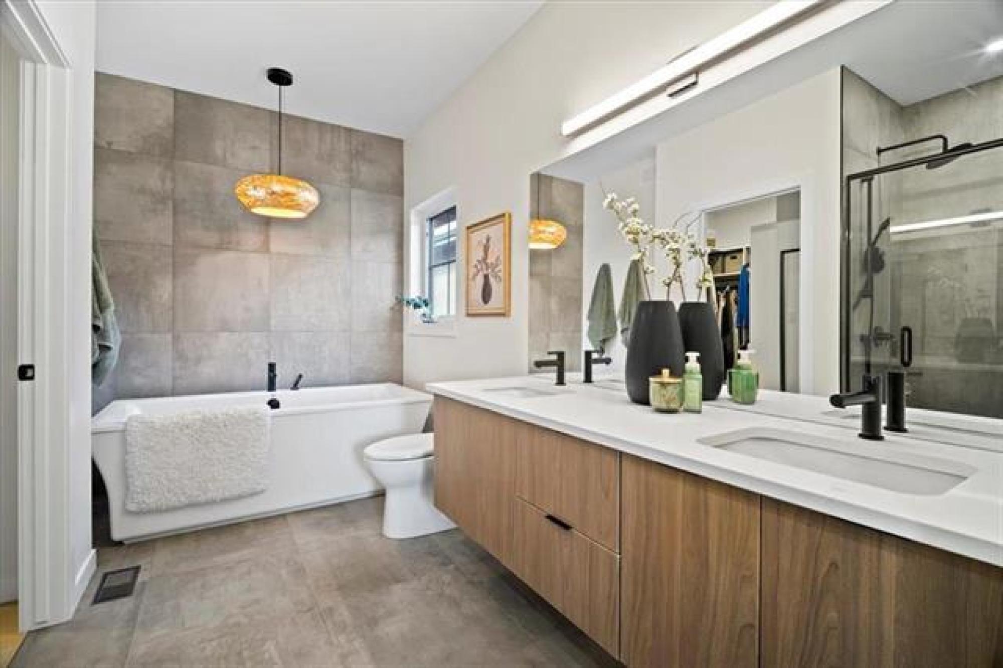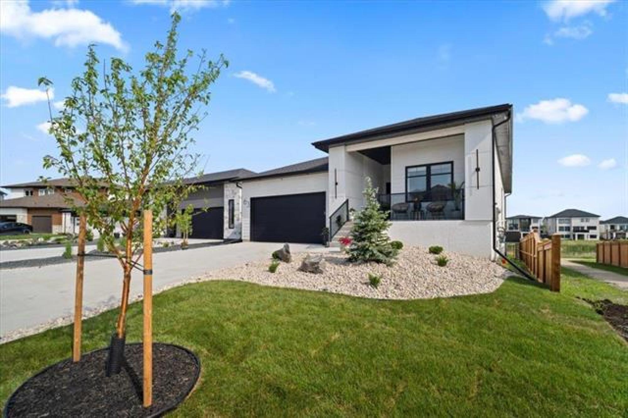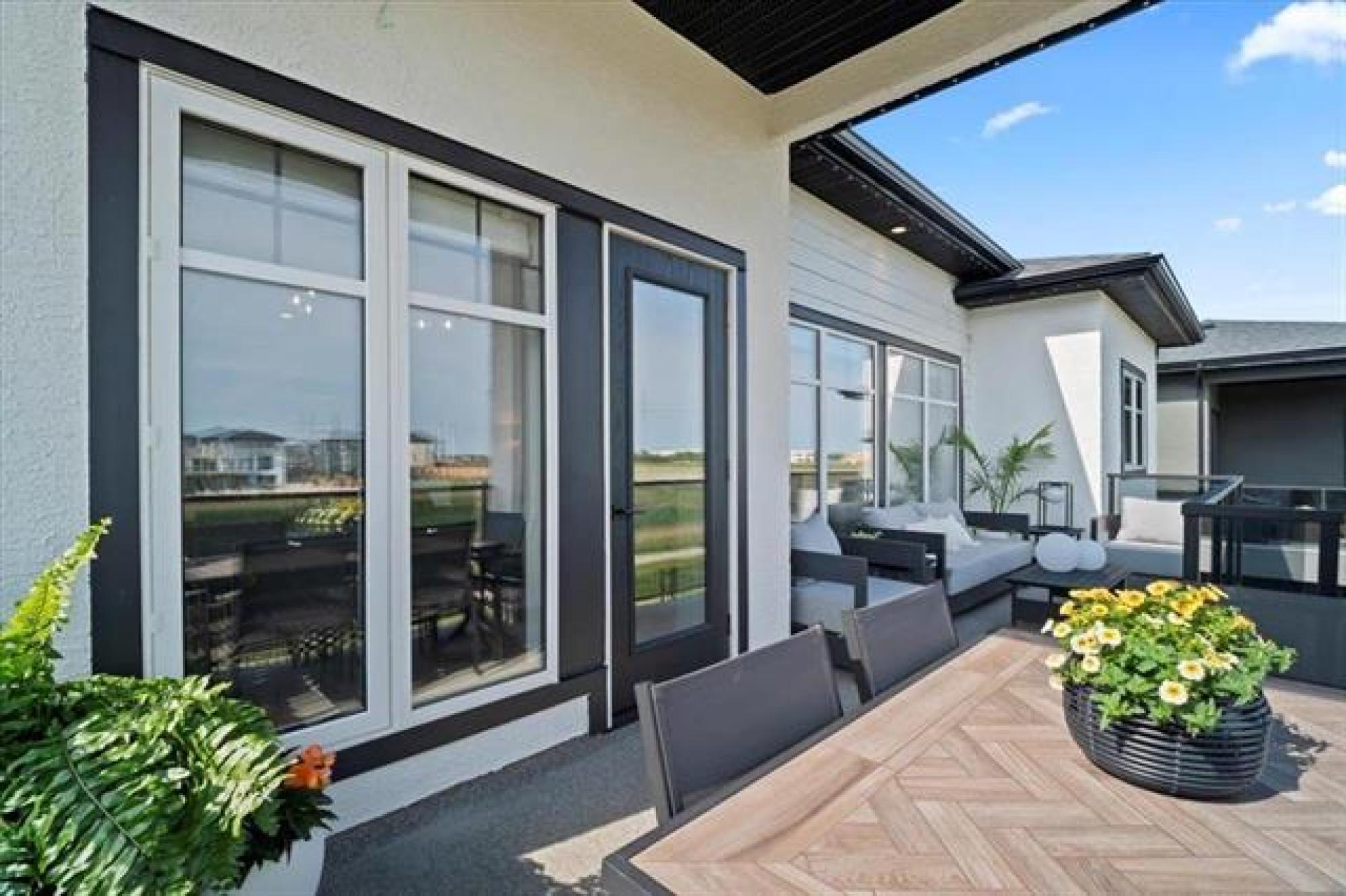 This stunning Sage Creek home by Artista Homes blends high-end design with everyday function. A walk out overlooking the lake! Featuring upgraded engineered hardwood, tile, and vinyl plank flooring—this carpet-free home is loaded with premium finishes throughout. The custom kitchen shines with quartz countertops, full-height quartz backsplash, upgraded cabinetry, and a built-in coffee bar. A tiled fireplace with walnut shelves and mantel anchors the great room, while upgraded lighting and wood floor registers add a refined touch. The primary suite offers a custom walk-in closet and a spa-inspired ensuite with a tiled shower. All bathrooms, the foyer, laundry, and mudroom feature quartz surfaces. Custom blinds, built-in closets, and cabinetry maximize style and storage. Downstairs, the fully finished basement includes an oversized fireplace, soundproofed bedroom, drywalled under-stair storage, and a finished storage room. Outside, enjoy extended front and rear decks, rod iron fencing, front landscaping, and Celabrite permanent outdoor lighting. Pre-wired for hot tub, deck speakers, A/V, and security. Impeccably built and packed with upgrades—63 Siskin Bay is Sage Creek living at its finest.