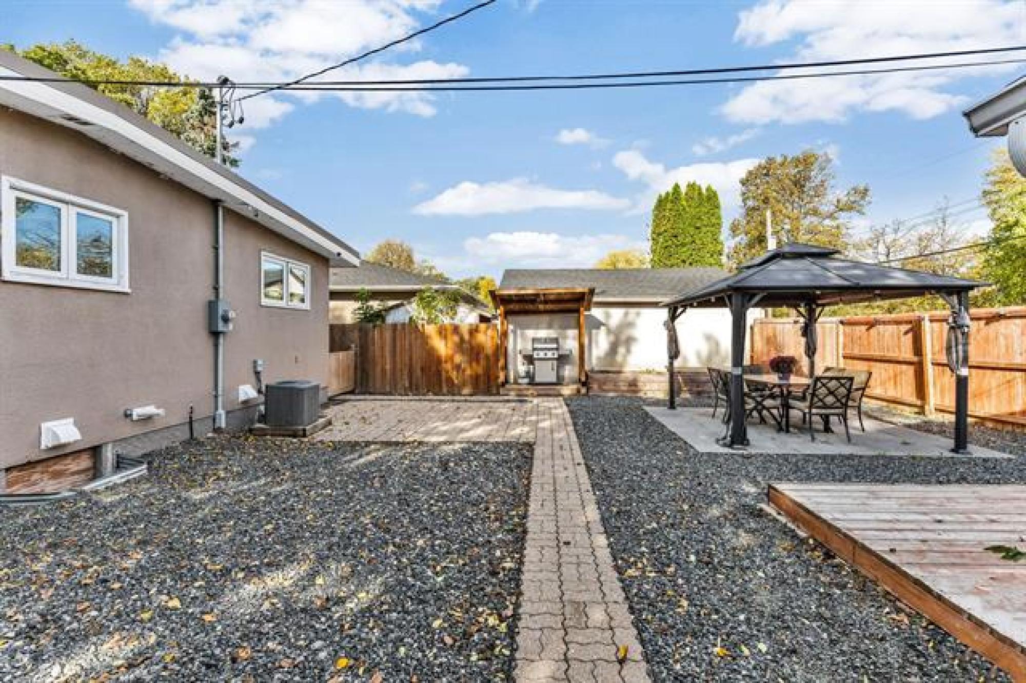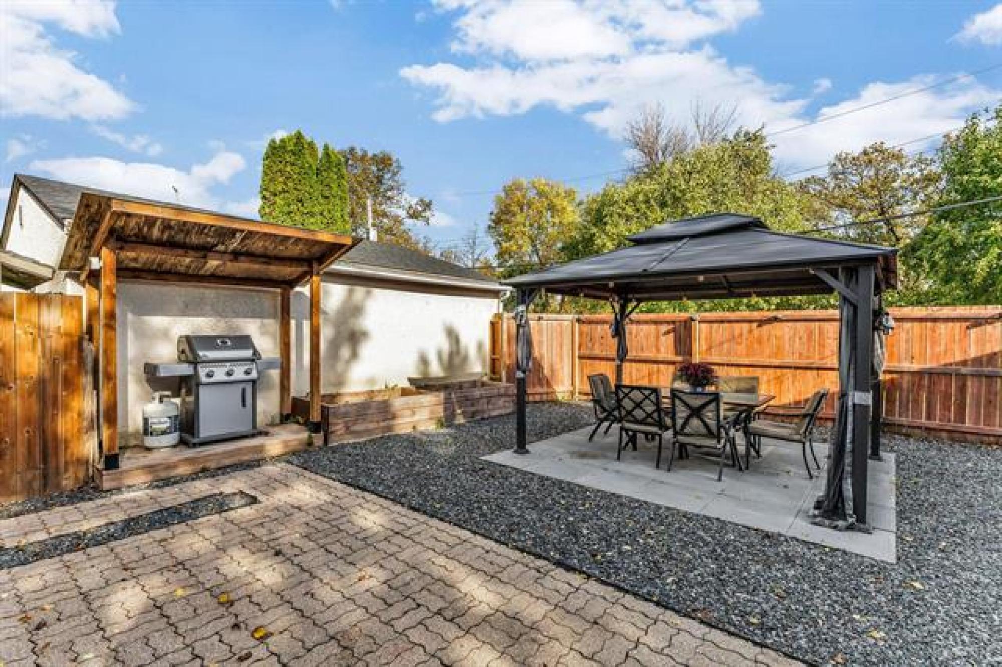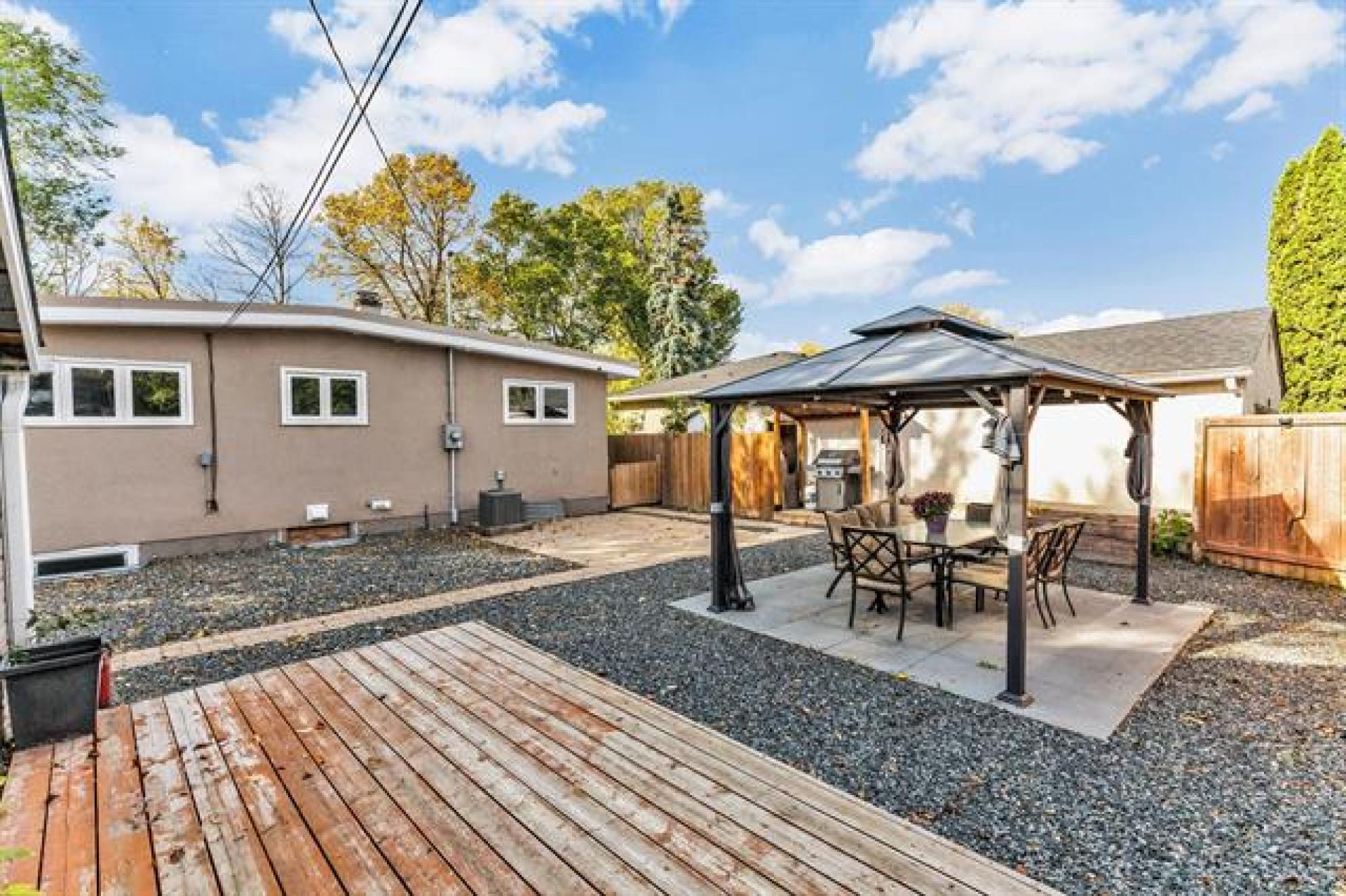 Showings start now. Offers presented Oct 7th. Top-tier family home in the heart of East Kildonan! Pride of ownership shines in this sun-soaked, southwest-facing gem. The open-concept main floor is perfect for everyday family living or weekend hosting—featuring a spacious living room that flows into an upgraded kitchen with rich wood cabinetry, SS appliances, breakfast bar & plenty of pantry space. Two main floor bedrooms offer functional closets, while the stylish 4pc bath adds modern flair. The fully finished basement is made for memories—offering a massive rec room ready to become your home theatre, game zone, or both! Plus 2 more bedrooms and a handy powder bath. Step out back to your private retreat: black stone landscaping, deck, patio, gazebo, BBQ shelter & garden boxes—all fenced in and ready for summer hangs. Double detached garage and a dream location close to schools, parks, & transit. Long time owner has kept this home well maintained and upgrade! 200amp service, high eff furnace, hrv, and so much more! This one checks all the boxes—bring the family and fall in love with your future home!