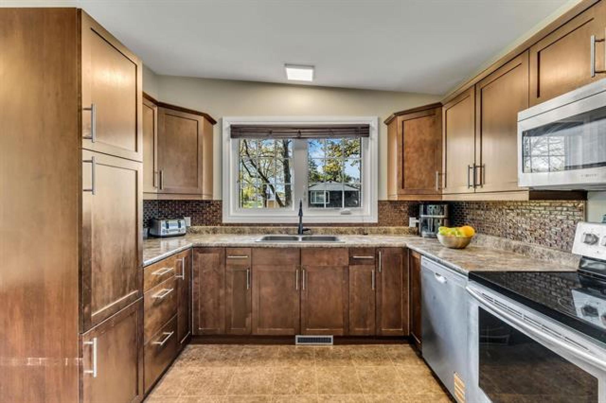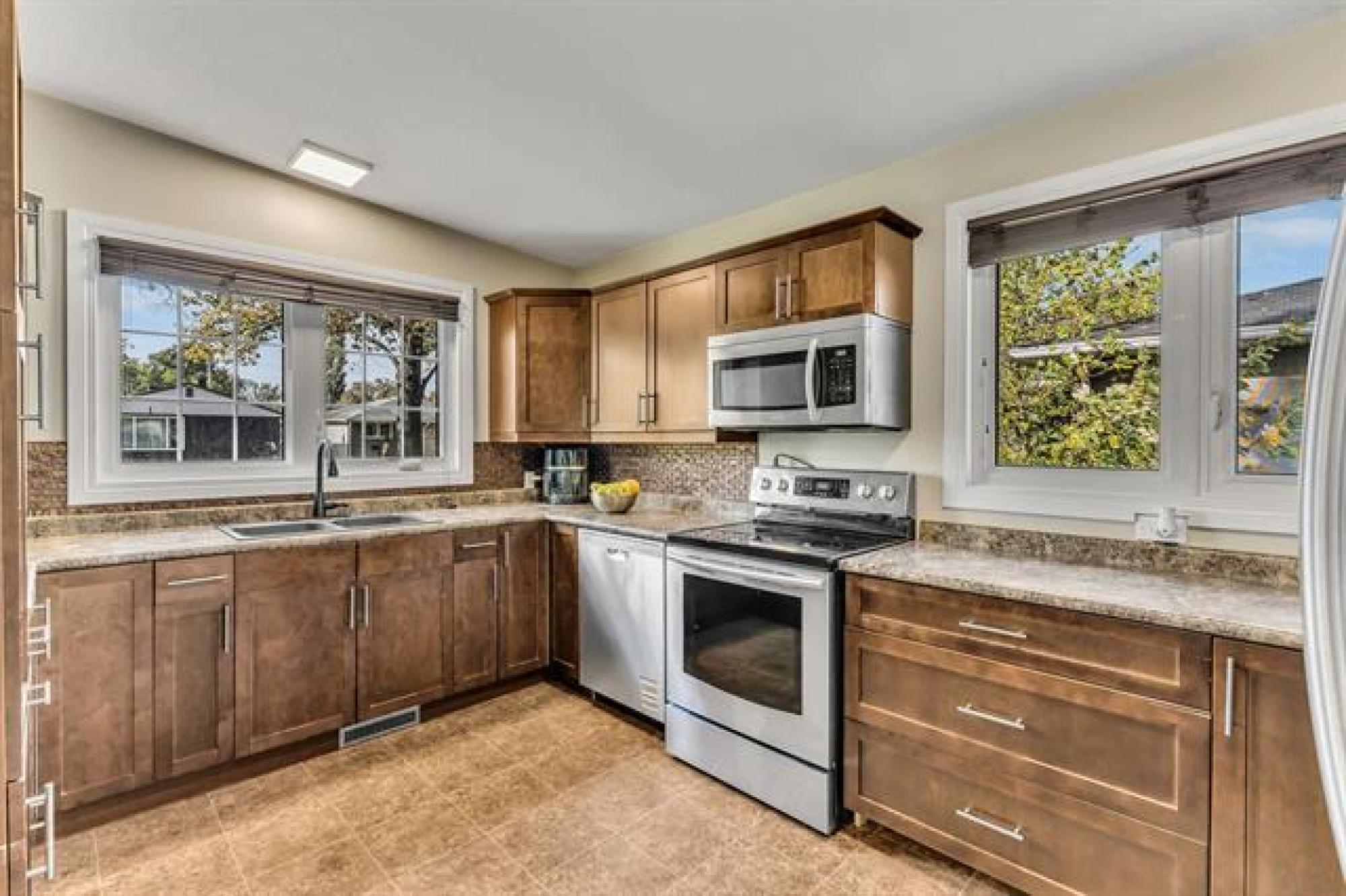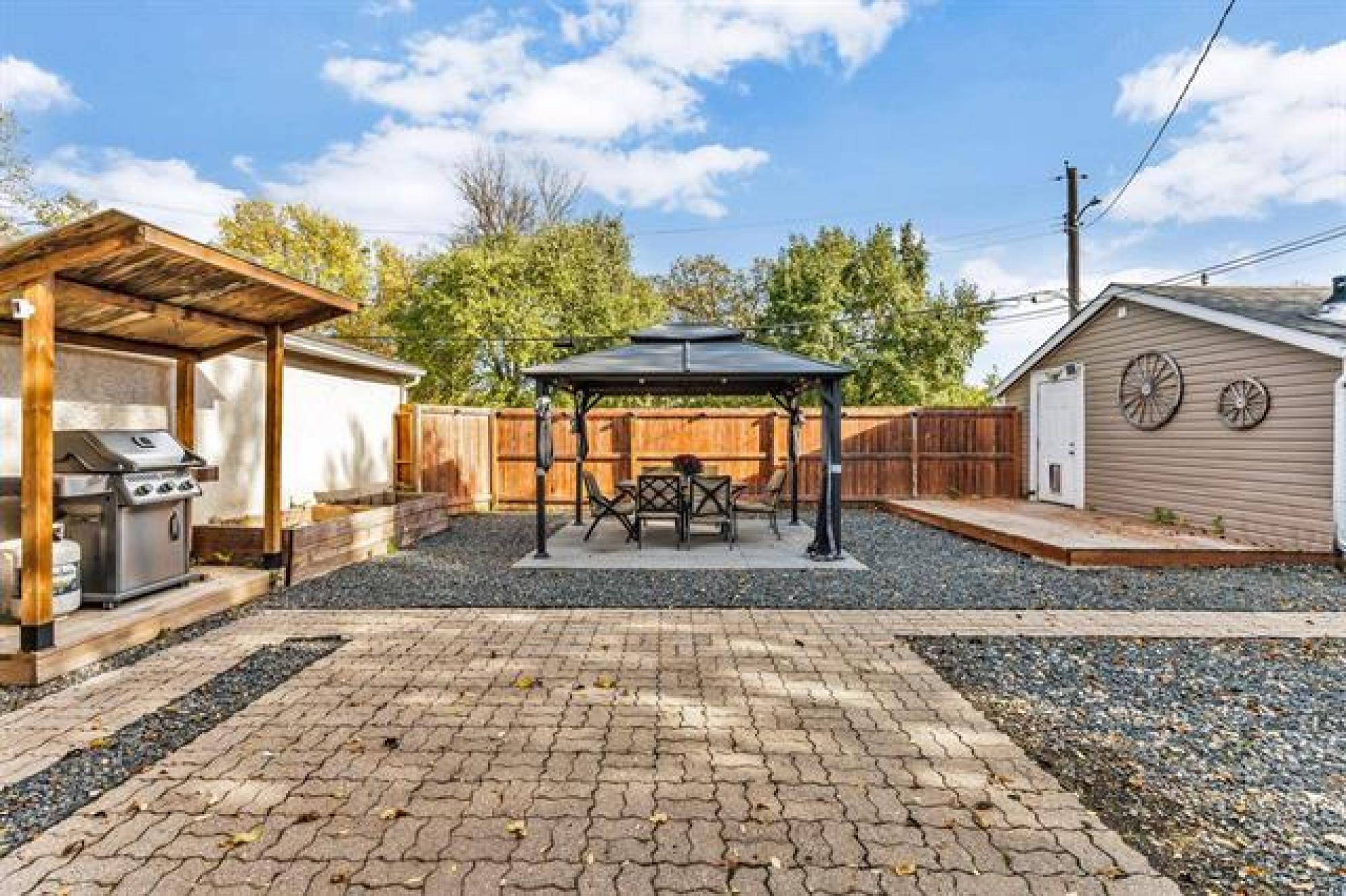 Showings start now. Offers presented Oct 7th. Top-tier family home in the heart of East Kildonan! Pride of ownership shines in this sun-soaked, southwest-facing gem. The open-concept main floor is perfect for everyday family living or weekend hosting—featuring a spacious living room that flows into an upgraded kitchen with rich wood cabinetry, SS appliances, breakfast bar & plenty of pantry space. Two main floor bedrooms offer functional closets, while the stylish 4pc bath adds modern flair. The fully finished basement is made for memories—offering a massive rec room ready to become your home theatre, game zone, or both! Plus 2 more bedrooms and a handy powder bath. Step out back to your private retreat: black stone landscaping, deck, patio, gazebo, BBQ shelter & garden boxes—all fenced in and ready for summer hangs. Double detached garage and a dream location close to schools, parks, & transit. Long time owner has kept this home well maintained and upgrade! 200amp service, high eff furnace, hrv, and so much more! This one checks all the boxes—bring the family and fall in love with your future home!