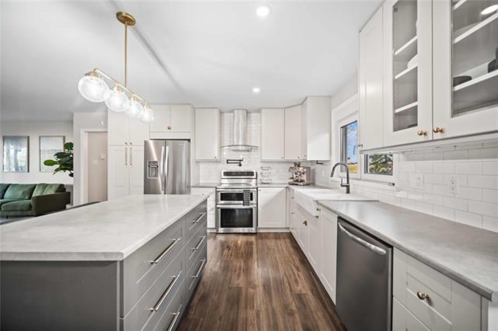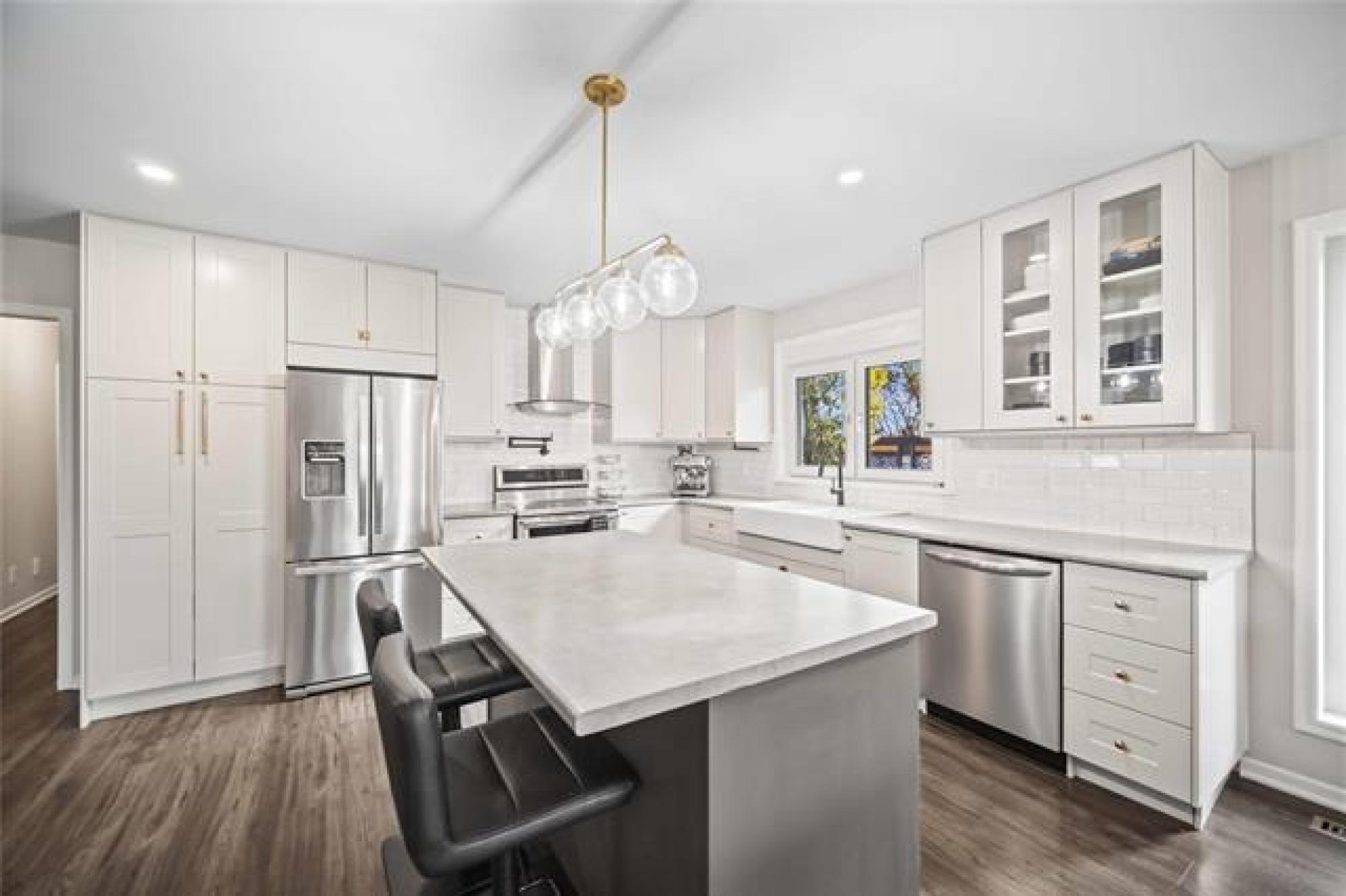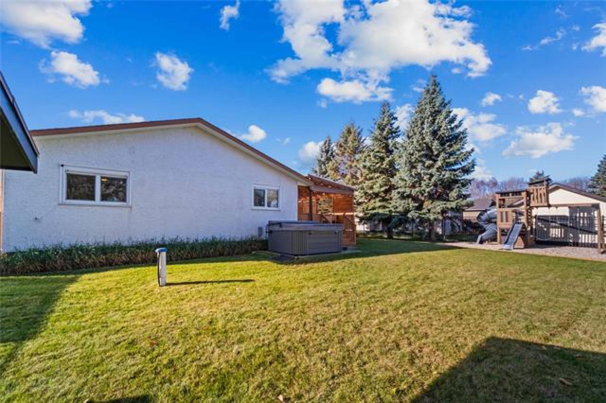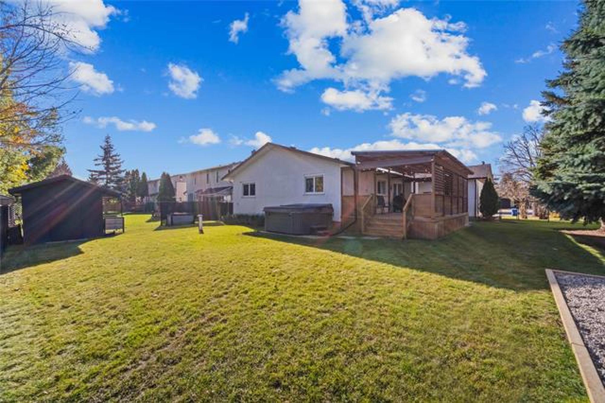 Showings start Oct. 27th. Offers to be presented Nov. 3rd. Updated Bungalow backing onto serene green space in Riverdale! This home exudes curb appeal with its interlocking stone driveway, classic brick exterior, and manicured landscaping. Located on a quiet street just steps from scenic walking paths, a large park, tennis courts, and playground. Inside, the open-concept great room is ideal for entertaining, featuring a modern kitchen with island, double oven, and a spacious pantry with pull-out drawers. The main floor offers three bedrooms, an updated family bath, and a primary suite with walk-in closet and ensuite. Downstairs, enjoy a fully finished basement with an expansive rec room, additional bedroom, 3-piece bath, and huge laundry area with ample storage. The private, fenced backyard includes a covered deck, in-ground sprinklers, and a storage shed. A double oversized attached garage is insulated for year-round use. Notable updates: shingles (’17), HWT (’21), rear fence (’22), deck stain (’25), bathroom updates (’25), and more!