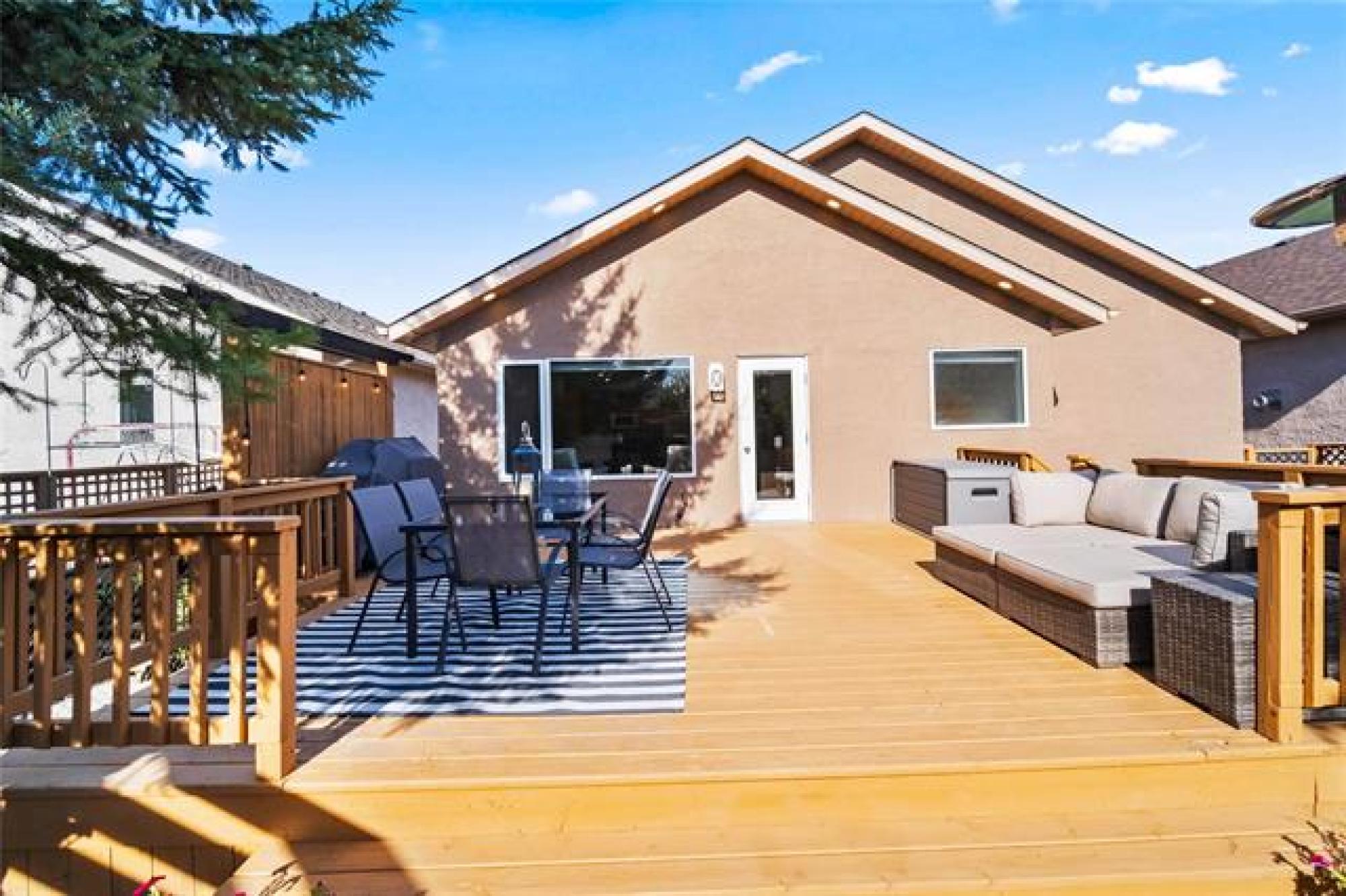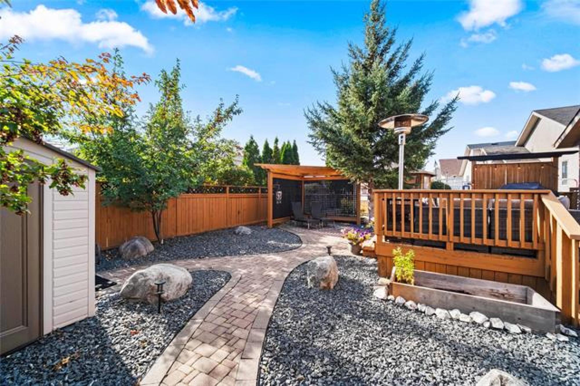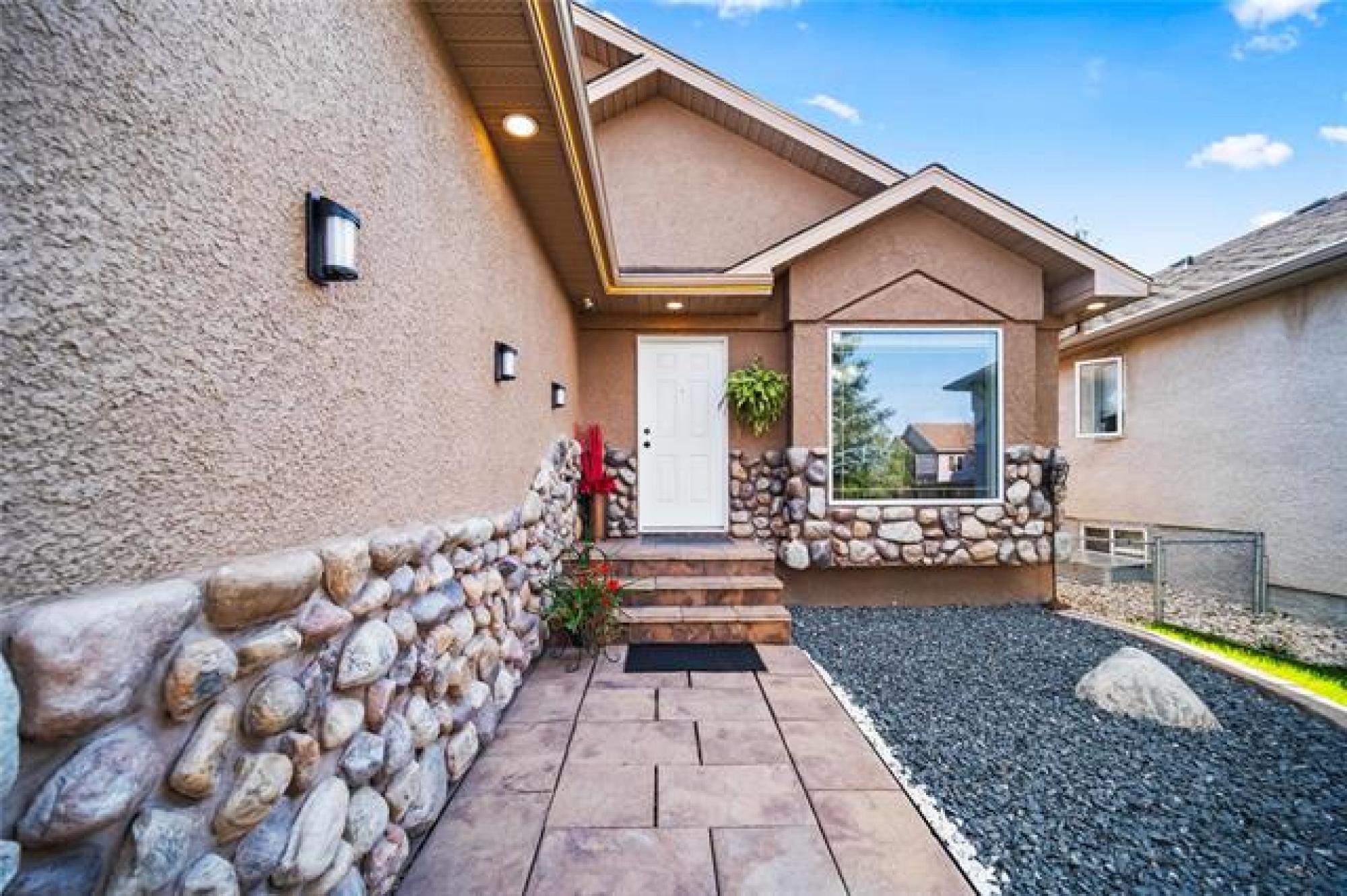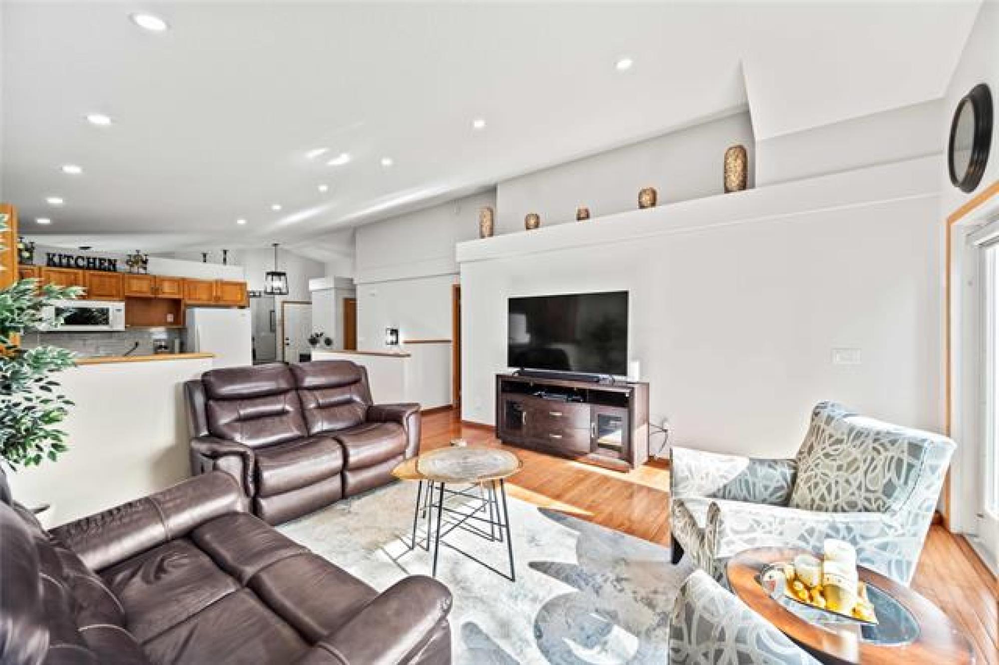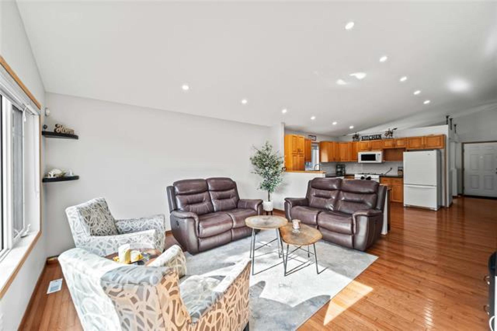 Offers as Received. You are going to love this rarely available 1,440 sf bungalow situated in the heart of Royalwood. This home has a modern open concept great rm plan with a formal dining rm at the front with beautiful HWF's and soaring vaulted ceilings. The kitchen has lots of cabinetry with a gas range and backsplash. The adjoining family rm is spacious in size with big bright windows and lots of pot lights. There are 3 bedrooms on the main floor with the primary having lots of rm for furniture and is complete with a remodelled dlx ensuite bathroom and walk-in closet. Downstairs the bsmt is fully finished with a large rec-room with 4th bedroom, 3rd full bath and large storage room. The backyard is fenced and landscaped with a large deck that is surrounded by crushed granite, interlocking brick patio + pergola and a large storage shed. Other upgrades include: Shingles (2024), Furnace (2023), Sump Pump (2025), Exterior and Interior paint (2025).