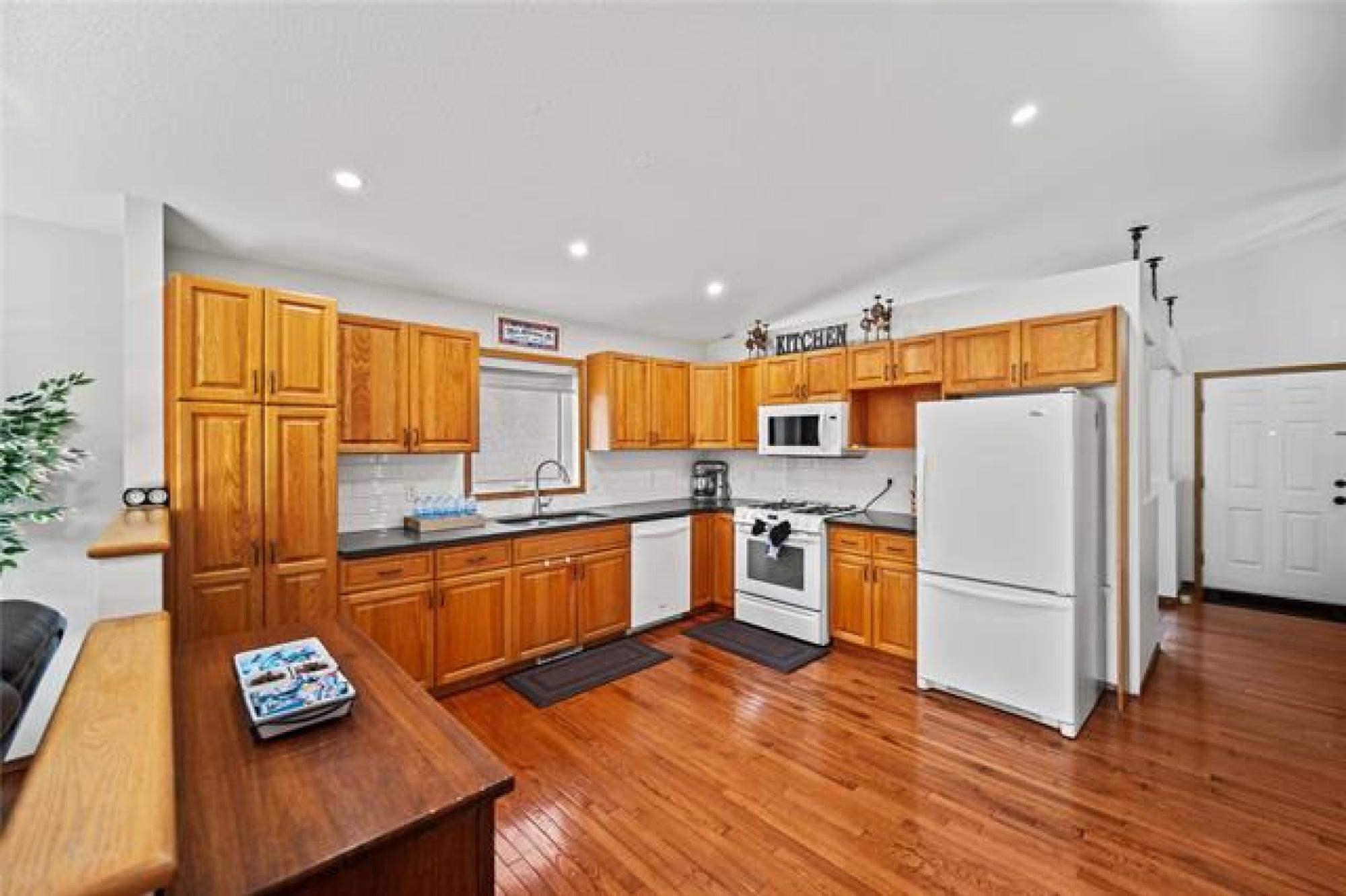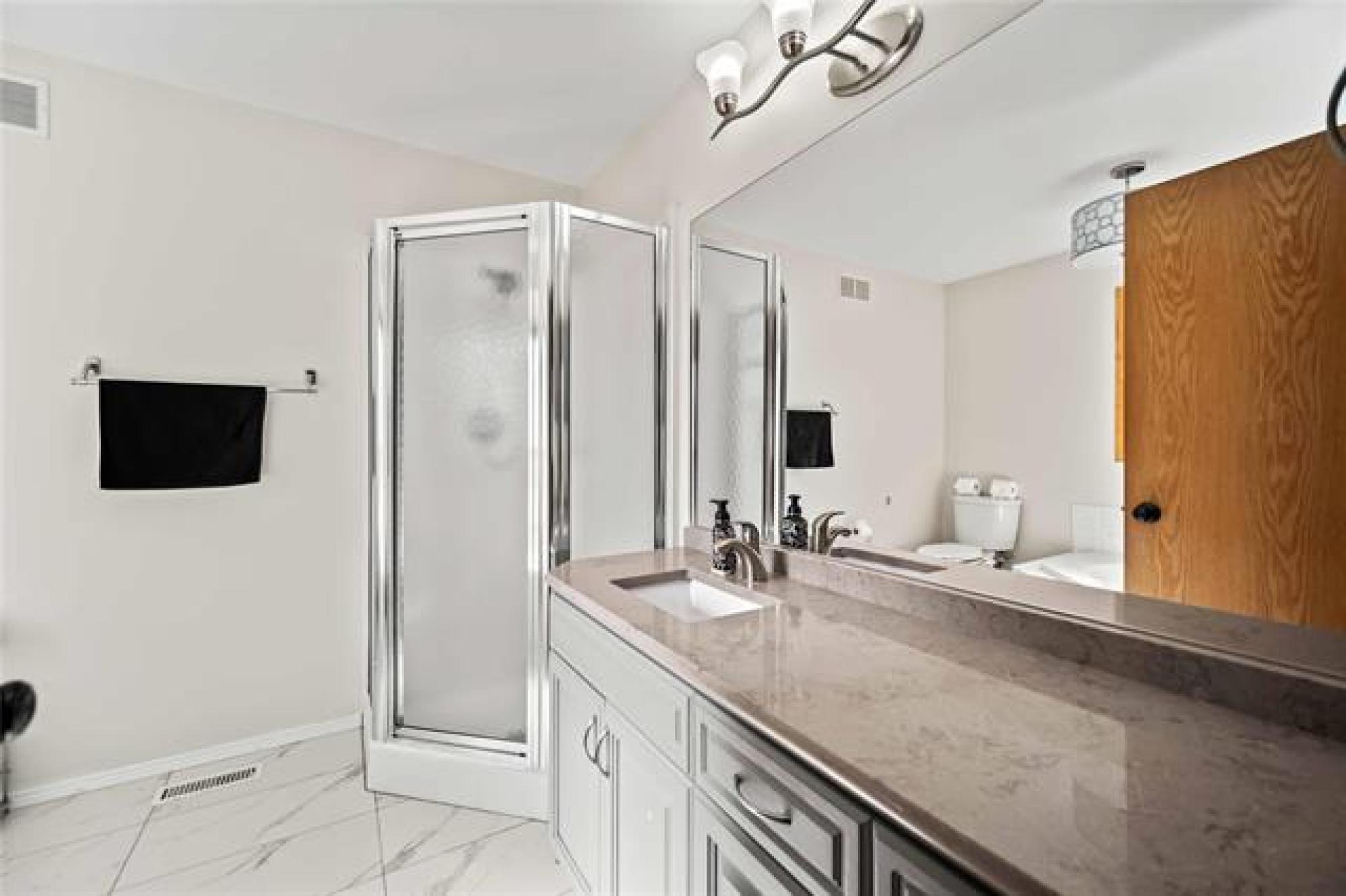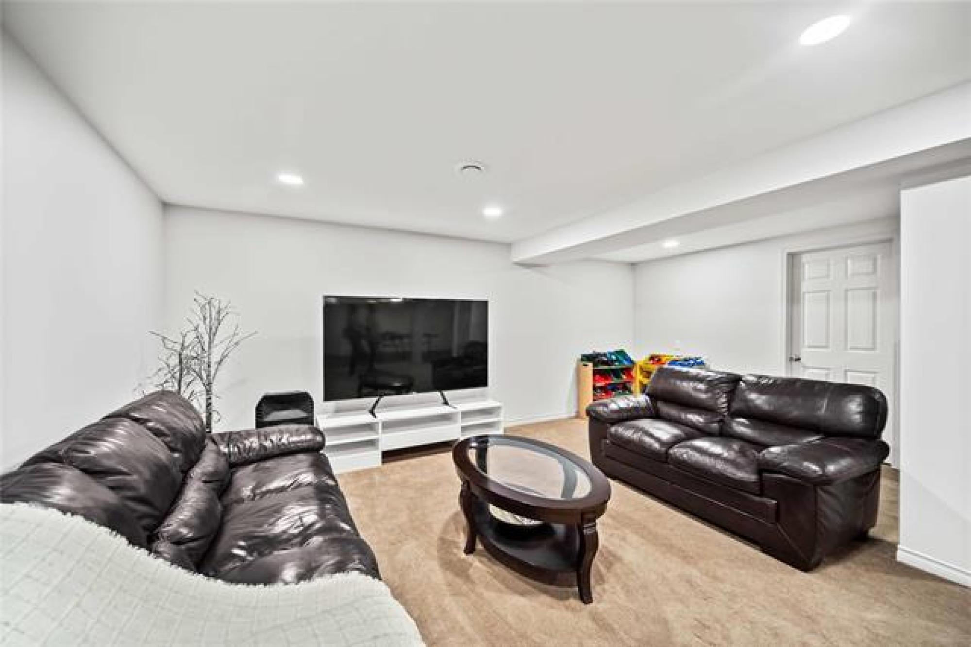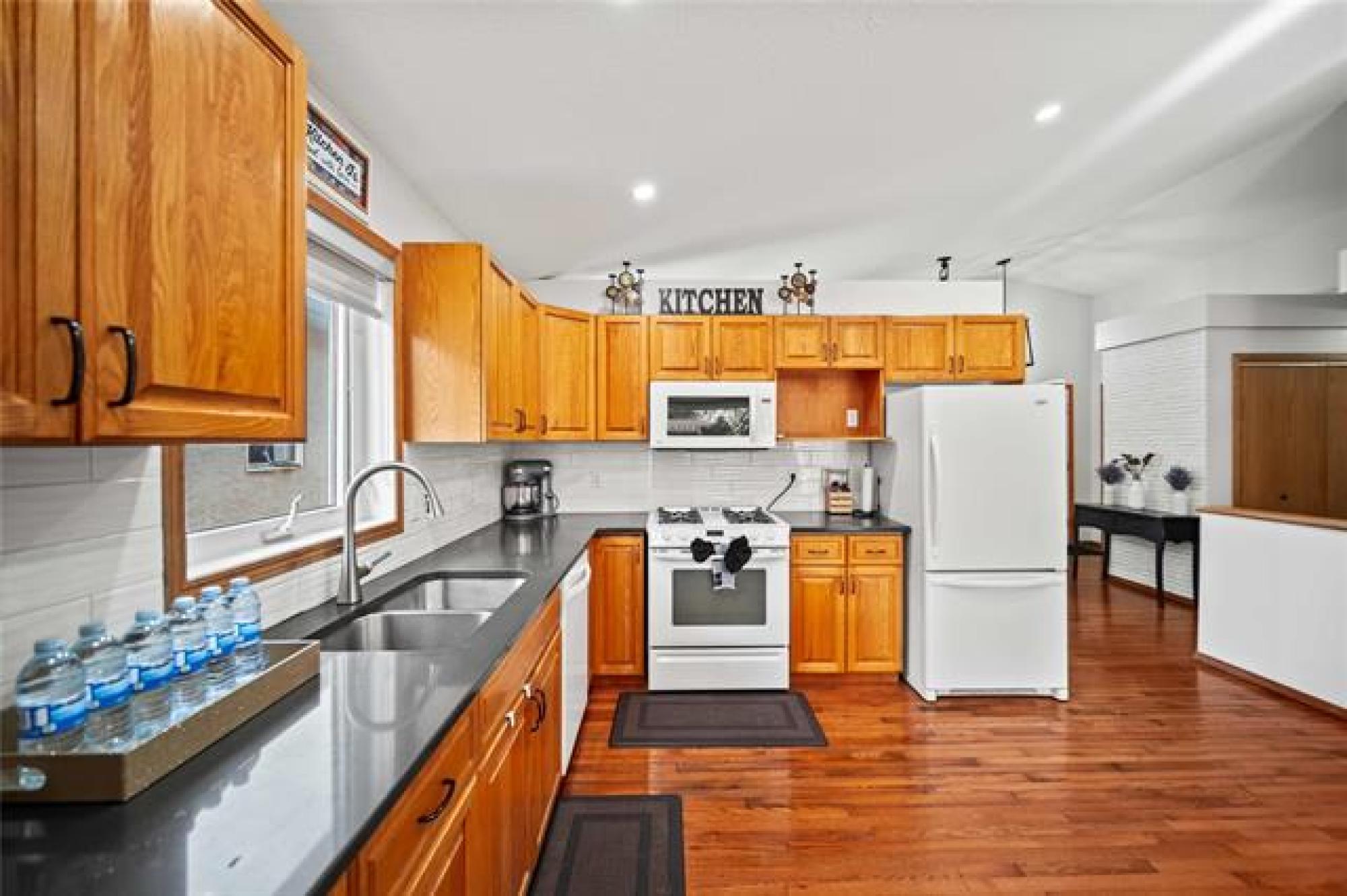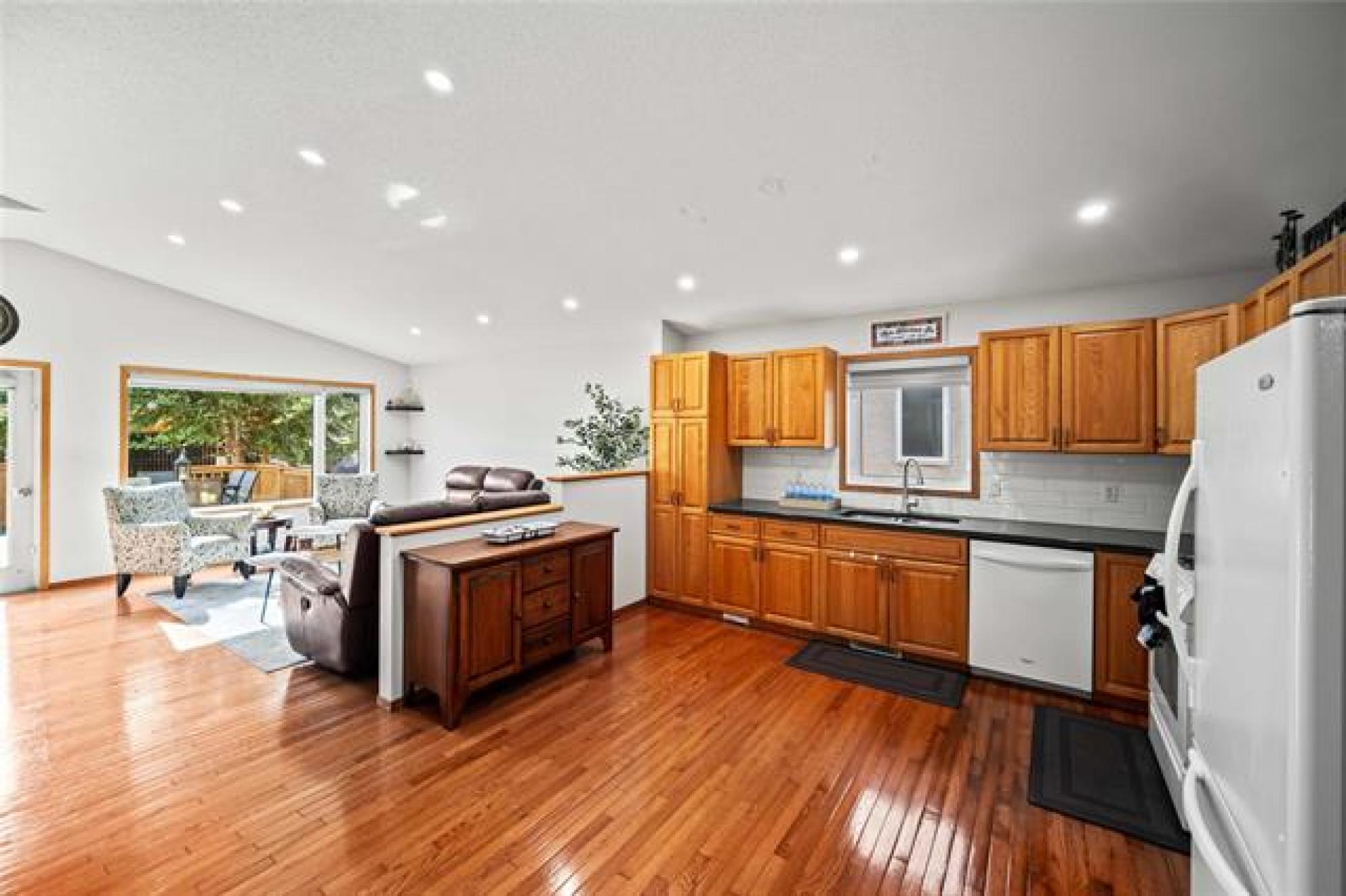 Offers as Received. You are going to love this rarely available 1,440 sf bungalow situated in the heart of Royalwood. This home has a modern open concept great rm plan with a formal dining rm at the front with beautiful HWF's and soaring vaulted ceilings. The kitchen has lots of cabinetry with a gas range and backsplash. The adjoining family rm is spacious in size with big bright windows and lots of pot lights. There are 3 bedrooms on the main floor with the primary having lots of rm for furniture and is complete with a remodelled dlx ensuite bathroom and walk-in closet. Downstairs the bsmt is fully finished with a large rec-room with 4th bedroom, 3rd full bath and large storage room. The backyard is fenced and landscaped with a large deck that is surrounded by crushed granite, interlocking brick patio + pergola and a large storage shed. Other upgrades include: Shingles (2024), Furnace (2023), Sump Pump (2025), Exterior and Interior paint (2025).