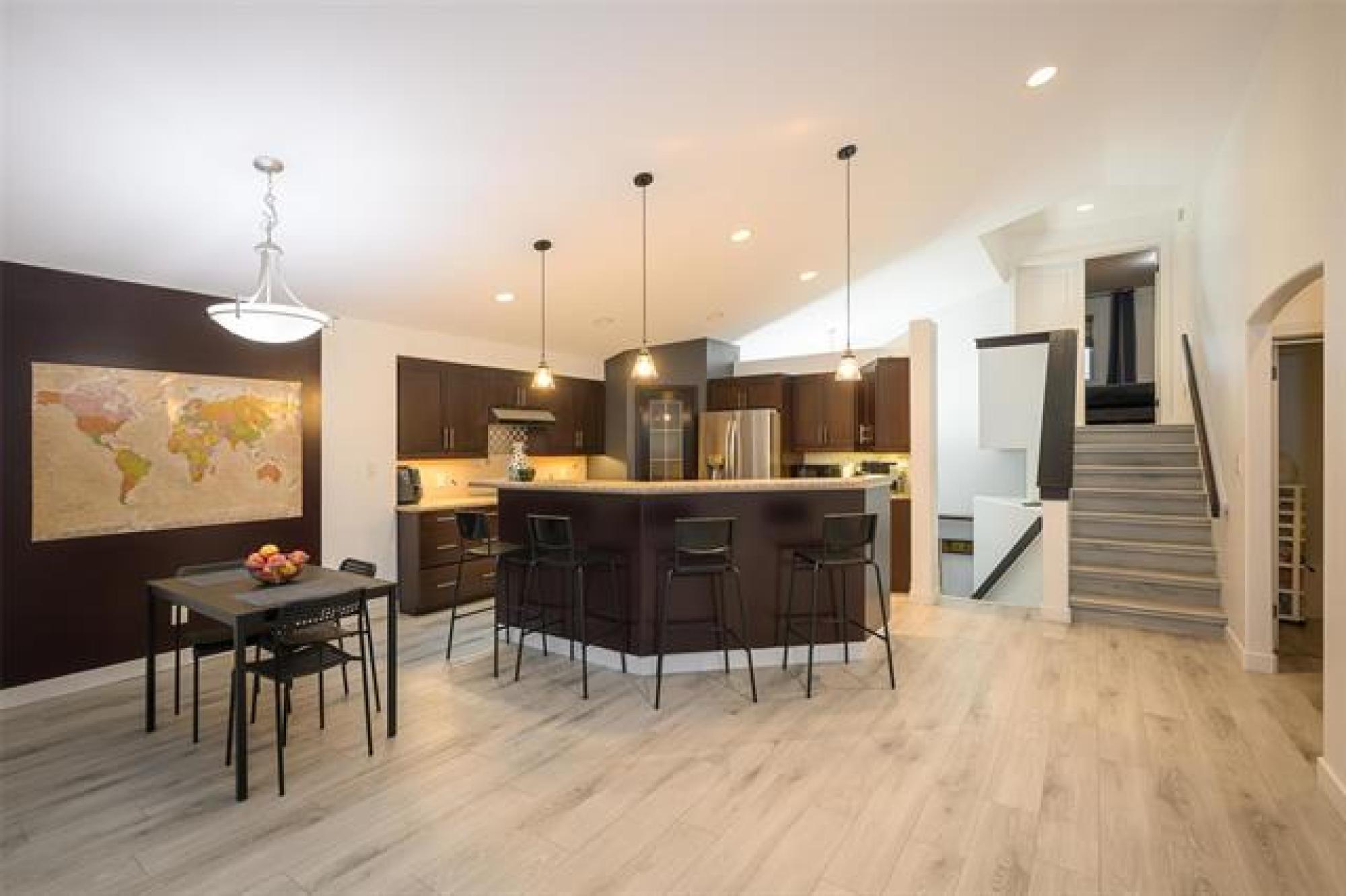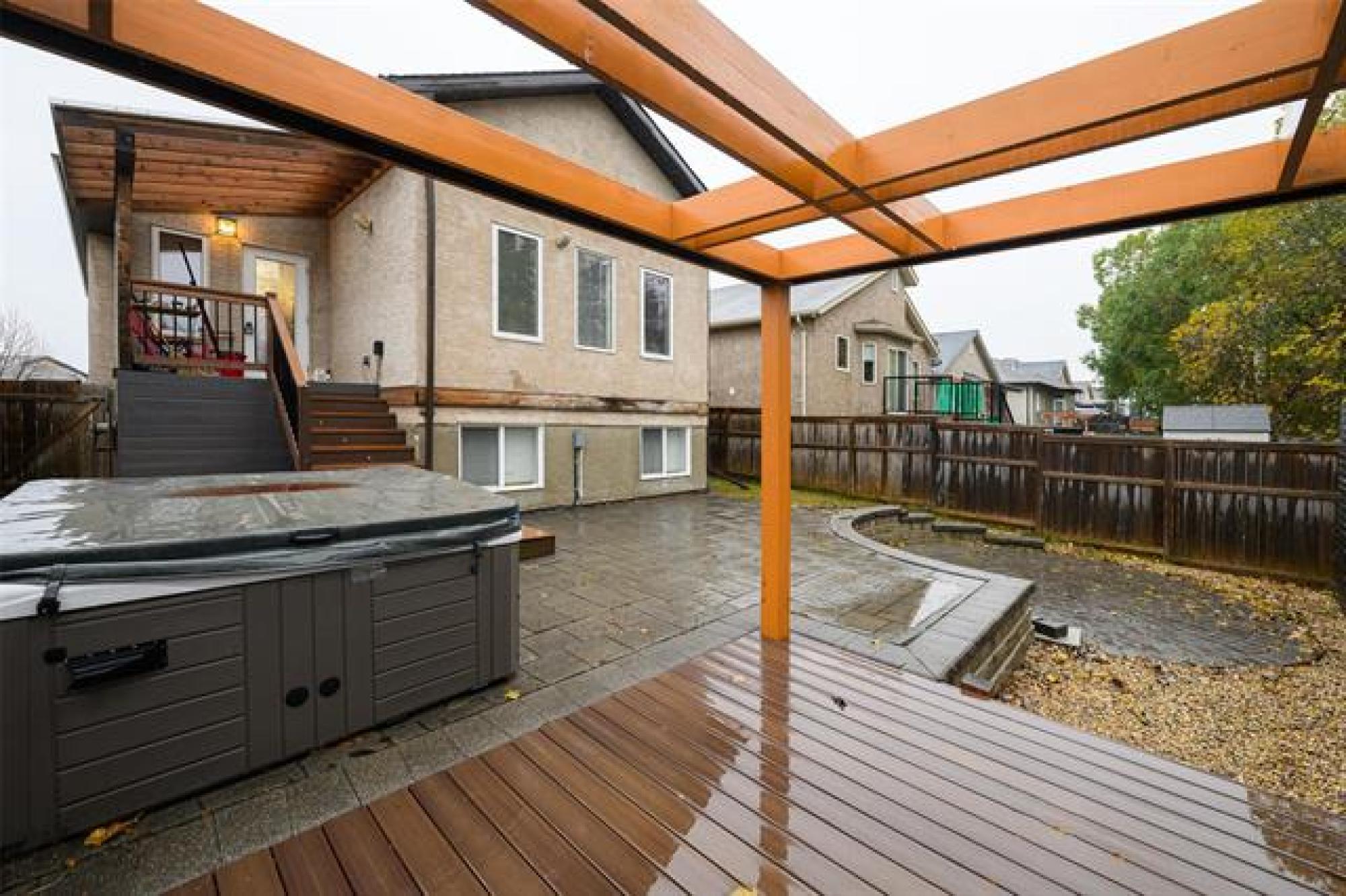 Showing start now, Offers as received. Welcome to this stunning cab-over style home located in the lovely neighbourhood of Mission Gardens. Step inside and immediately fall in love with the BRIGHT & SPACIOUS open concept floor plan! The main floor consists of a large living room, eat-in kitchen overlooks the dining area and family room with vaulted ceilings with speakers system, gas fireplace, 2 bedrooms and 4 piece bathroom finalizing the main level. The upper level has a grand primary bedroom with a walk-in closet and a 4-pc ensuite. The basement has another bedroom, a full 3 pc bathroom with a beautiful shower, another living area good for entertainment and laundry room. The backyard is amazing with a gazebo, fire pit, hot tub and a pergola on the deck. Insulated double garage, newer roof - shingles (2024), newer flooring on the entire main floor (2022), HWT (2023), Washer (2022), Refrigerator (2021) and much more!! Must see!!!