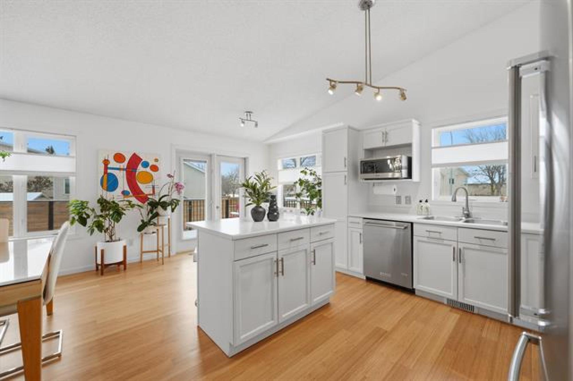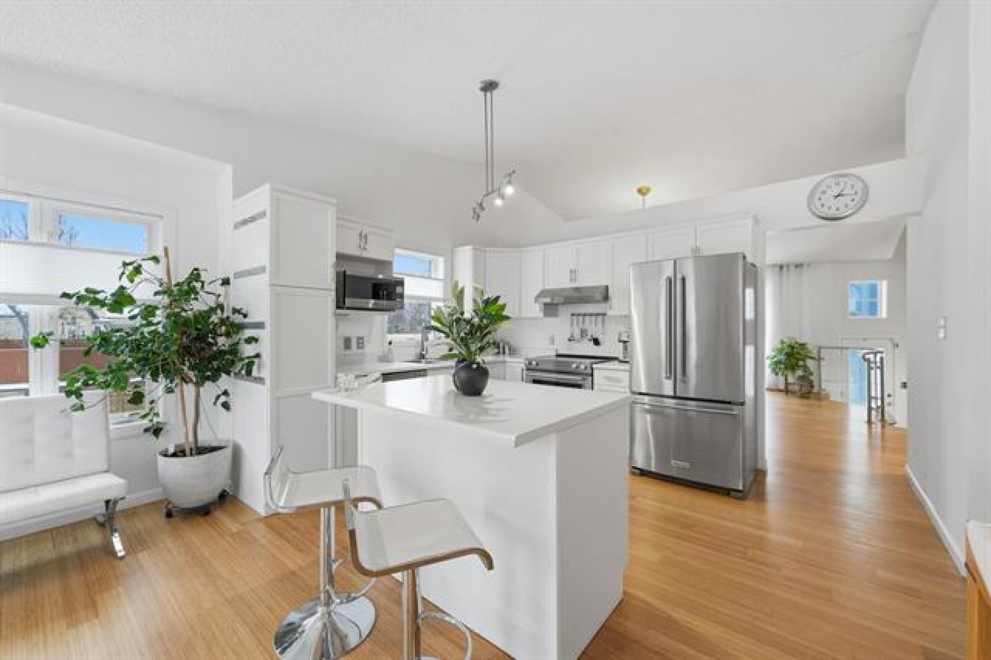 Showings start Wed Dec 10,Open House Dec 14th with offers Dec 15th evening.Located on the Island in desirable Island Lakes!This 1532 sq foot Cabover on a corner lot is sure to impress! Original owners!Fantastic curb appeal!4 spacious bedrooms,3 full baths! Bamboo hardwood floors! Contemporary glass railings! Vaulted ceilings!Open concept! Super bright and sunny as a South facing window was added with East and West exposures! Upper primary bedroom easily accommodates a King sized bed with deluxe 5 piece ensuite with a walk-in shower for two!! Large Kitchen/Dining room area is super fun to entertain in! Fully finished lower level with a unique extra bedroom(may not meet egress requirements),plus a 3 piece updated bath! Attached double garage is heated and insulated with epoxy floor and spray foamed ceiling for added insulation! Huge 2 tiered deck and fire pit area in the back!Landscaped back yard with modern newer horizontal fence and dog lookout windows.Concrete parking pad on the side for grown up toys!Extra large 60x120 lot which means lots of street parking unlike the new subdivisions! Super close to beautiful walking paths, conveniences and all the amenities the surrounding areas have to offer!WOW!
