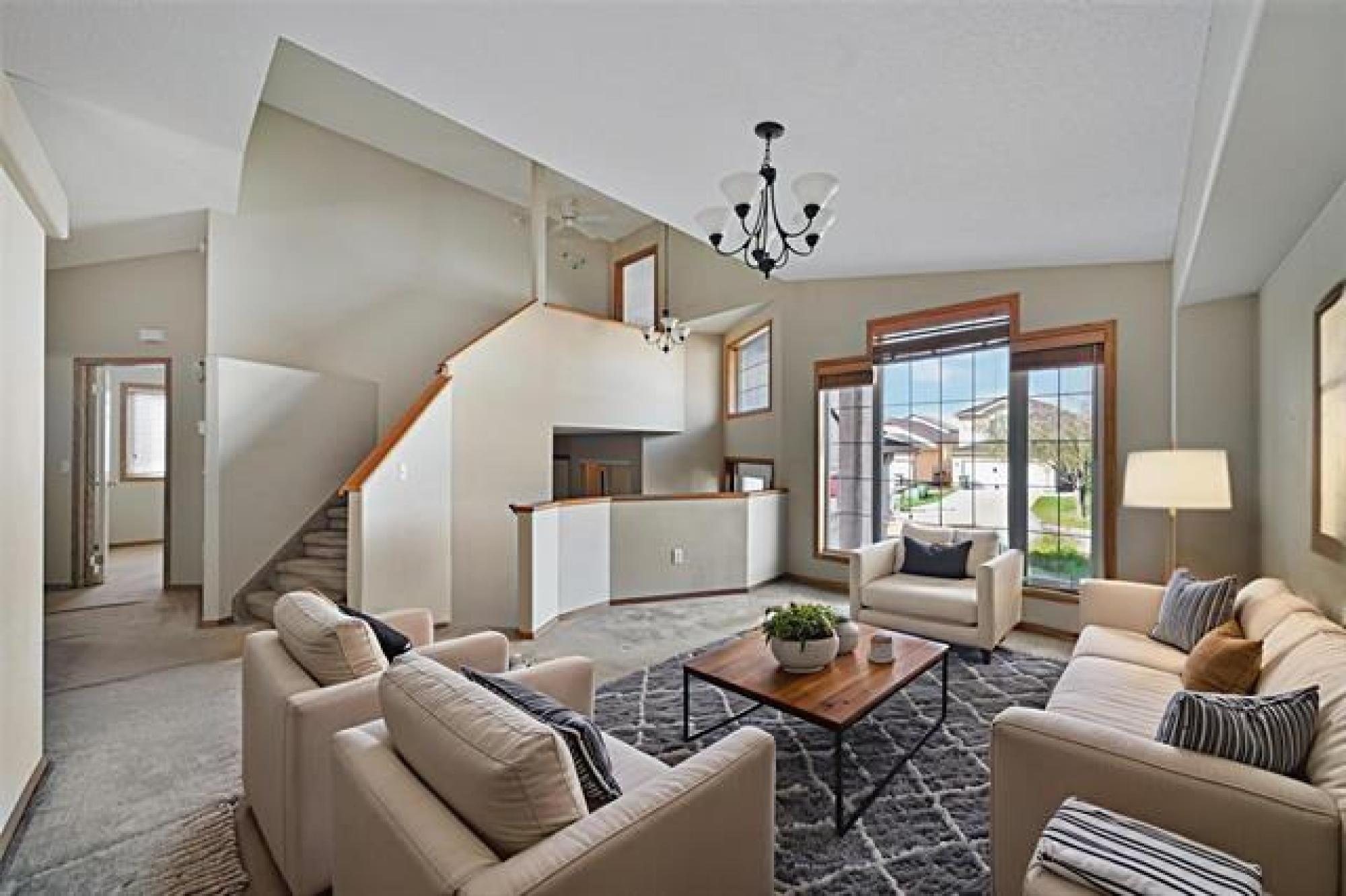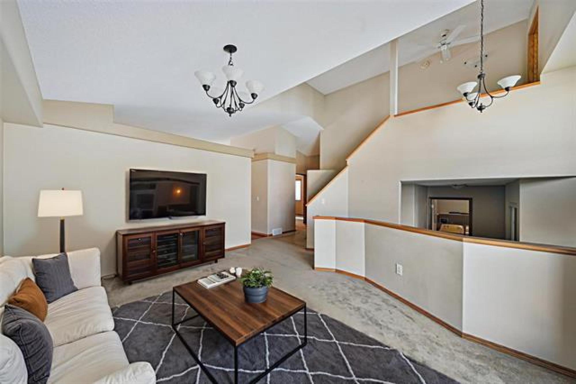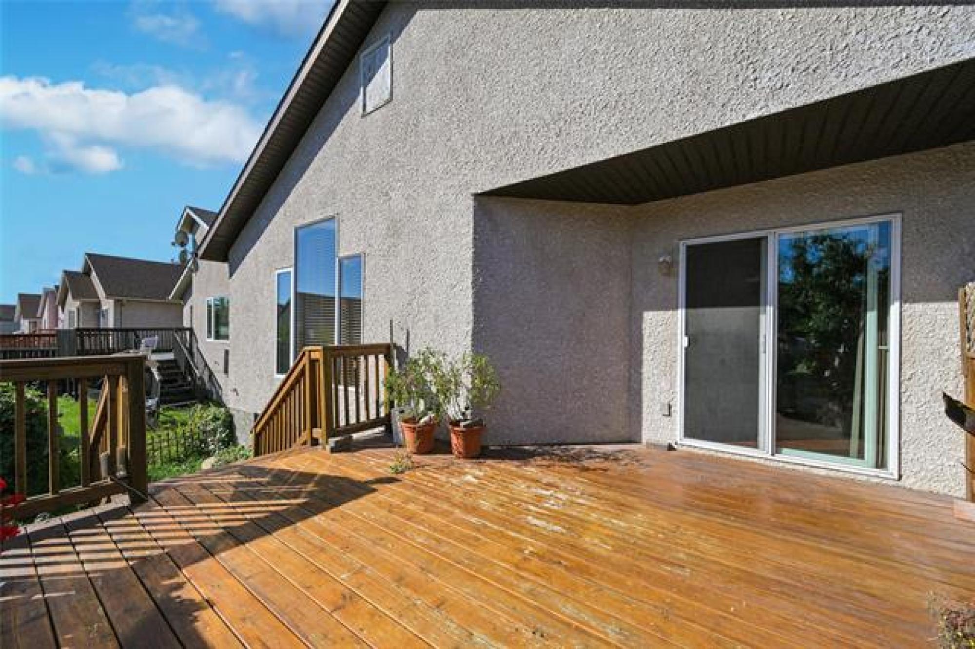 Beautiful Richmond West family home on a quiet street seconds from Kirkbridge Park. Cab-over style with bright open plan, island kitchen, living room with gas fireplace and front family room. Hardwood flooring, soaring vaulted ceilings, two bedrooms on the main, main floor laundry and a 4 piece bathroom. Upper level features the large primary suite with walk in closet and 4 piece ensuite bathroom. Lower level of the home is finished with a huge rec room, roughed in bathroom, 4th bedroom and lots of storage. High efficiency furnace(2021), central air(2021), newer roof(2021) and hot water tank(2024). Attached double garage, low maintenance front landscaping and flower beds/gardens in the back, deck and patio. Close to all levels of schools, the U of M, transit, shopping and restaurants. Don't miss this opportunity to get into the market in a lovely family home at a reasonable price point. Measurements are approximate and +/- jogs. Some photos have been virtually staged.