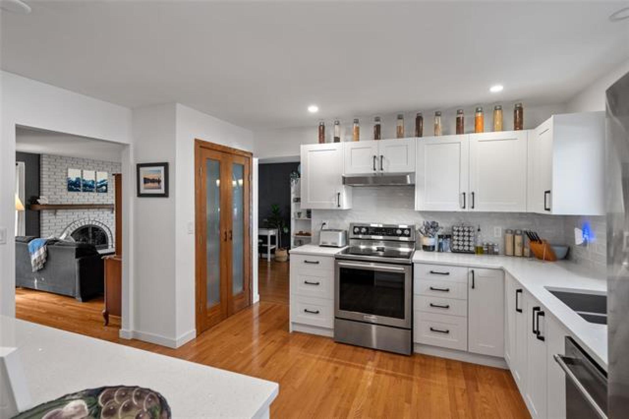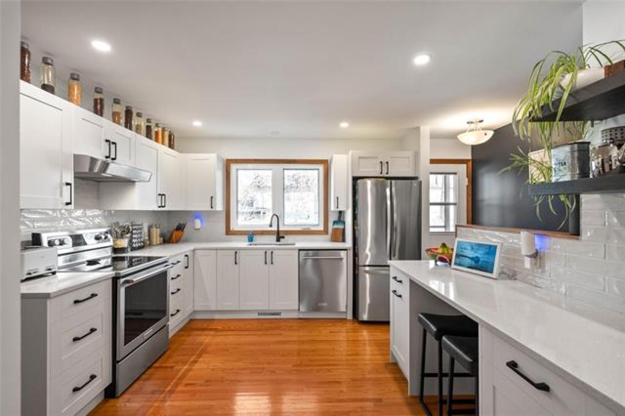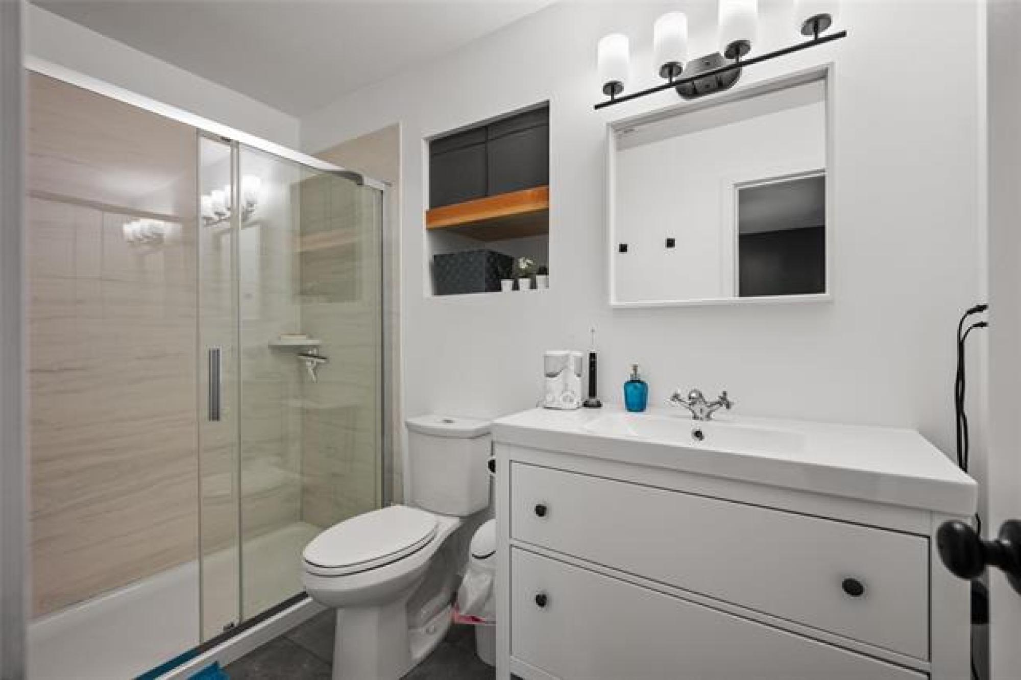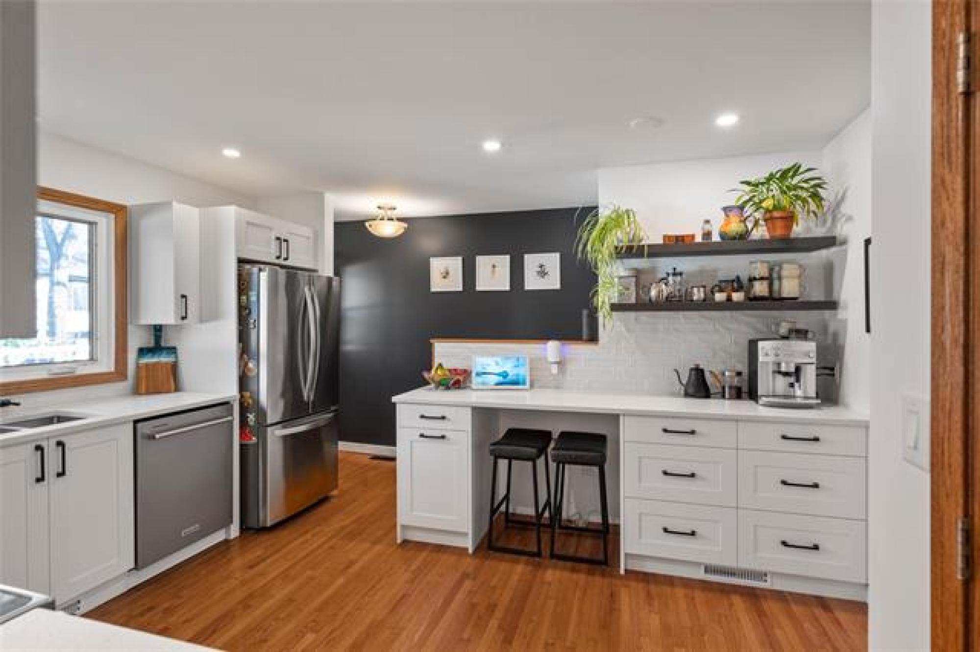 SS Oct 28. Offers Nov 4 eve. Welcome to the family friendly neighbourhood of River West Park and rare chance to live on Waterhouse Bay. Tastefully updated, well maintained and super functional 4 level split. Large south facing wdw allows for natural sunlight into the main living area. Soft grey brick FP anchors the LR, and visible from the spacious DR w/updated doors to the deck. Modern and well thought out kitchen '23 offers a breakfast/coffee bar, soft close white cabinetry, quartz counter tops+tile backsplash. Sinks overlook backyard. Upper level holds 3 good sized bdrms; primary has a private balcony w/garden doors and a remodelled 3pc ensuite '23. Lower level offers a great family room w/two lrg south facing wdws, 2pc bath and 4th room {non egress}. The basement is partially finished and holds a space that would make an excellent gym/games room (great ceiling height!), plus a finished arts and crafts room, dedicated laundry and pantry. Upgrades incl: wdws, shingles, eaves, soffit+fascia, garden doors, lrg driveway, front stucco. HEF+panel '18 + HWT '25. Attached dbl garage. Close to shopping, Caron Park and RWP School. Don’t miss your chance to get into this highly sought after neighbourhood!