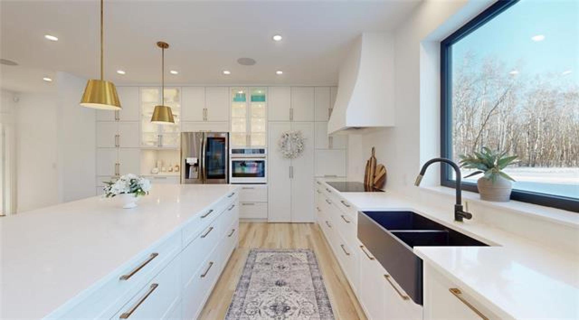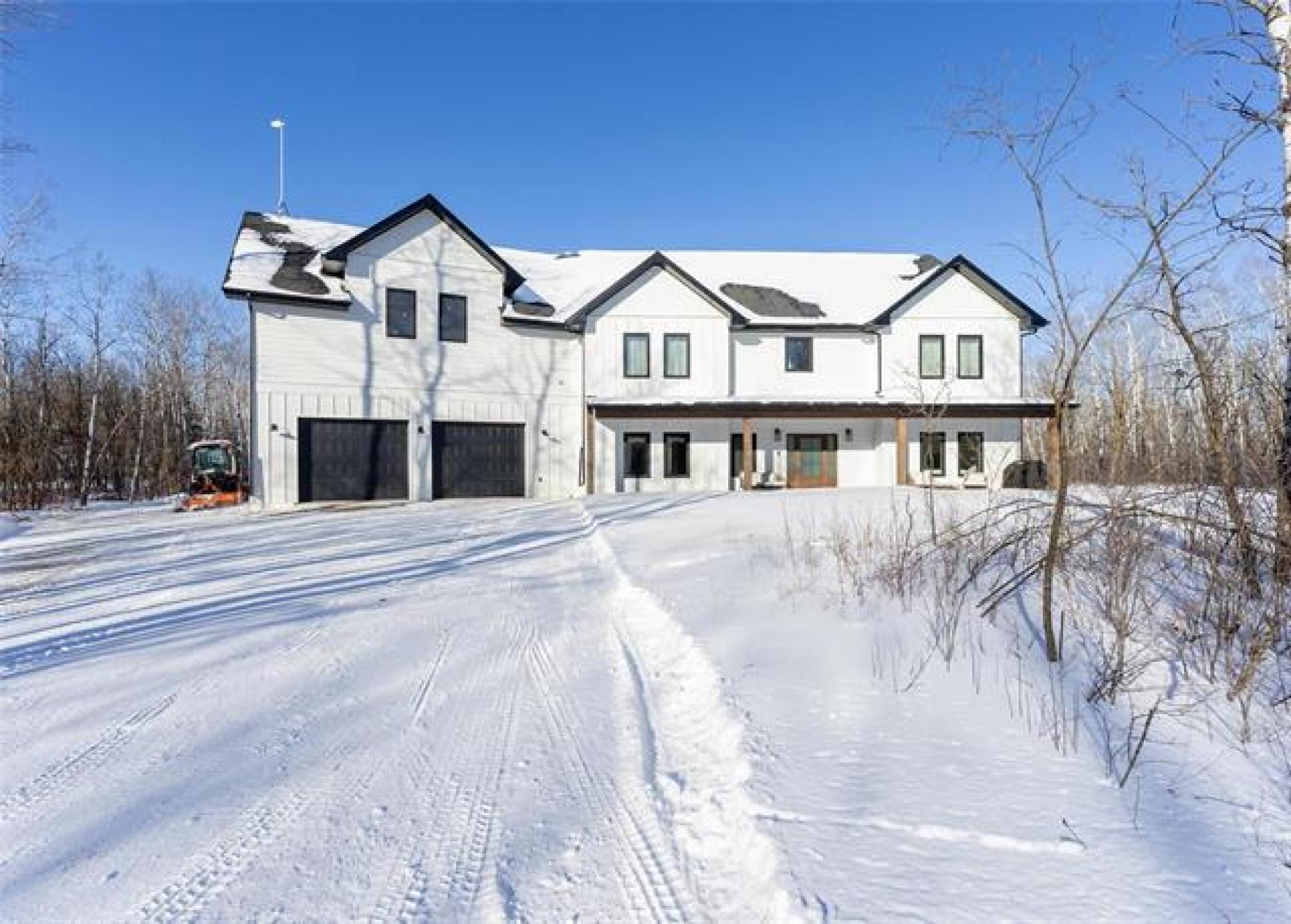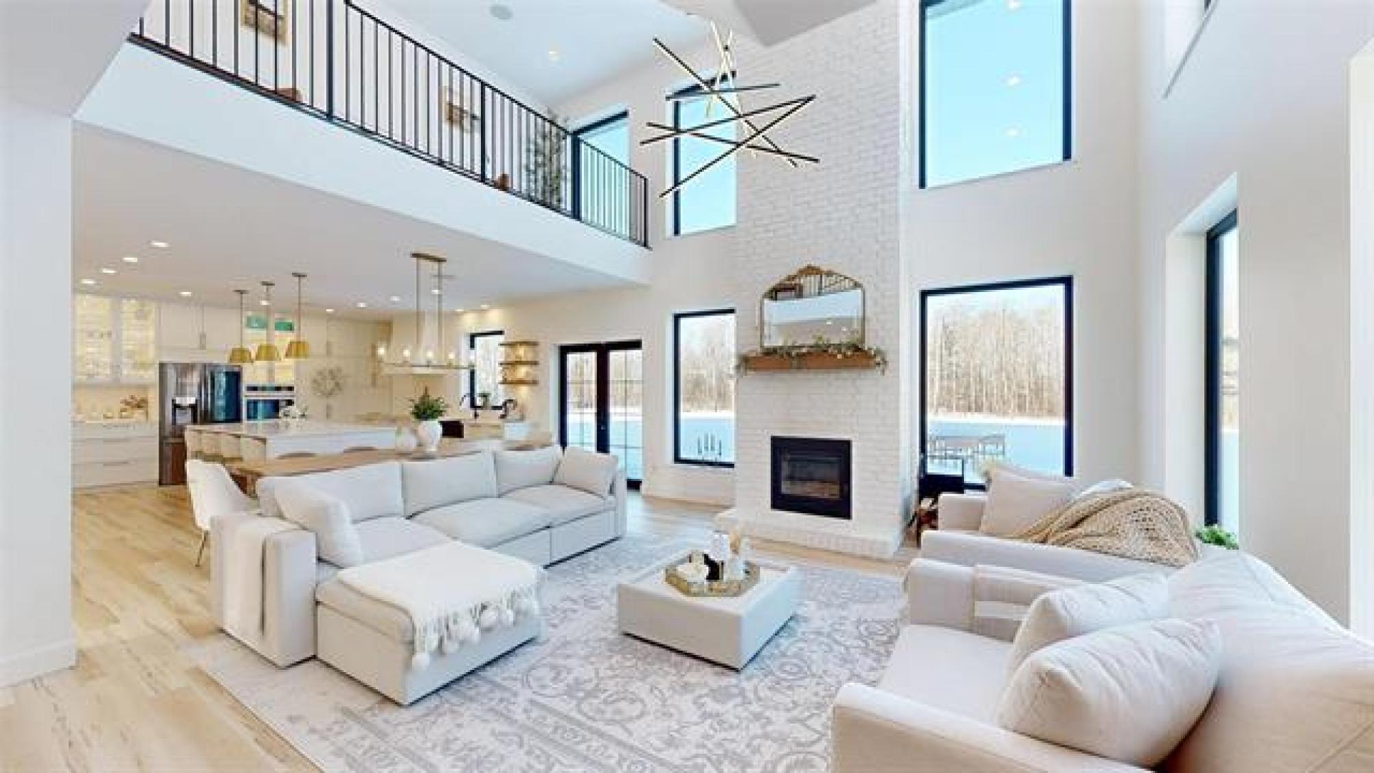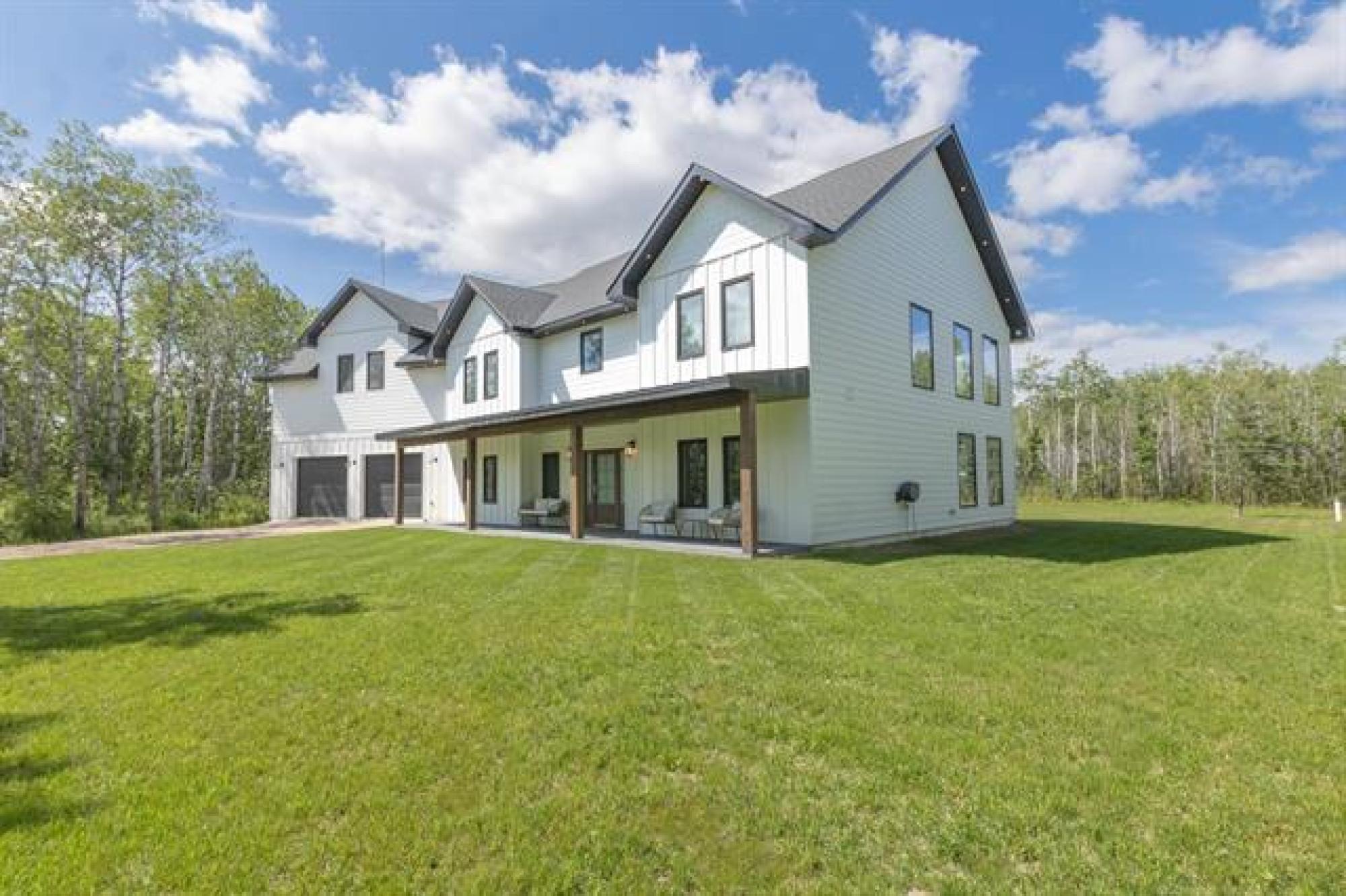 Welcome to this luxurious and stunning 5-bedroom, 3-bathroom home, perfectly set on a private, treed lot in the quiet neighbourhood of Lake Riviera Estates. Designed with high-end finishes and striking architectural detail this home offers exceptional space, comfort and style! The main floor features a bright open-concept kitchen and living area with 19ft ceilings, impressive open-to-above design, oversized windows, and a striking wood-burning fireplace. The dining area includes patio doors leading to the backyard—perfect for entertaining. Two dedicated office spaces make working from home easy. Upstairs, you’ll find three spacious bedrooms and two full bathrooms, including a beautiful primary suite with a luxurious ensuite and a large custom walk-in closet. A massive loft and rec room provide versatile space for family living or relaxation. All bedrooms offer generous layouts and large windows! All interior walls are insulated with extra soundproofing to reduce noise transfer. Heated flooring on the main floor and in the garage ensures year-round comfort. Surrounded by trees, this exceptional property offers refined modern living in a peaceful setting! Call to schedule your showing today!