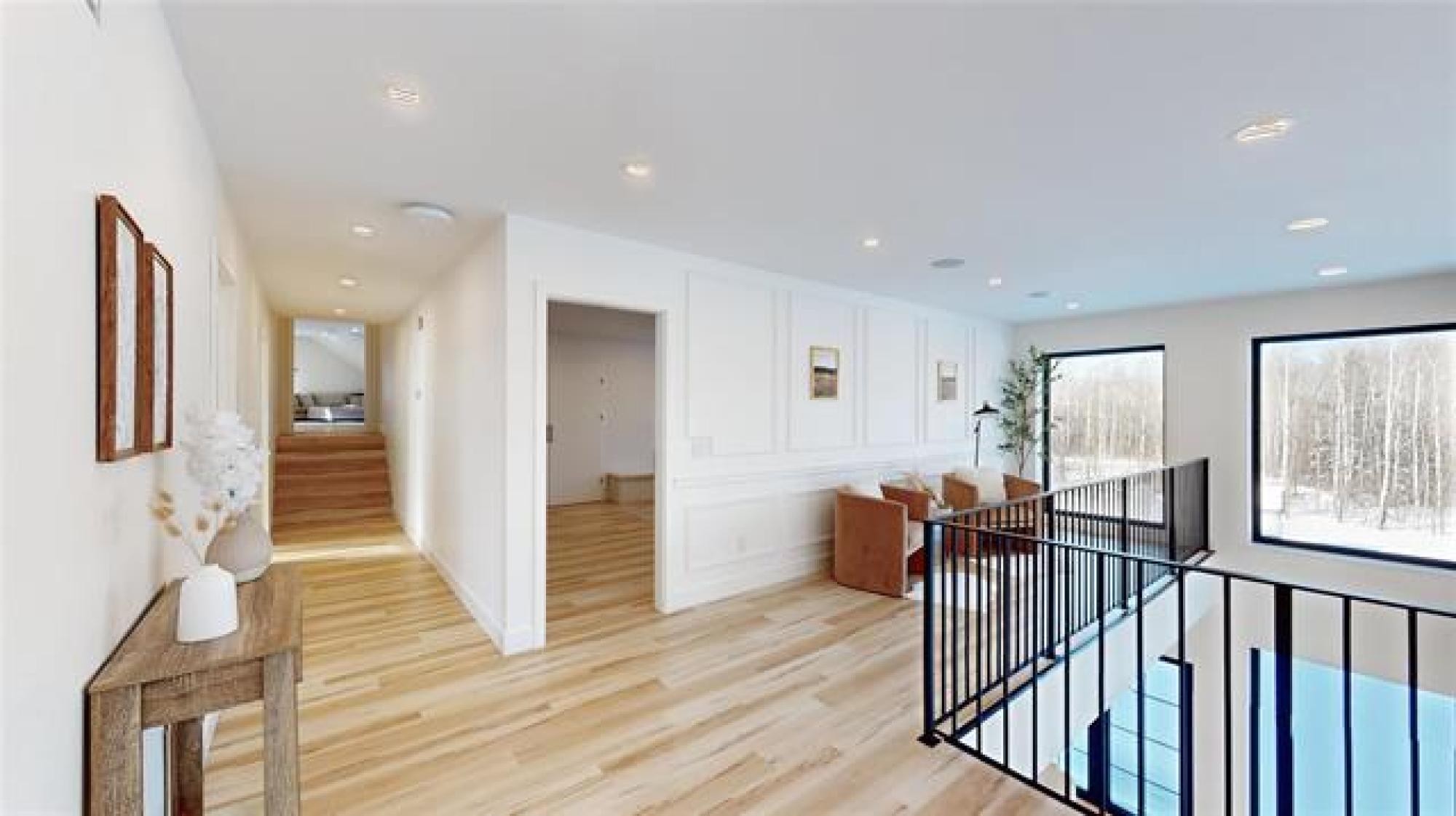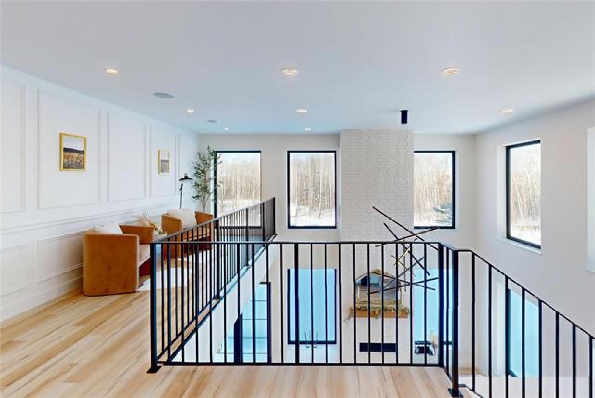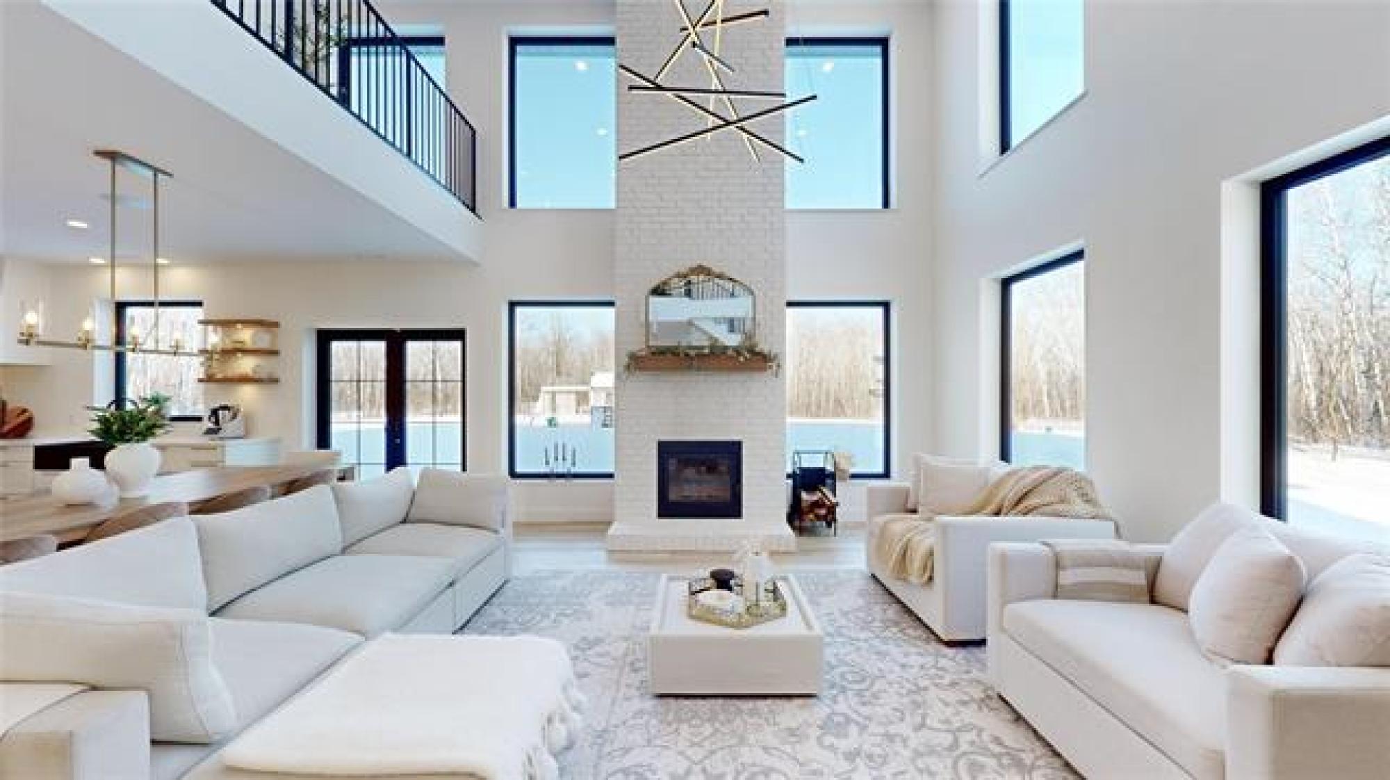 Welcome to this luxurious and stunning 5-bedroom, 3-bathroom home, perfectly set on a private, treed lot in the quiet neighbourhood of Lake Riviera Estates. Designed with high-end finishes and striking architectural detail this home offers exceptional space, comfort and style! The main floor features a bright open-concept kitchen and living area with 19ft ceilings, impressive open-to-above design, oversized windows, and a striking wood-burning fireplace. The dining area includes patio doors leading to the backyard—perfect for entertaining. Two dedicated office spaces make working from home easy. Upstairs, you’ll find three spacious bedrooms and two full bathrooms, including a beautiful primary suite with a luxurious ensuite and a large custom walk-in closet. A massive loft and rec room provide versatile space for family living or relaxation. All bedrooms offer generous layouts and large windows! All interior walls are insulated with extra soundproofing to reduce noise transfer. Heated flooring on the main floor and in the garage ensures year-round comfort. Surrounded by trees, this exceptional property offers refined modern living in a peaceful setting! Call to schedule your showing today!