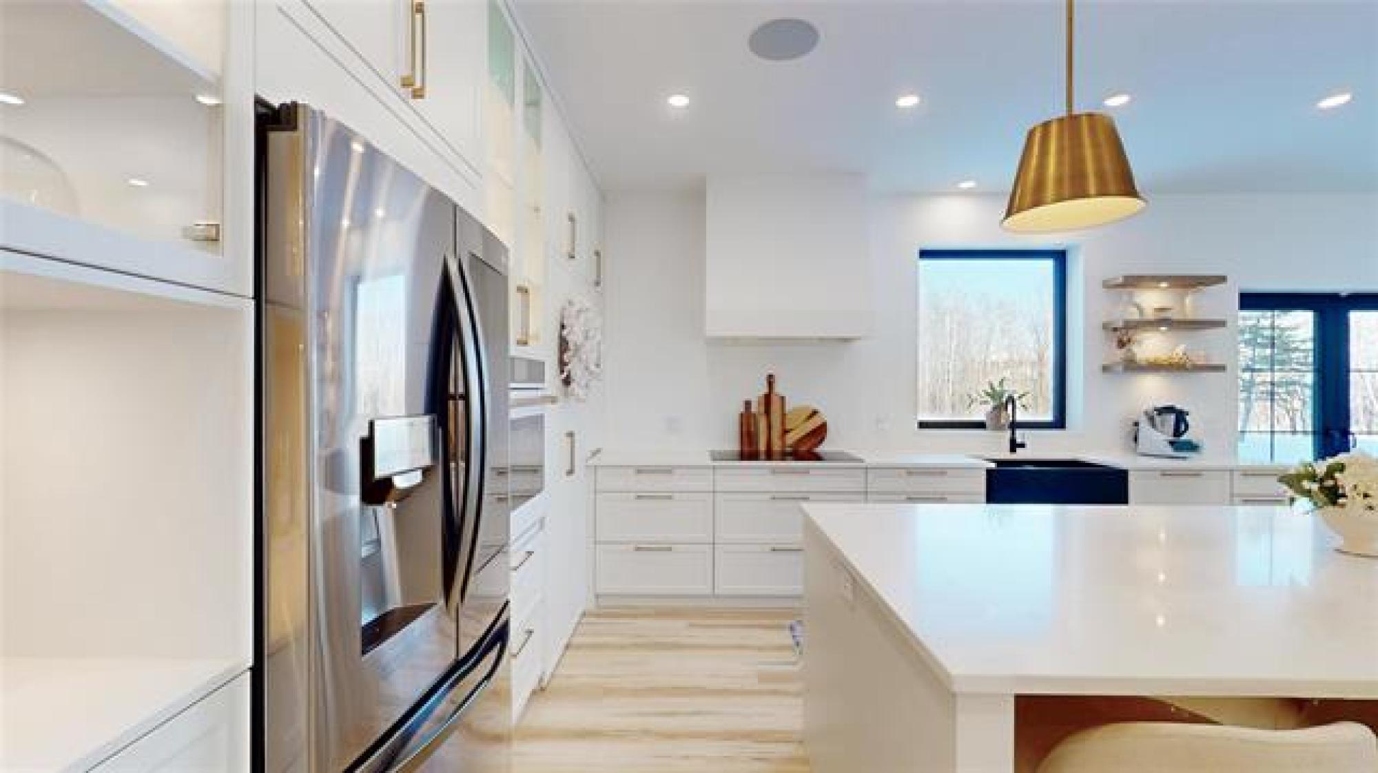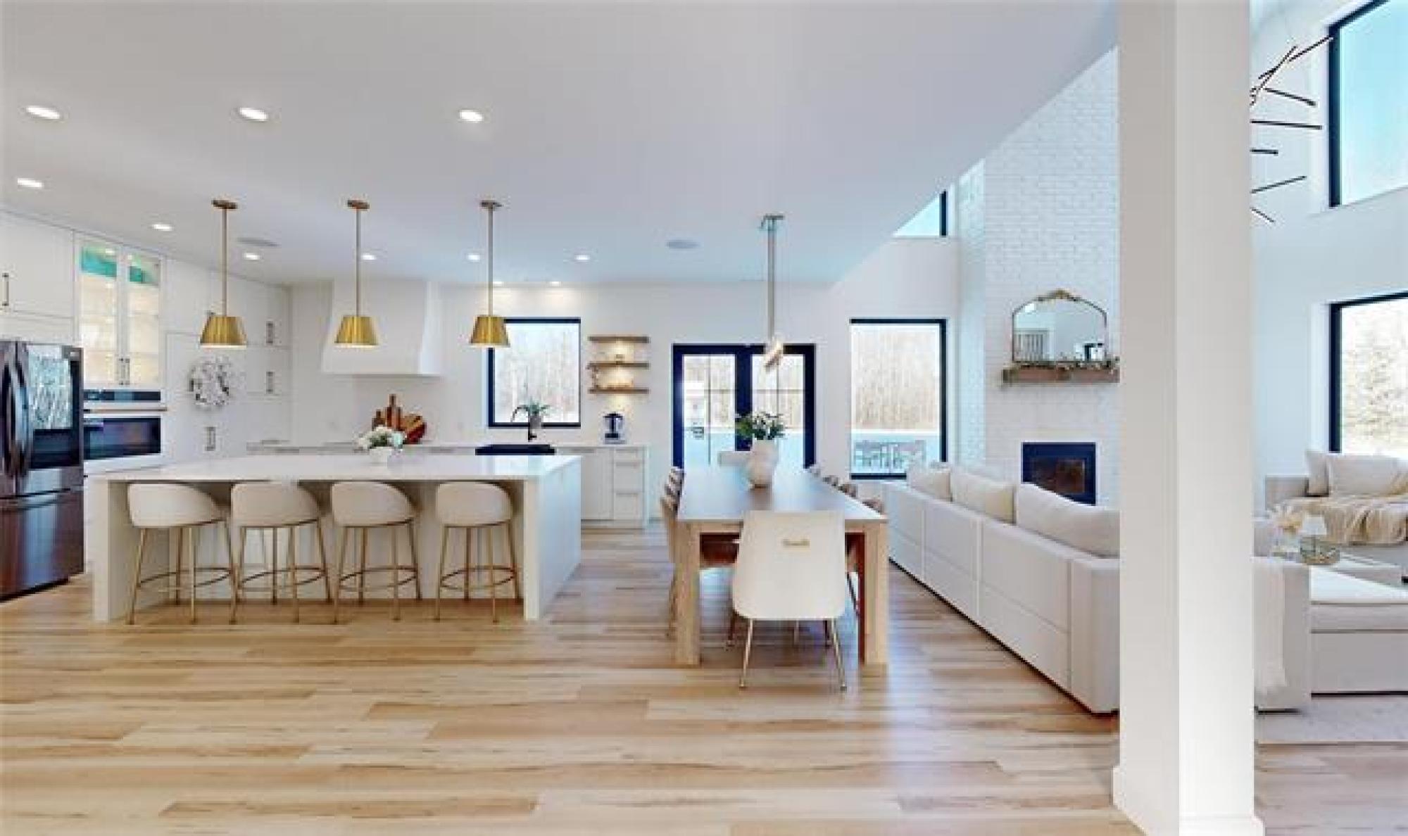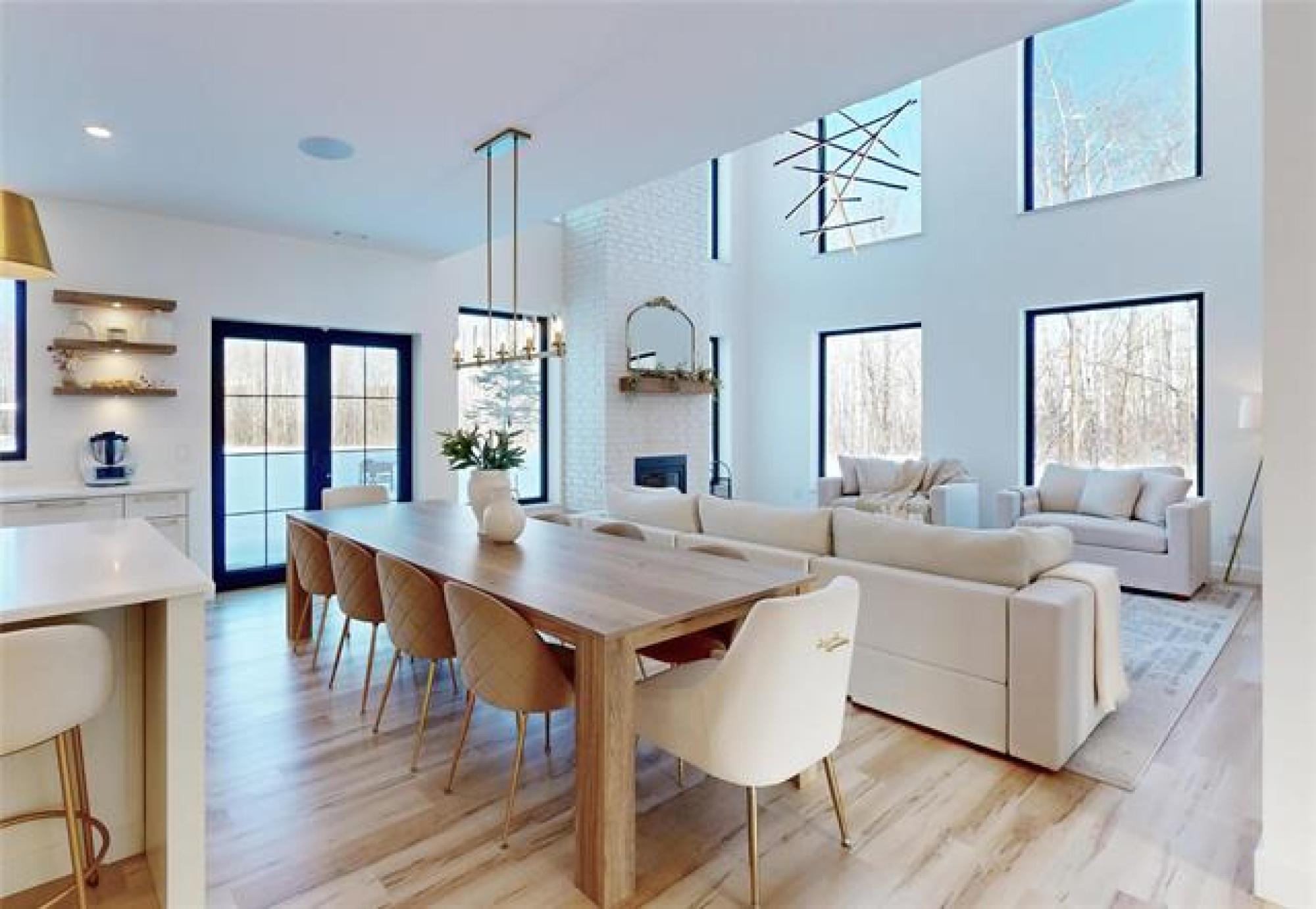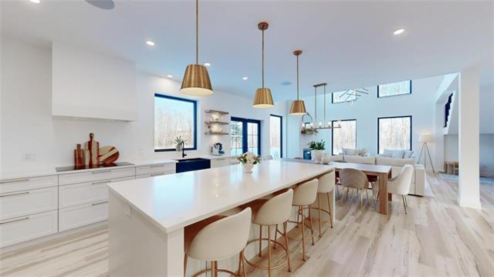 Welcome to this luxurious and stunning 5-bedroom, 3-bathroom home, perfectly set on a private, treed lot in the quiet neighbourhood of Lake Riviera Estates. Designed with high-end finishes and striking architectural detail this home offers exceptional space, comfort and style! The main floor features a bright open-concept kitchen and living area with 19ft ceilings, impressive open-to-above design, oversized windows, and a striking wood-burning fireplace. The dining area includes patio doors leading to the backyard—perfect for entertaining. Two dedicated office spaces make working from home easy. Upstairs, you’ll find three spacious bedrooms and two full bathrooms, including a beautiful primary suite with a luxurious ensuite and a large custom walk-in closet. A massive loft and rec room provide versatile space for family living or relaxation. All bedrooms offer generous layouts and large windows! All interior walls are insulated with extra soundproofing to reduce noise transfer. Heated flooring on the main floor and in the garage ensures year-round comfort. Surrounded by trees, this exceptional property offers refined modern living in a peaceful setting! Call to schedule your showing today!