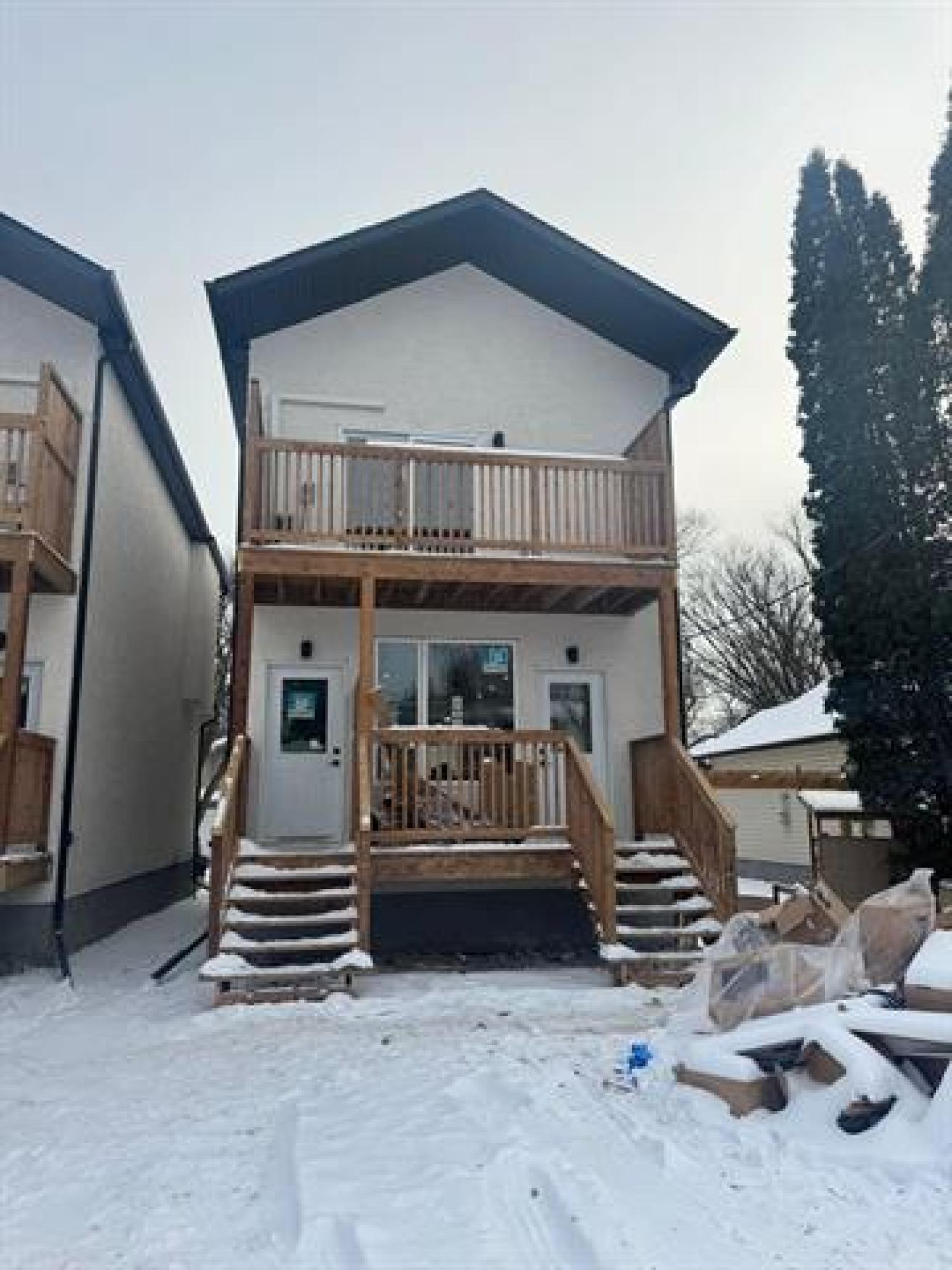 Quick Possession available! Brand new two storey home with a legal secondary suite (Duplex style) on the second floor. Home is located in desirable Fort Garry. Live in one unit and rent the other or Rent both units. Potential rental income of $3700 Per month. Features approx 2240 sqft of living space with separate utilities and laundry for each unit. The open concept main floor offers a massive living area, a central kitchen with ample modern cabinetry and a dining area perfect for entertaining guests. Lower level features 3 bedrooms, 2 baths, and the laundry area. The second level suite has a separate entry which features 2 bedrooms, 1 full bath, eat in kitchen and a spacious living area with a private balcony. High end finishes used throughout. Upgrades include: Main floor, basement, and second floor features High ceilings, black trims throughout, vinyl plank flooring, H.E furnace, HRV, high efficiency windows and doors, upgraded cabinetry & quartz counter tops, A/C in both units, decks at rear, built on piles and concrete walkway & gravel parking pad at rear. New Home Warranty. Close to all amenities such as shopping, bus service and schooling! Appliances negotiable!