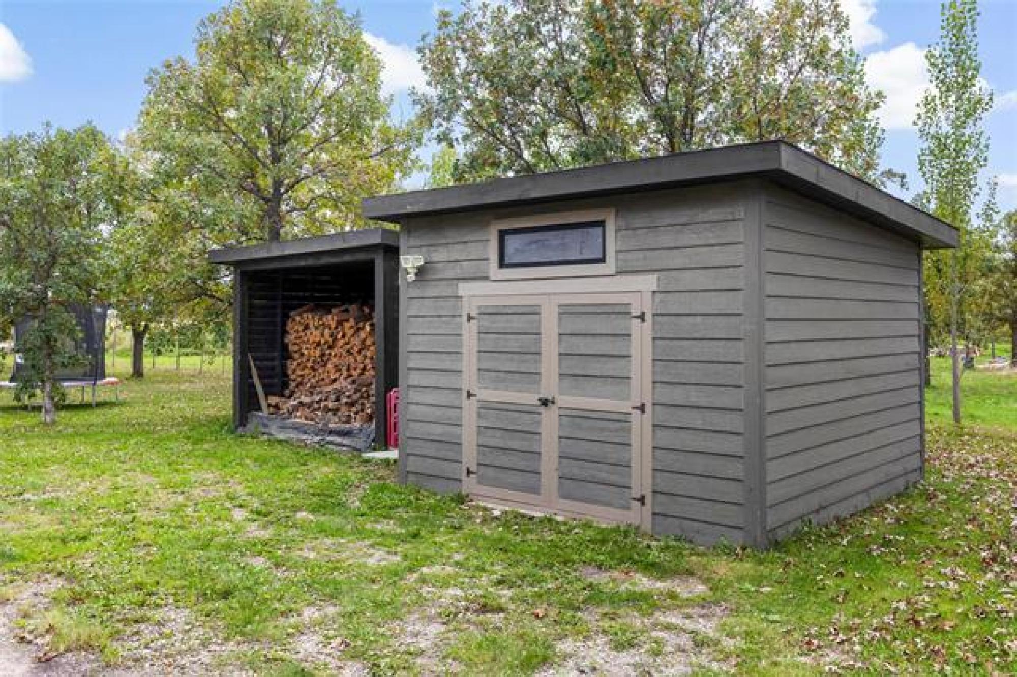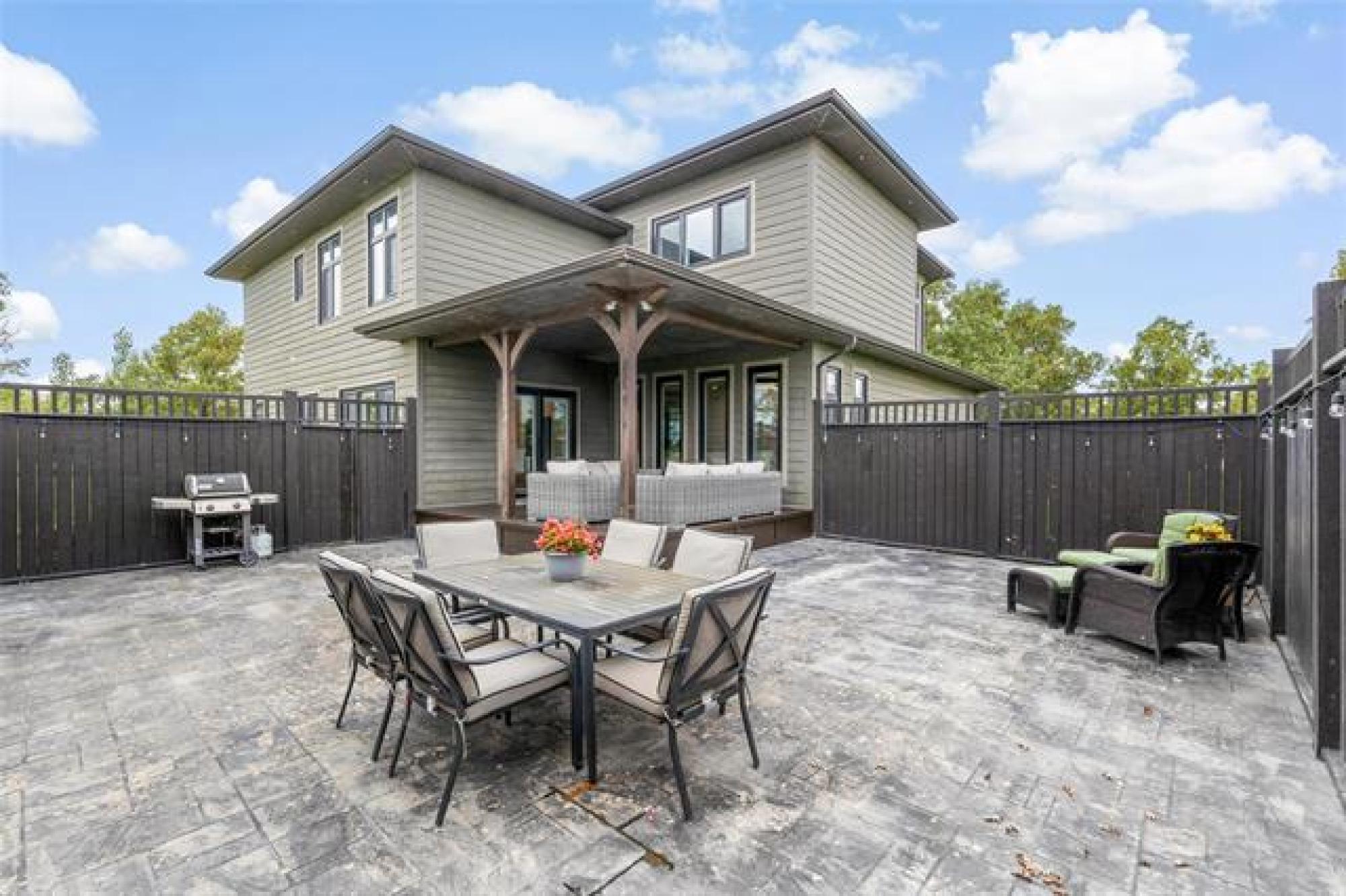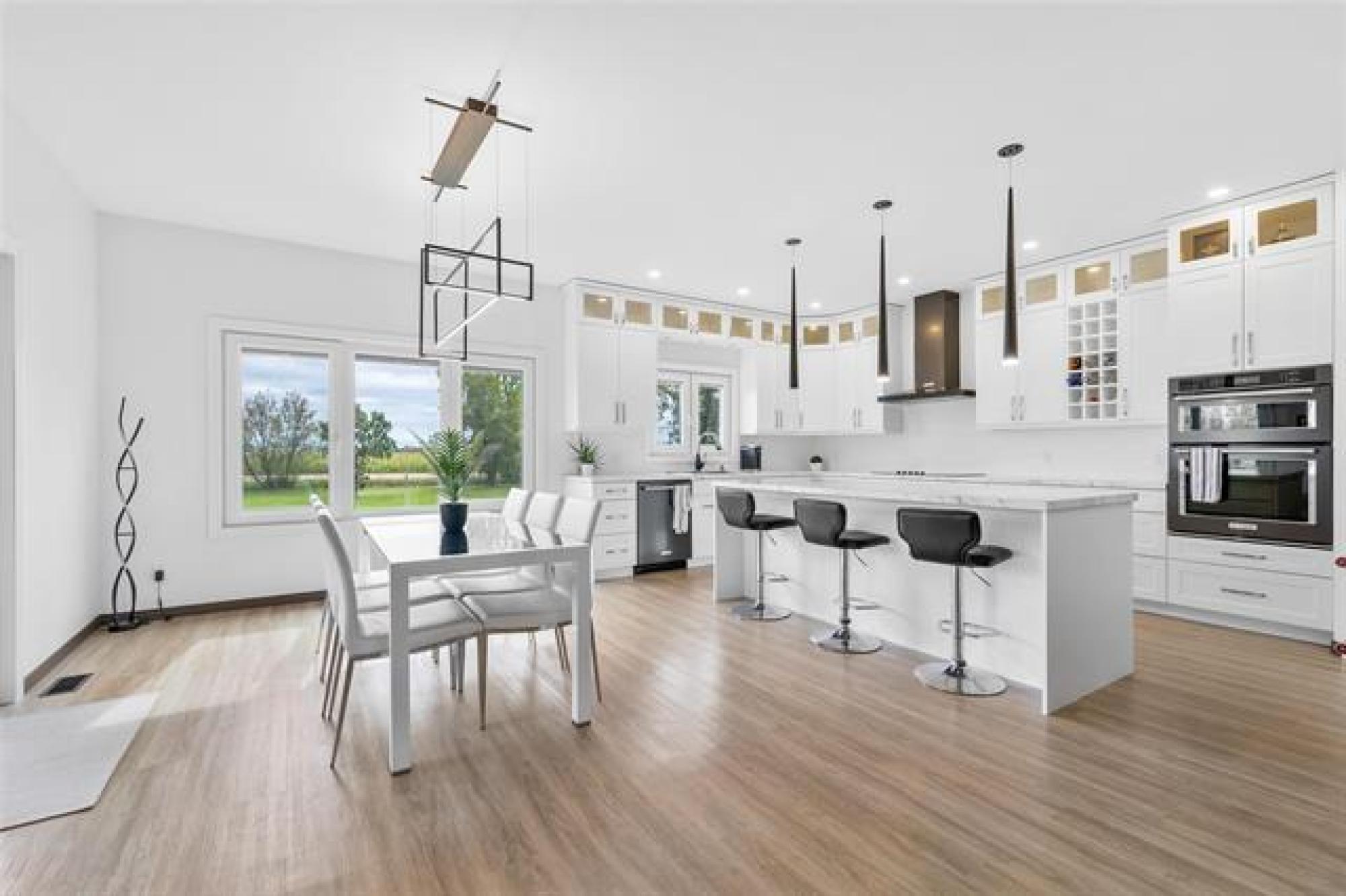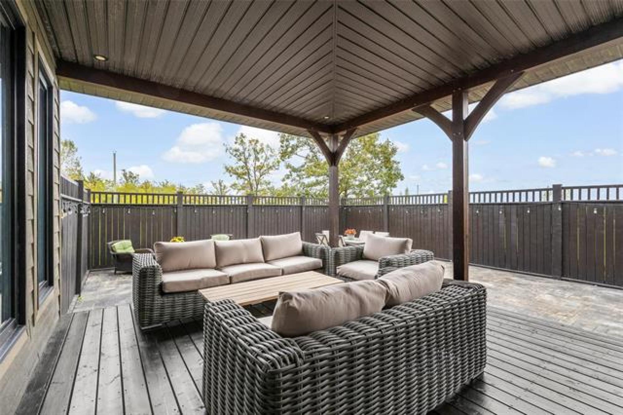 Grand 2,995 SF two-storey home with 5 bedrooms, set on a stunning 2+ acre property! This charming and elegant country home offers space to spread out and enjoy. Incredible curb appeal with stone and timberframe accents welcomes you in. Inside, the spacious living room features a cozy wood-burning fireplace with a striking brick surround, framed by large windows that flood the space with natural light. The open dining area has patio doors leading to a covered deck, making it ideal for gatherings. The massive kitchen is a true showstopper with crisp white cabinets, huge island with seating, corner pantry and pristine stainless steel appliances. A main floor bedroom offers flexible space for guests or a home office. Upstairs, the primary suite boasts a luxurious 5 piece ensuite with jetted tub and walk-in shower. Three additional bedrooms and a full bathroom provide plenty of room for family or guests. Step outside and enjoy your own private oasis. A 16x14 covered deck flows to a stamped concrete patio—perfect for relaxing evenings. The fully treed backyard with mature oaks offers privacy and plenty of room to roam. Call today to make this dream property yours!