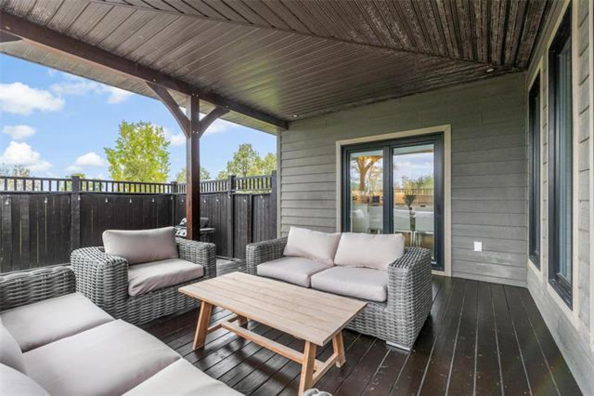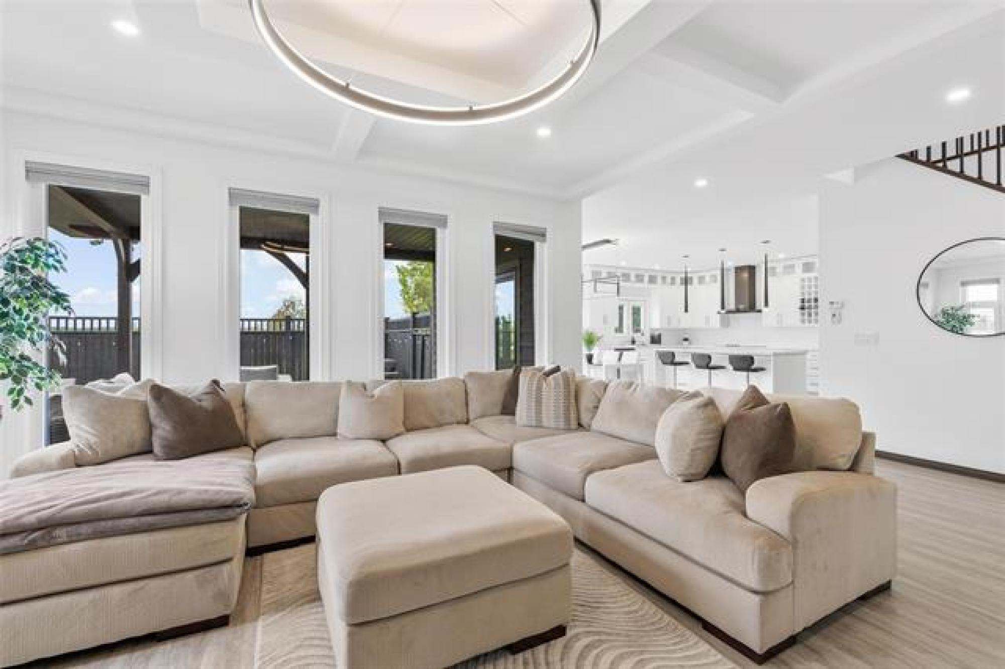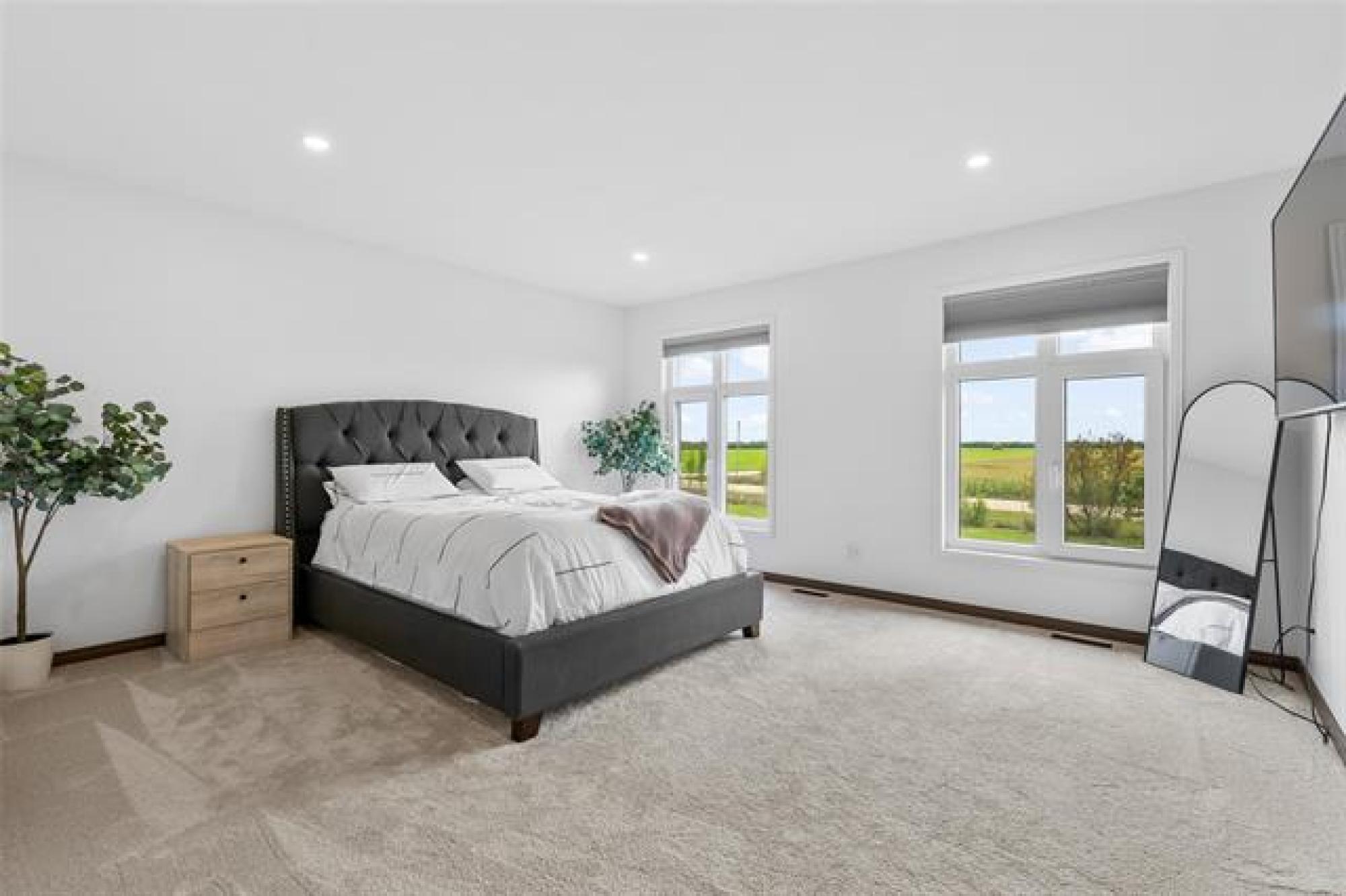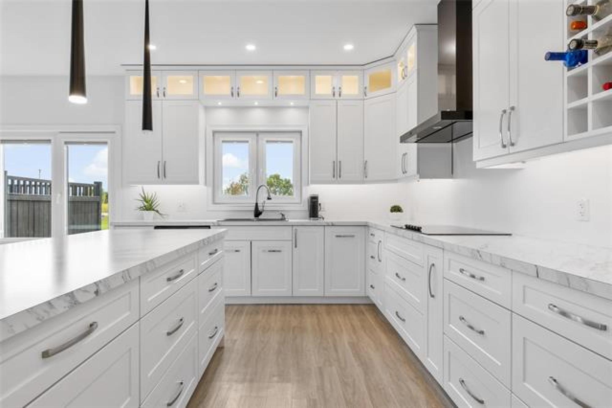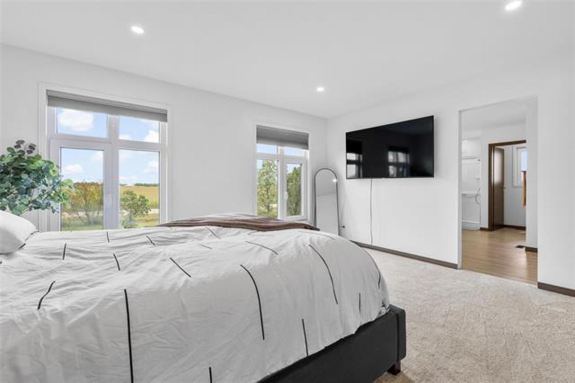 Grand 2,995 SF two-storey home with 5 bedrooms, set on a stunning 2+ acre property! This charming and elegant country home offers space to spread out and enjoy. Incredible curb appeal with stone and timberframe accents welcomes you in. Inside, the spacious living room features a cozy wood-burning fireplace with a striking brick surround, framed by large windows that flood the space with natural light. The open dining area has patio doors leading to a covered deck, making it ideal for gatherings. The massive kitchen is a true showstopper with crisp white cabinets, huge island with seating, corner pantry and pristine stainless steel appliances. A main floor bedroom offers flexible space for guests or a home office. Upstairs, the primary suite boasts a luxurious 5 piece ensuite with jetted tub and walk-in shower. Three additional bedrooms and a full bathroom provide plenty of room for family or guests. Step outside and enjoy your own private oasis. A 16x14 covered deck flows to a stamped concrete patio—perfect for relaxing evenings. The fully treed backyard with mature oaks offers privacy and plenty of room to roam. Call today to make this dream property yours!