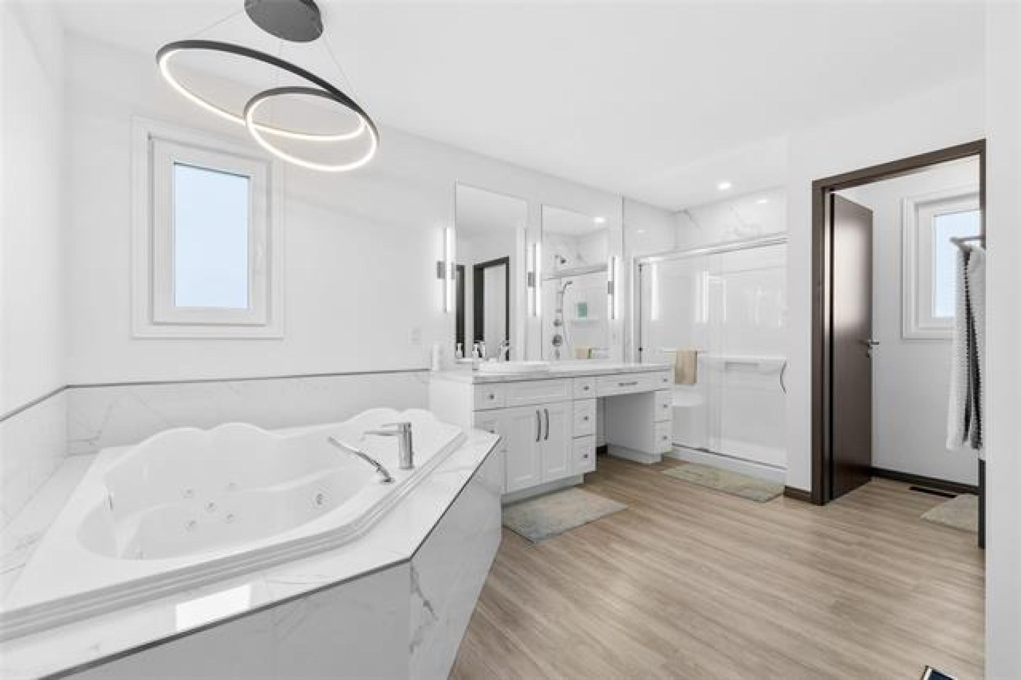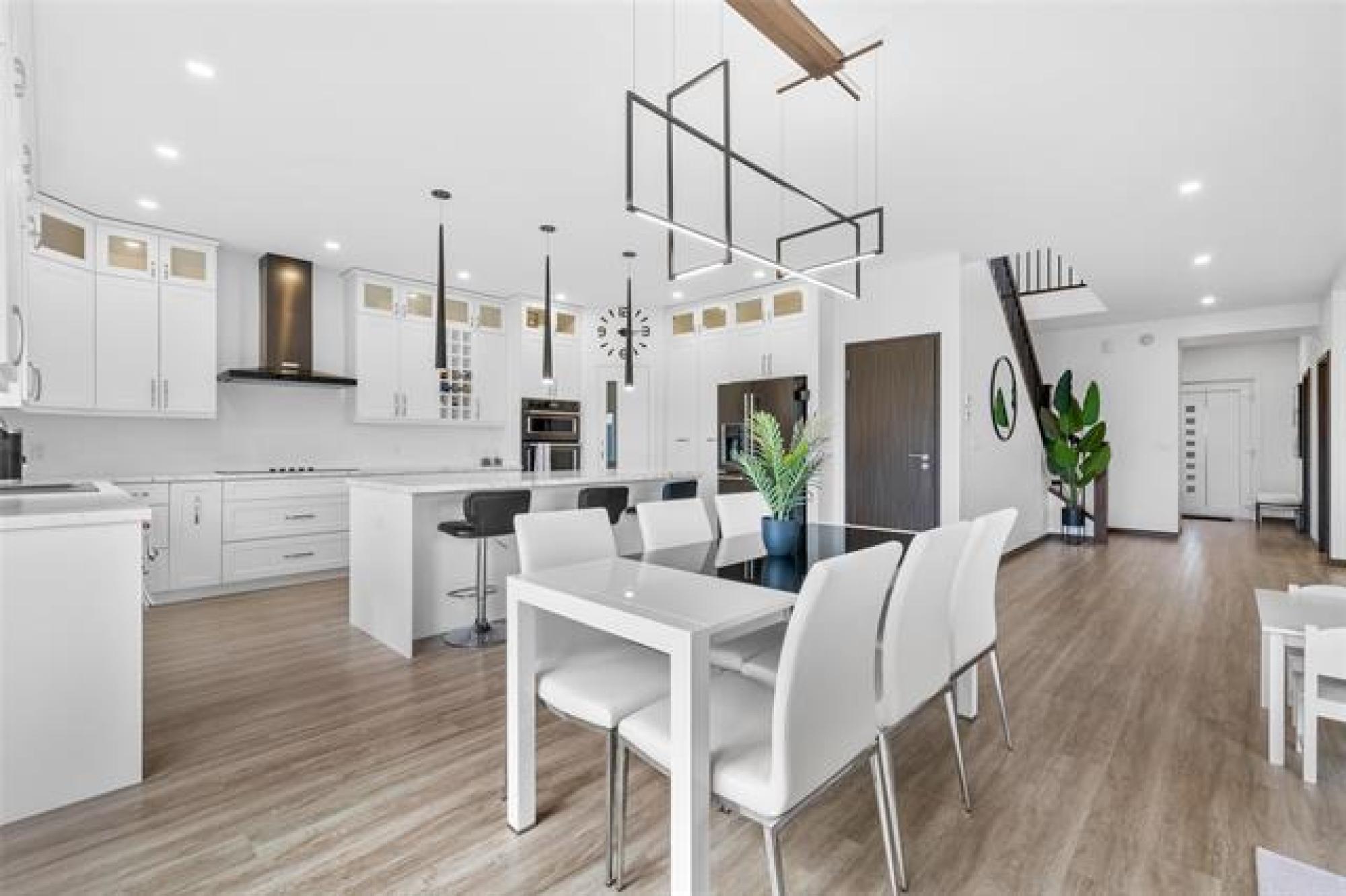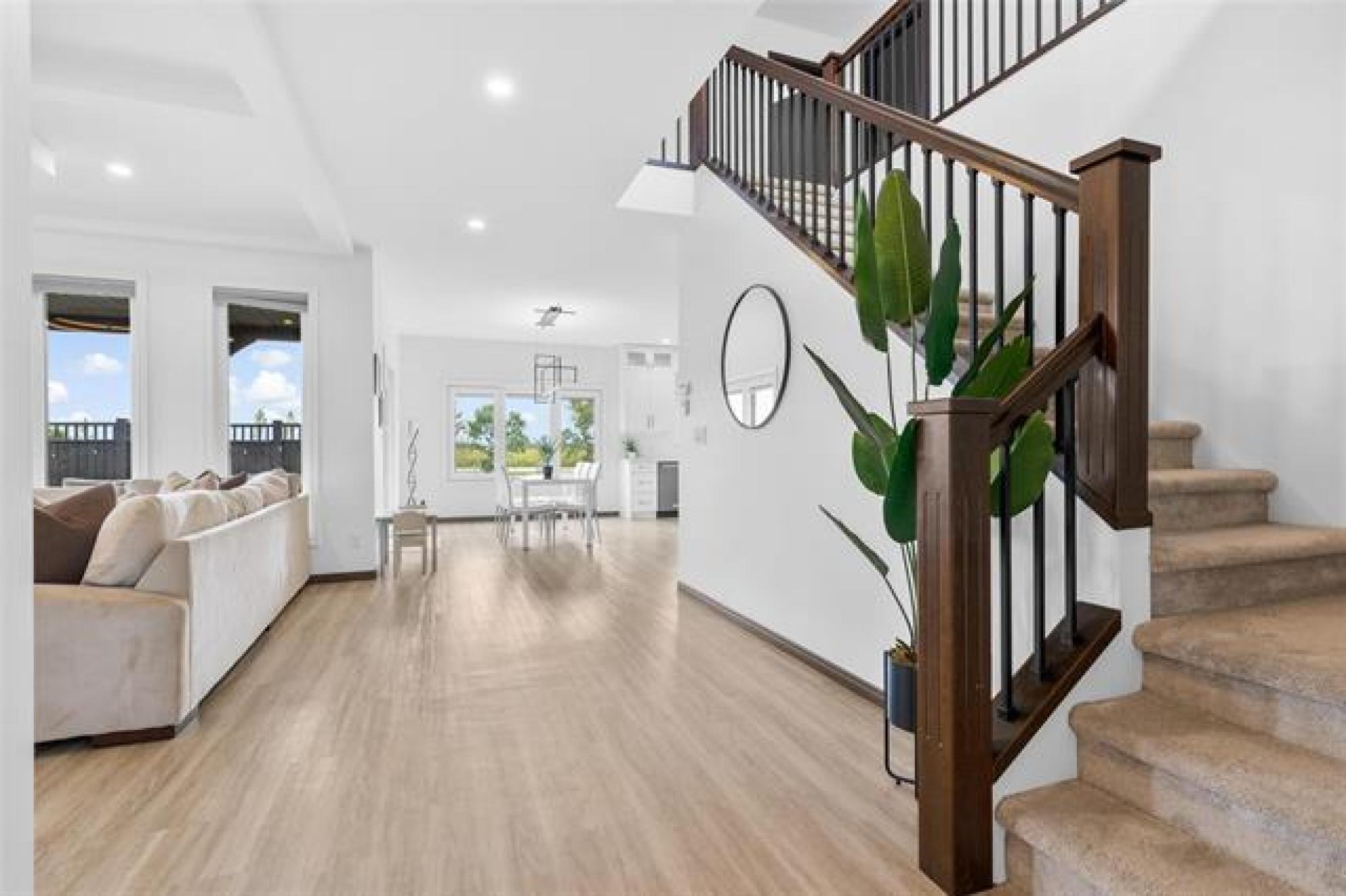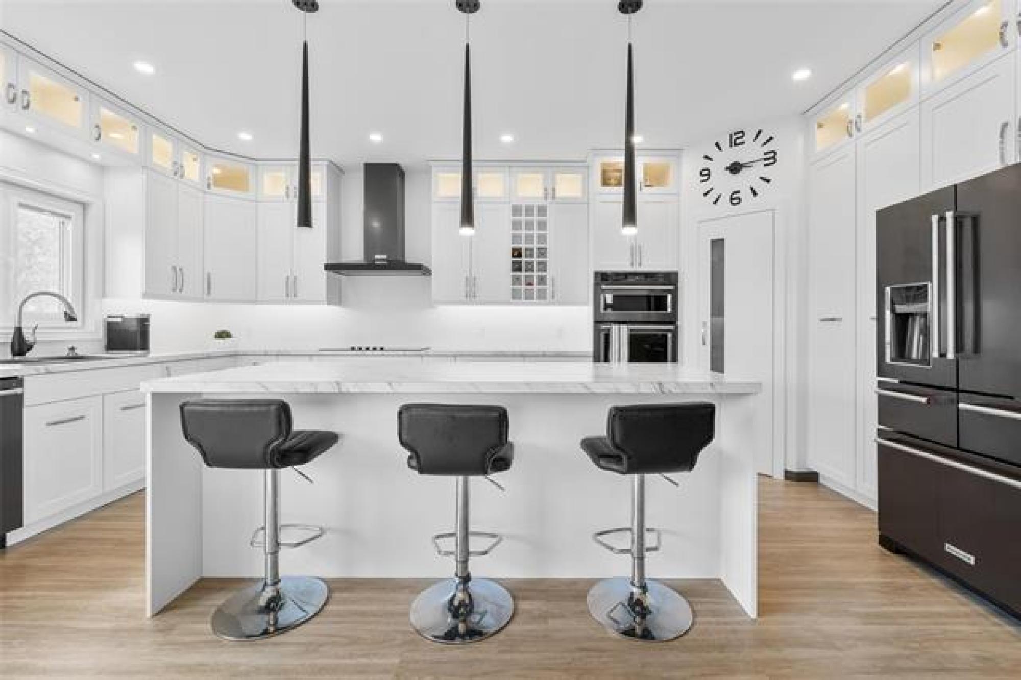 Grand 2,995 SF two-storey home with 5 bedrooms, set on a stunning 2+ acre property! This charming and elegant country home offers space to spread out and enjoy. Incredible curb appeal with stone and timberframe accents welcomes you in. Inside, the spacious living room features a cozy wood-burning fireplace with a striking brick surround, framed by large windows that flood the space with natural light. The open dining area has patio doors leading to a covered deck, making it ideal for gatherings. The massive kitchen is a true showstopper with crisp white cabinets, huge island with seating, corner pantry and pristine stainless steel appliances. A main floor bedroom offers flexible space for guests or a home office. Upstairs, the primary suite boasts a luxurious 5 piece ensuite with jetted tub and walk-in shower. Three additional bedrooms and a full bathroom provide plenty of room for family or guests. Step outside and enjoy your own private oasis. A 16x14 covered deck flows to a stamped concrete patio—perfect for relaxing evenings. The fully treed backyard with mature oaks offers privacy and plenty of room to roam. Call today to make this dream property yours!