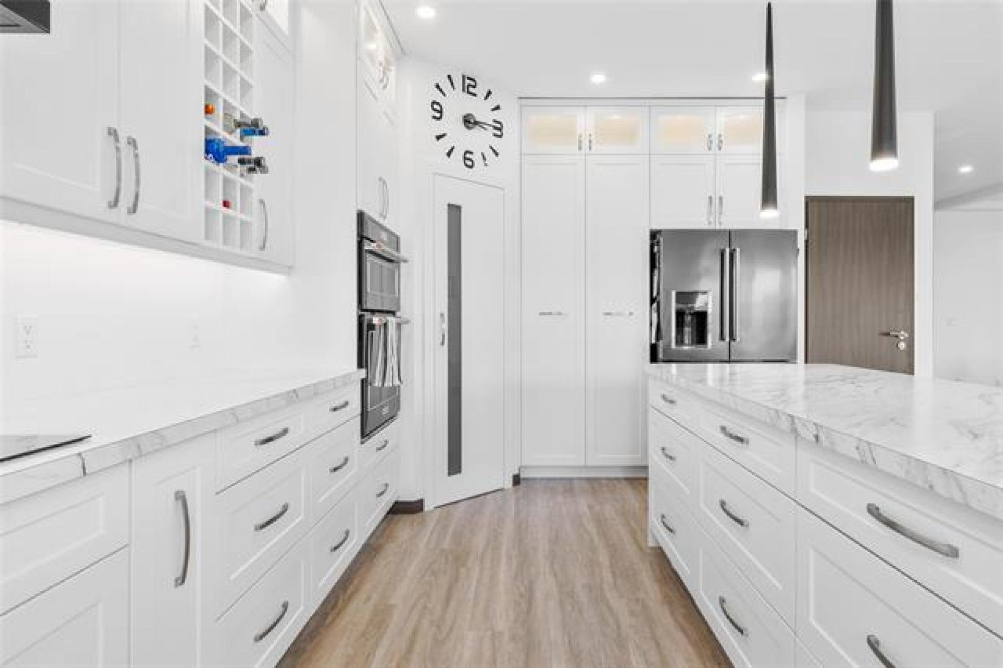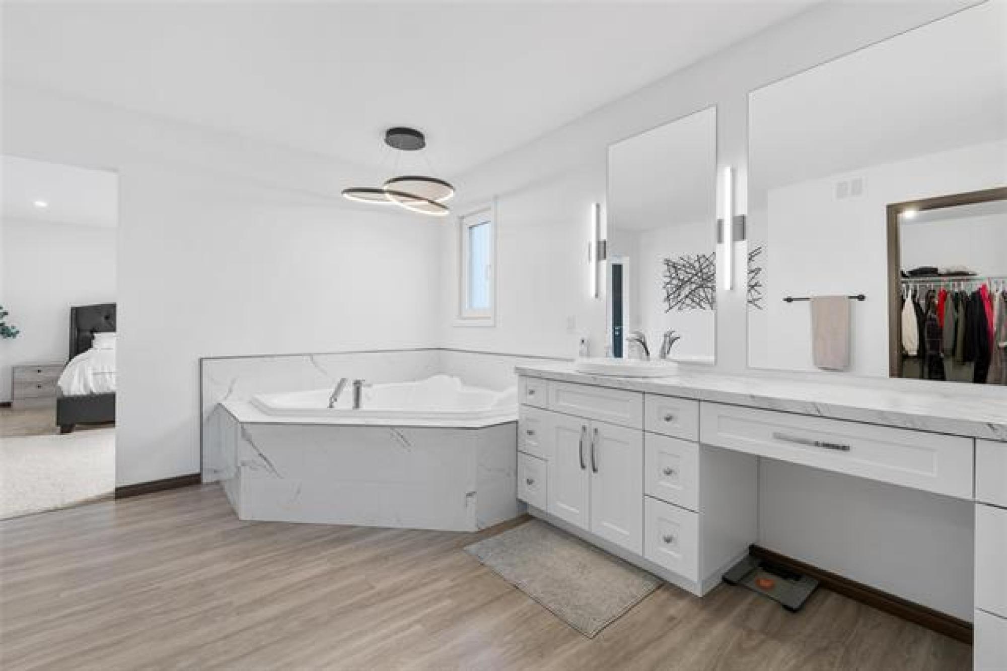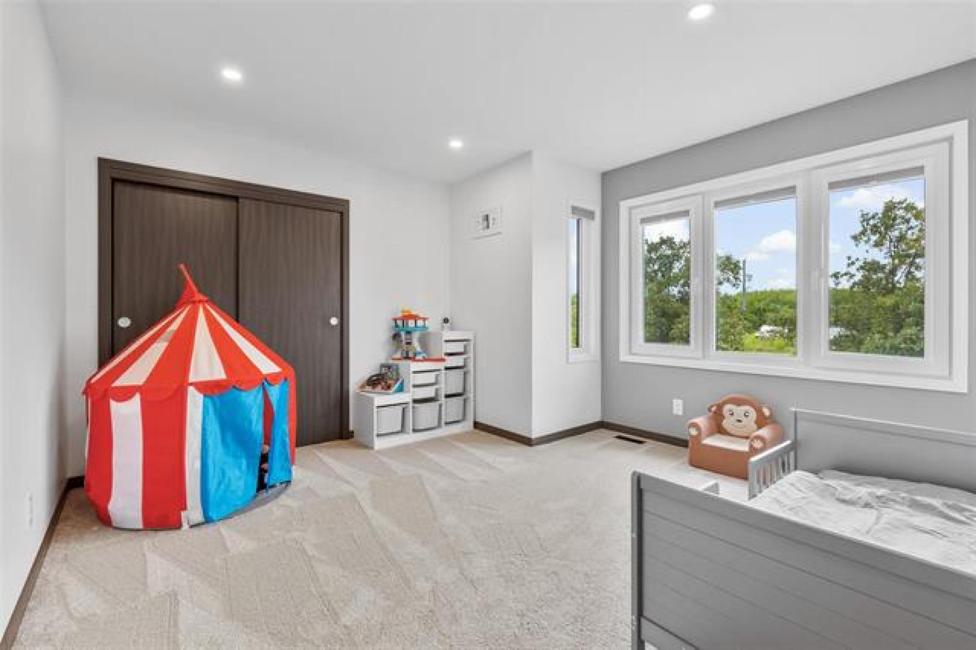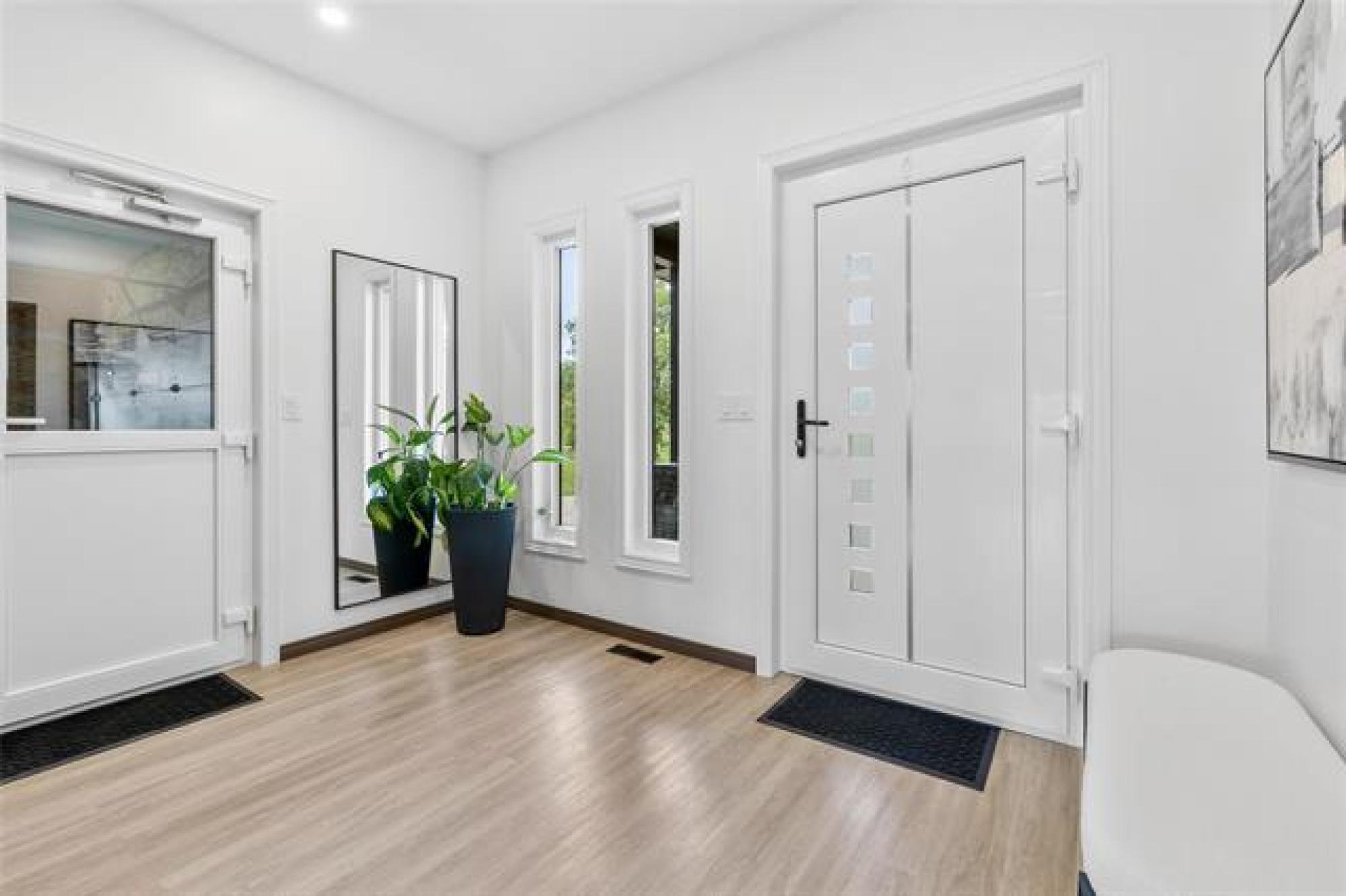Grand 2,995 SF two-storey home with 5 bedrooms, set on a stunning 2+ acre property! This charming and elegant country home offers space to spread out and enjoy. Incredible curb appeal with stone and timberframe accents welcomes you in. Inside, the spacious living room features a cozy wood-burning fireplace with a striking brick surround, framed by large windows that flood the space with natural light. The open dining area has patio doors leading to a covered deck, making it ideal for gatherings. The massive kitchen is a true showstopper with crisp white cabinets, huge island with seating, corner pantry and pristine stainless steel appliances. A main floor bedroom offers flexible space for guests or a home office. Upstairs, the primary suite boasts a luxurious 5 piece ensuite with jetted tub and walk-in shower. Three additional bedrooms and a full bathroom provide plenty of room for family or guests. Step outside and enjoy your own private oasis. A 16x14 covered deck flows to a stamped concrete patio—perfect for relaxing evenings. The fully treed backyard with mature oaks offers privacy and plenty of room to roam. Call today to make this dream property yours!