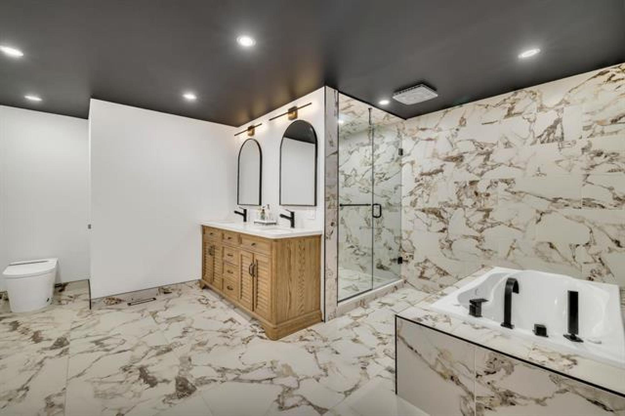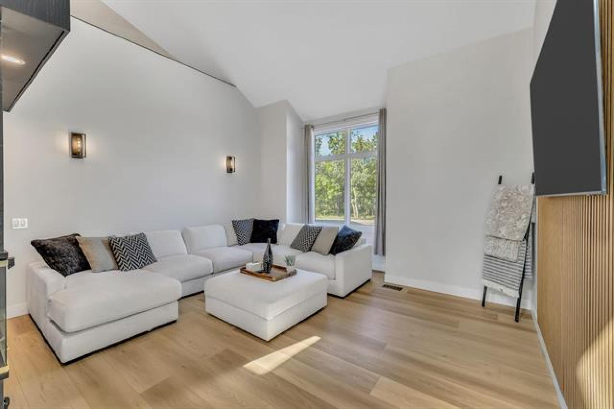 OPEN HOUSE SAT & SUN OCT 25th & 26th 2-4PM. Welcome to 14 Kingswood Crescent! Stunning, fully remodeled 3,875 sq ft two-storey home situated on a private 1.3-acre lot with sweeping river views, directly across from Kingswood Golf Course. This exceptional 5-bedroom, 4-bathroom residence blends timeless elegance with modern luxury. The main level impresses with soaring 20' vaulted ceilings & a striking double-sided Italian tile fireplace. Flooring has been updated throughout with LVP & ceramic tile. The chef-inspired kitchen features brand new white oak soft-close cabinetry, quartz countertops, upgraded lighting fixtures & appliances. The fully finished walkout basement includes finished rec-room perfect for hosting jets game's or Sunday football & built in golf simulator for year-round entertainment. Retreat to the spa-like 6-piece ensuite with heated tile floors, a walk-in double shower, jacuzzi tub, & the throne of a smart toilet. Additional highlights include a triple attached heated & insulated garage, Hardie board siding, & new shingles (2017). Every detail has been thoughtfully curated in this move-in ready masterpiece. A rare opportunity to enjoy luxury living in a premier location. Book now!