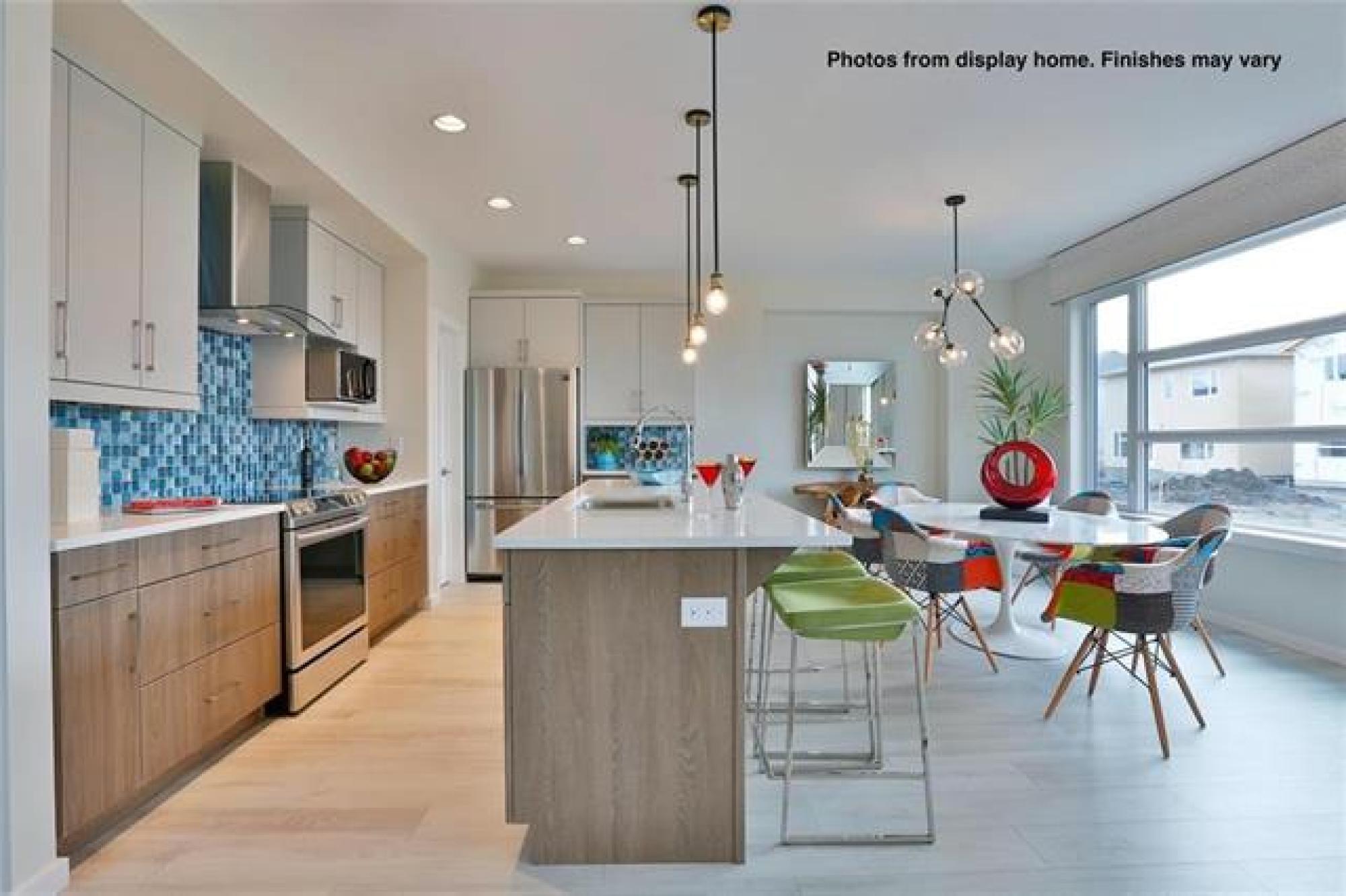 Welcome home to Oak River Meadow! This 2,069 SF home is to be built and offers 5 bedrooms or 4 bedrooms+Loft and 3 full bathrooms. Features include a concrete piled foundation and an oversized double attached garage 24x22 (New Area Promo). The thoughtfully designed floor plan with 9' ceilings on the main floor (Spring Promo) includes a welcoming front foyer with closet, plus an open-concept kitchen and dining area with garden door access to your future deck. The main floor bedroom or office features a pocket door with direct access to a full bathroom (w/ 5' shower c/w 1 seat). The kitchen showcases a 9' island, quartz countertops (New Area Promo), 2 sets pot/pan drawers - one each side of stove, SS dishwasher, Soho-style cabinetry with 41" upper cabinets and soft-close drawers, LED disc + 3 pendant lights and a walk-in pantry. Upstairs offers 4 bedrooms, or the option to convert one bedroom into a loft, plus 2 full bathrooms including the primary ensuite with shower (Spring Promo), and a spacious laundry room with linen storage. Purchasers may still choose interior and exterior colours. Photos are from a similar model and may show optional upgrades.