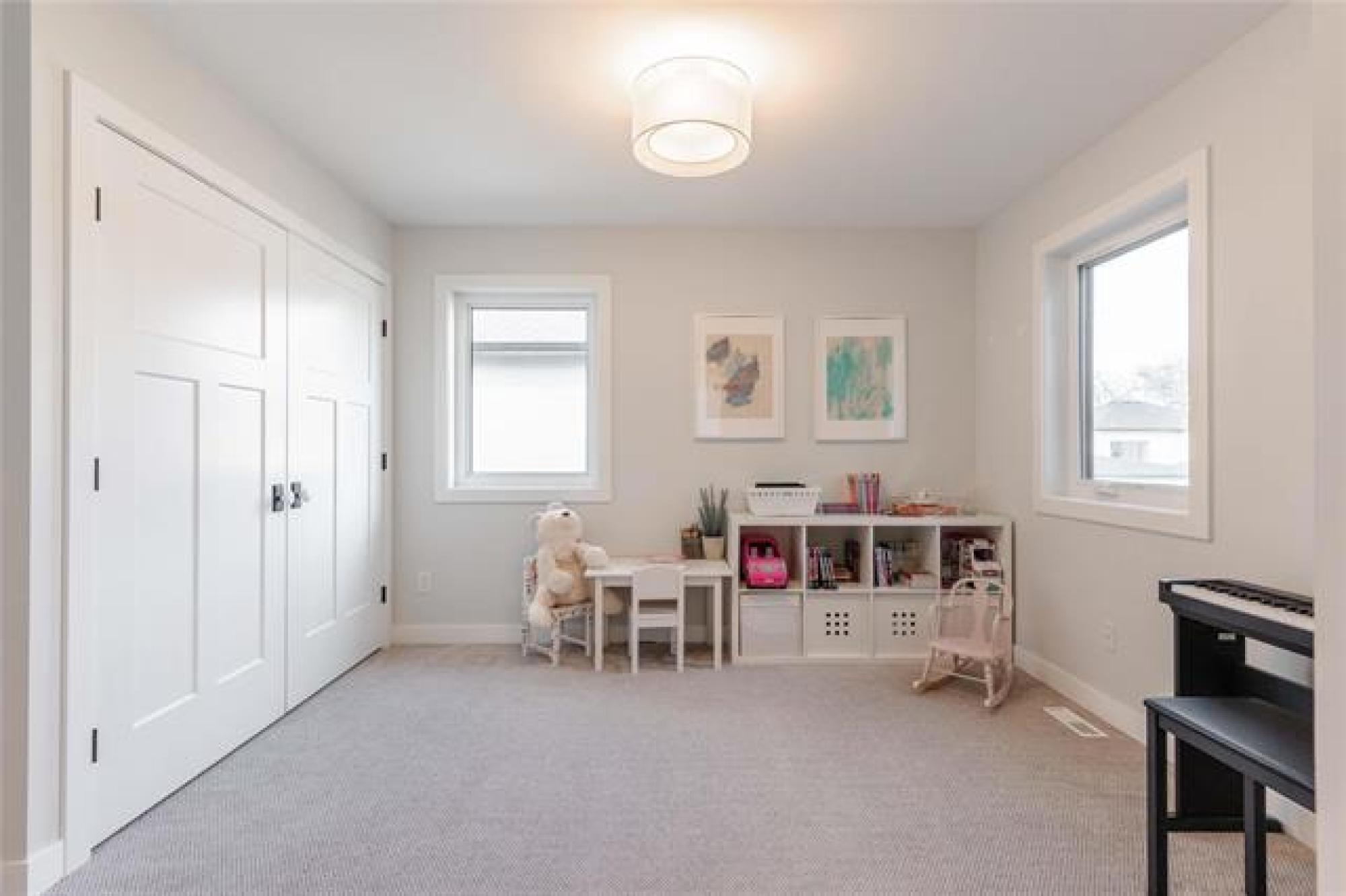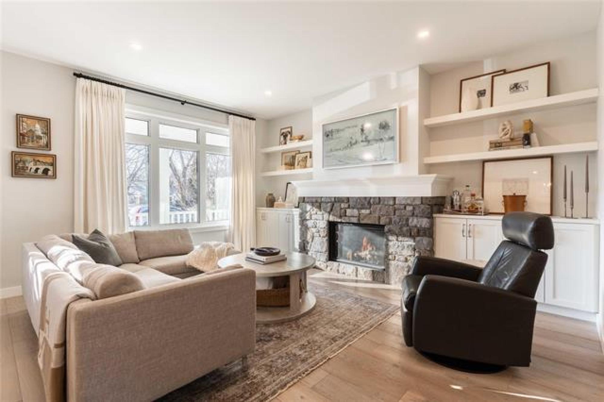 S/S Tuesday Dec 9th, offers Tuesday Dec 16th. Stunning custom-built 2019 two-storey in the heart of River Heights, blending modern design with timeless character. A welcoming front porch with swing set the tone. Inside, 9 ft ceilings and engineered hardwoods lead to a warm living room with gas fireplace and custom built-ins. The showpiece kitchen features quartz counters, solid wood cabinetry, an 8-ft island, Wolf 48" gas range with double oven, custom pantry and Sonos speakers. The dining area is bright and airy with triple-pane windows and custom drapery. A stylish 2-pc bath, well-appointed mudroom with built-ins, dog gate and garage access complete the main floor. Enjoy the beautiful 3-season sunroom with wood-burning fireplace. Upstairs offers a serene primary suite with walk-in closet and spa ensuite, plus two large bedrooms, a flex room or 5th bedroom, 5-pc bath and laundry room. The finished basement adds a spacious rec room with bar, bedroom and full bath. Built on piles with dual-zone heating and cooling, HRV, 200-amp service and an insulated double garage (wired for heat) with overhead storage. Cedar deck, dog run and cedar privacy fencing. A move-in-ready, truly exceptional family home.