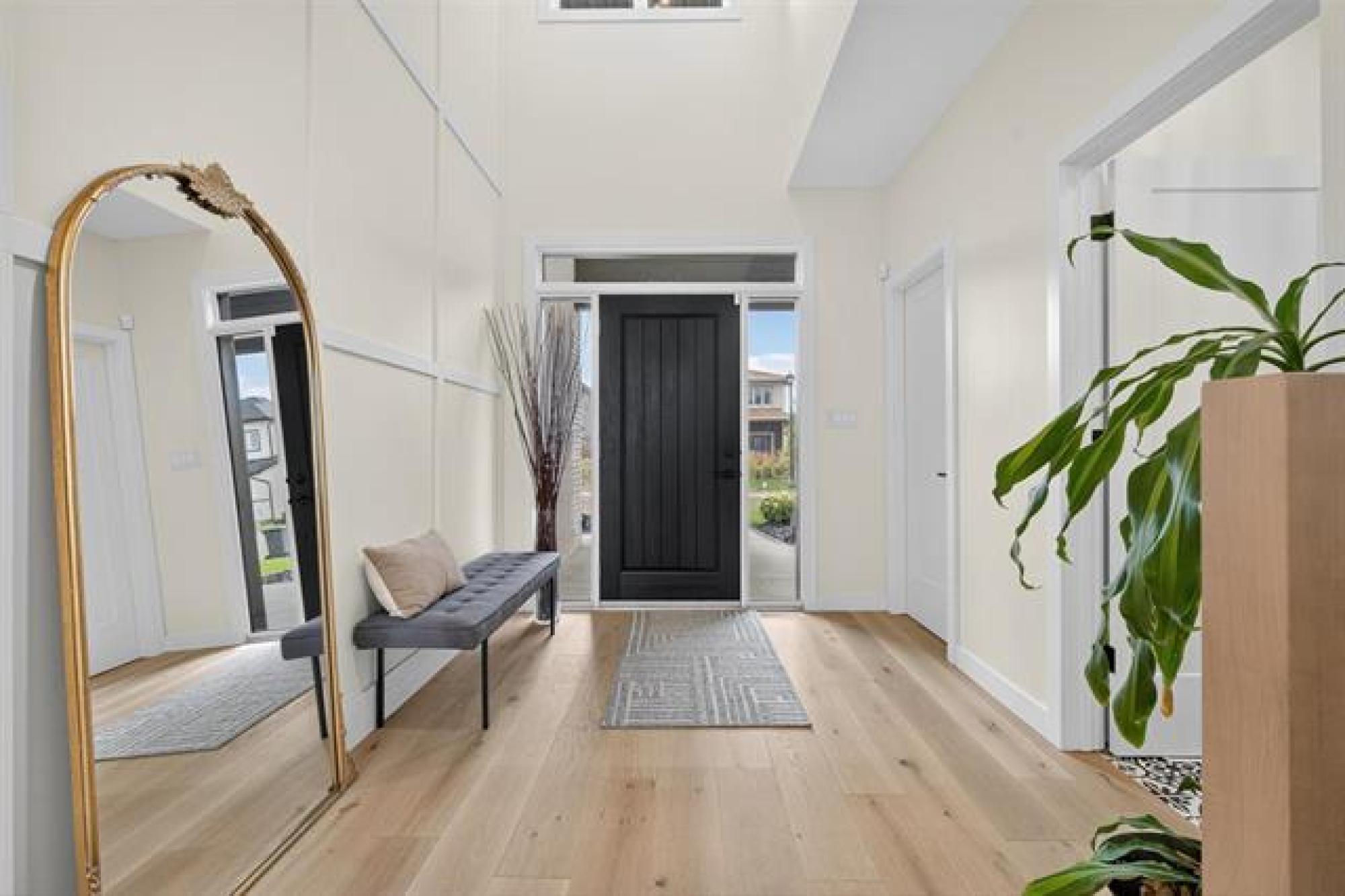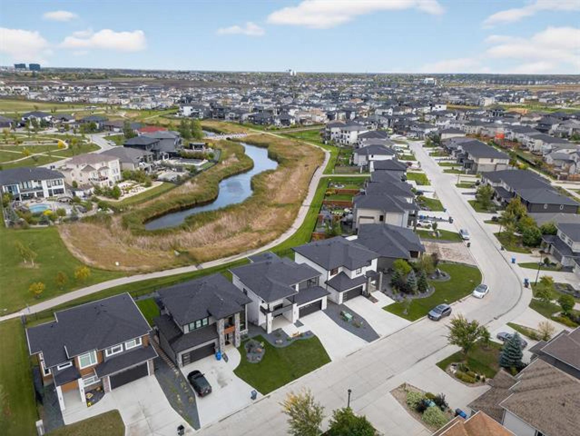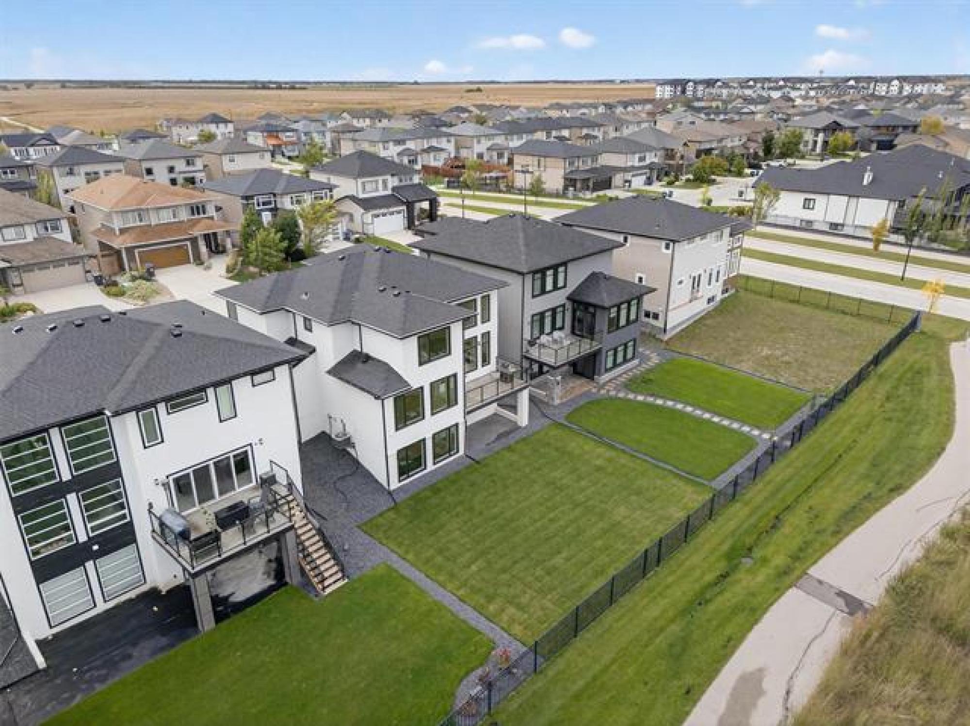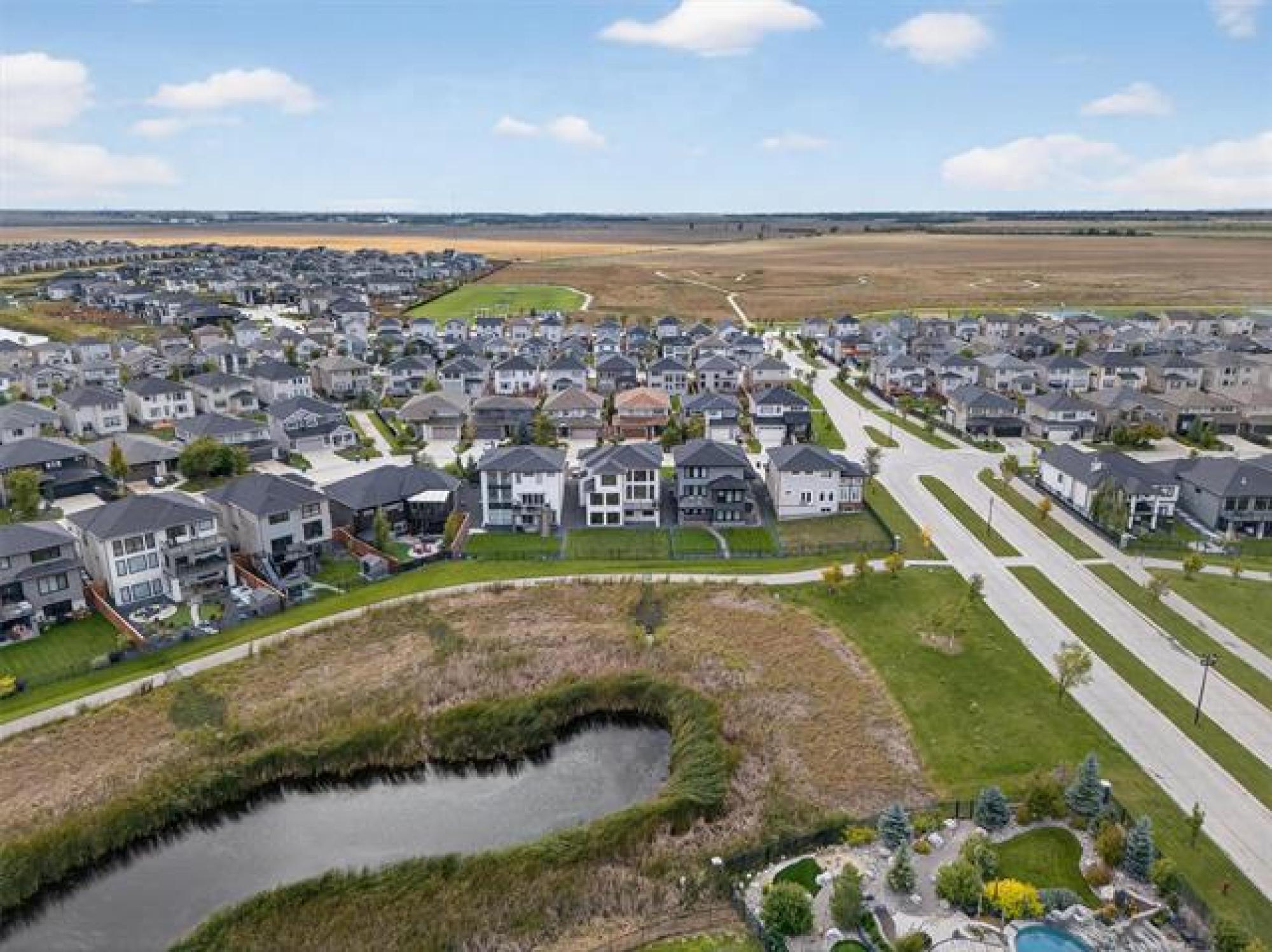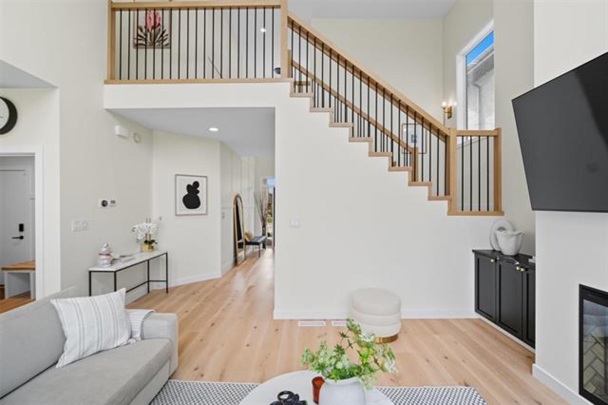 Welcome to this stunning two-storey home with a fully finished walkout basement, designed to impress at every turn. Step inside to soaring 18-ft ceilings with a wall of windows that flood the main living area with natural light. The chef’s kitchen is a true showpiece, featuring quartz countertops, custom pantry cabinetry, and a double fridge/freezer — perfectly designed for entertaining and everyday living. Upstairs, you’ll find four spacious bedrooms, including a luxurious primary suite with a spa-inspired ensuite offering a stand-alone tub, double sinks, and a glass shower. The large walk-in closet is thoughtfully outfitted with custom organizers.The walkout lower level extends your living space with an additional bedroom and bathroom, plus a generous rec room with a striking feature wall and wall of windows with views of the lake — perfect for family gatherings or quiet nights in. This home seamlessly blends style, comfort, and function, making it the perfect choice for your next chapter.