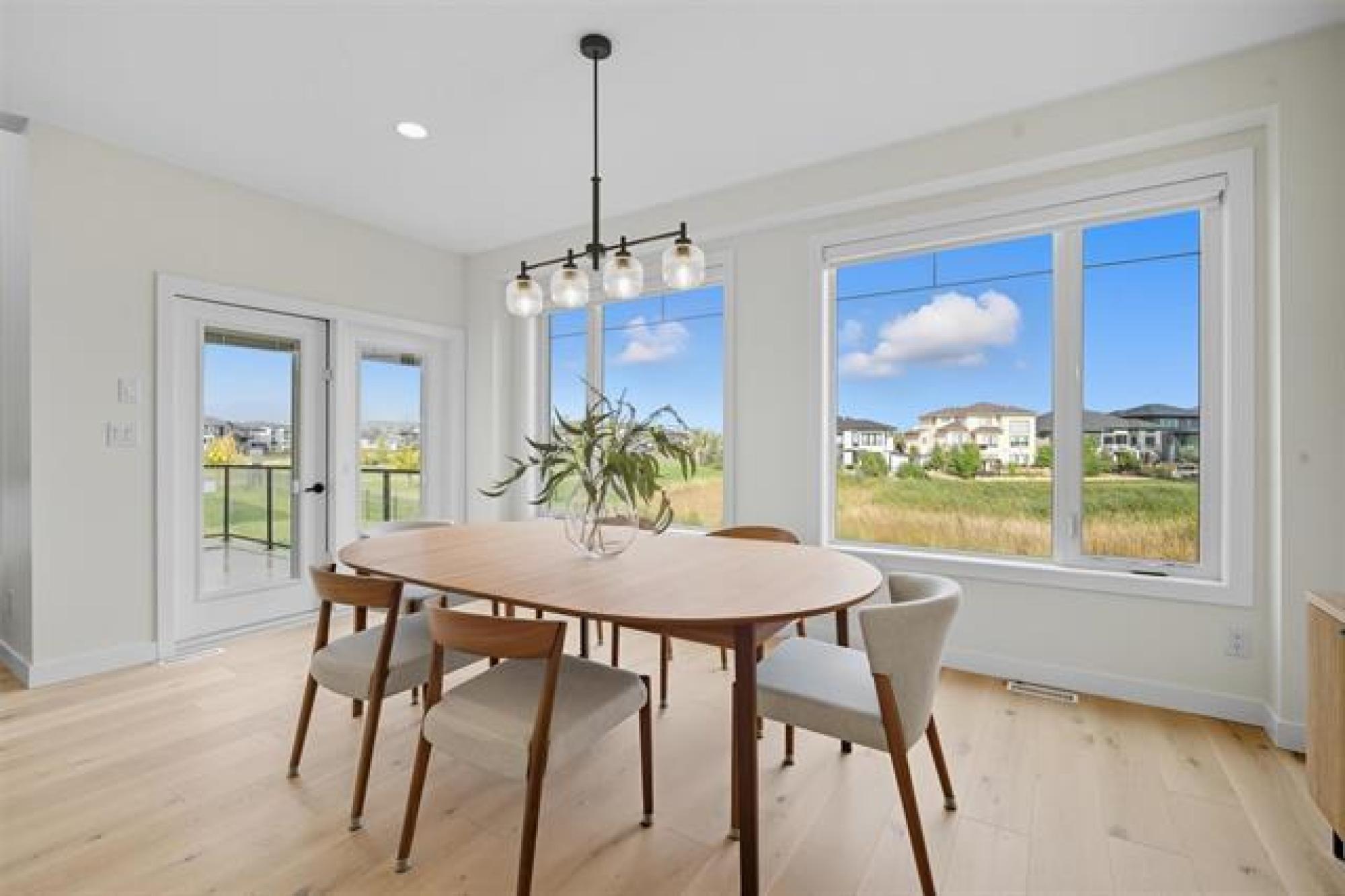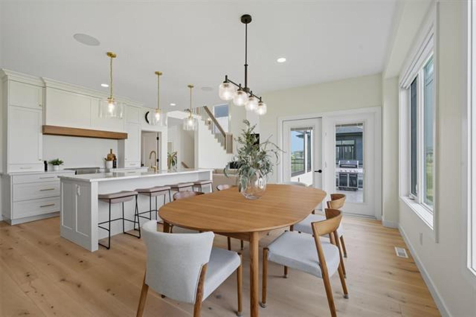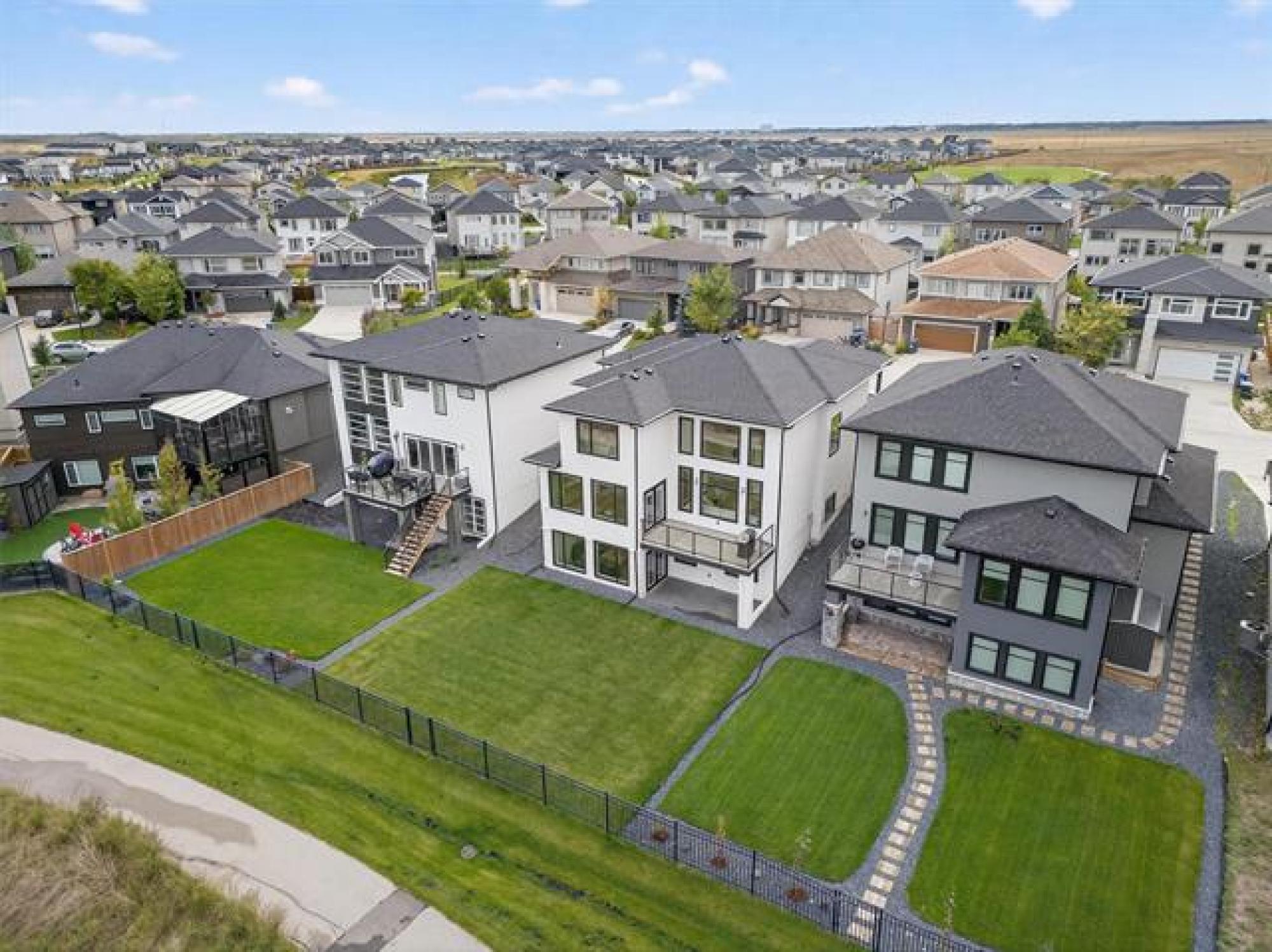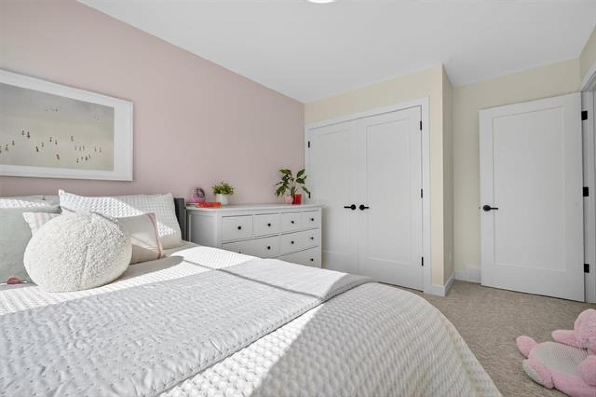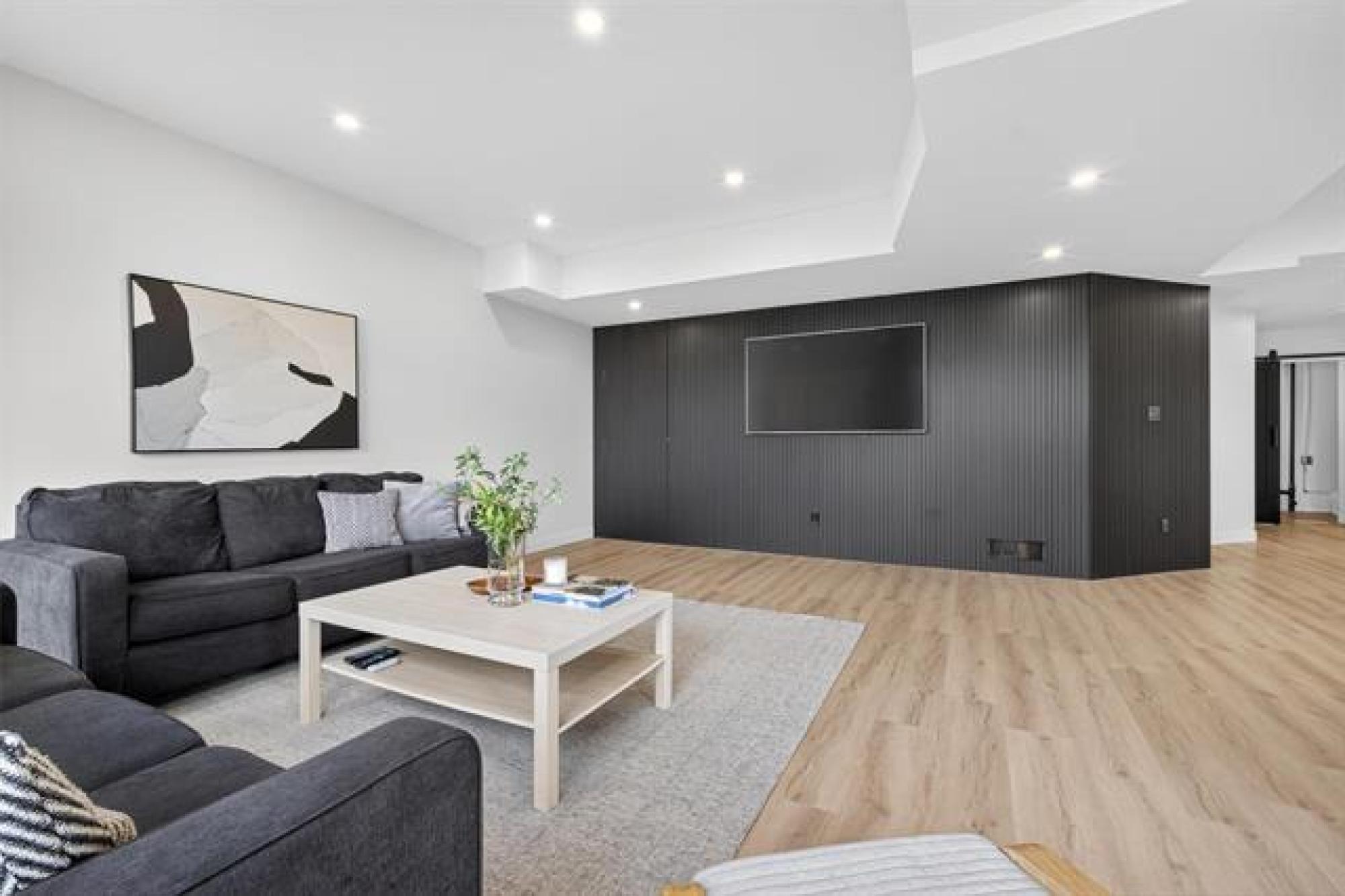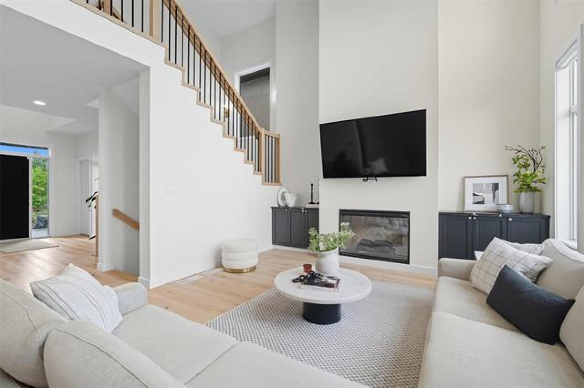 Welcome to this stunning two-storey home with a fully finished walkout basement, designed to impress at every turn. Step inside to soaring 18-ft ceilings with a wall of windows that flood the main living area with natural light. The chef’s kitchen is a true showpiece, featuring quartz countertops, custom pantry cabinetry, and a double fridge/freezer — perfectly designed for entertaining and everyday living. Upstairs, you’ll find four spacious bedrooms, including a luxurious primary suite with a spa-inspired ensuite offering a stand-alone tub, double sinks, and a glass shower. The large walk-in closet is thoughtfully outfitted with custom organizers.The walkout lower level extends your living space with an additional bedroom and bathroom, plus a generous rec room with a striking feature wall and wall of windows with views of the lake — perfect for family gatherings or quiet nights in. This home seamlessly blends style, comfort, and function, making it the perfect choice for your next chapter.