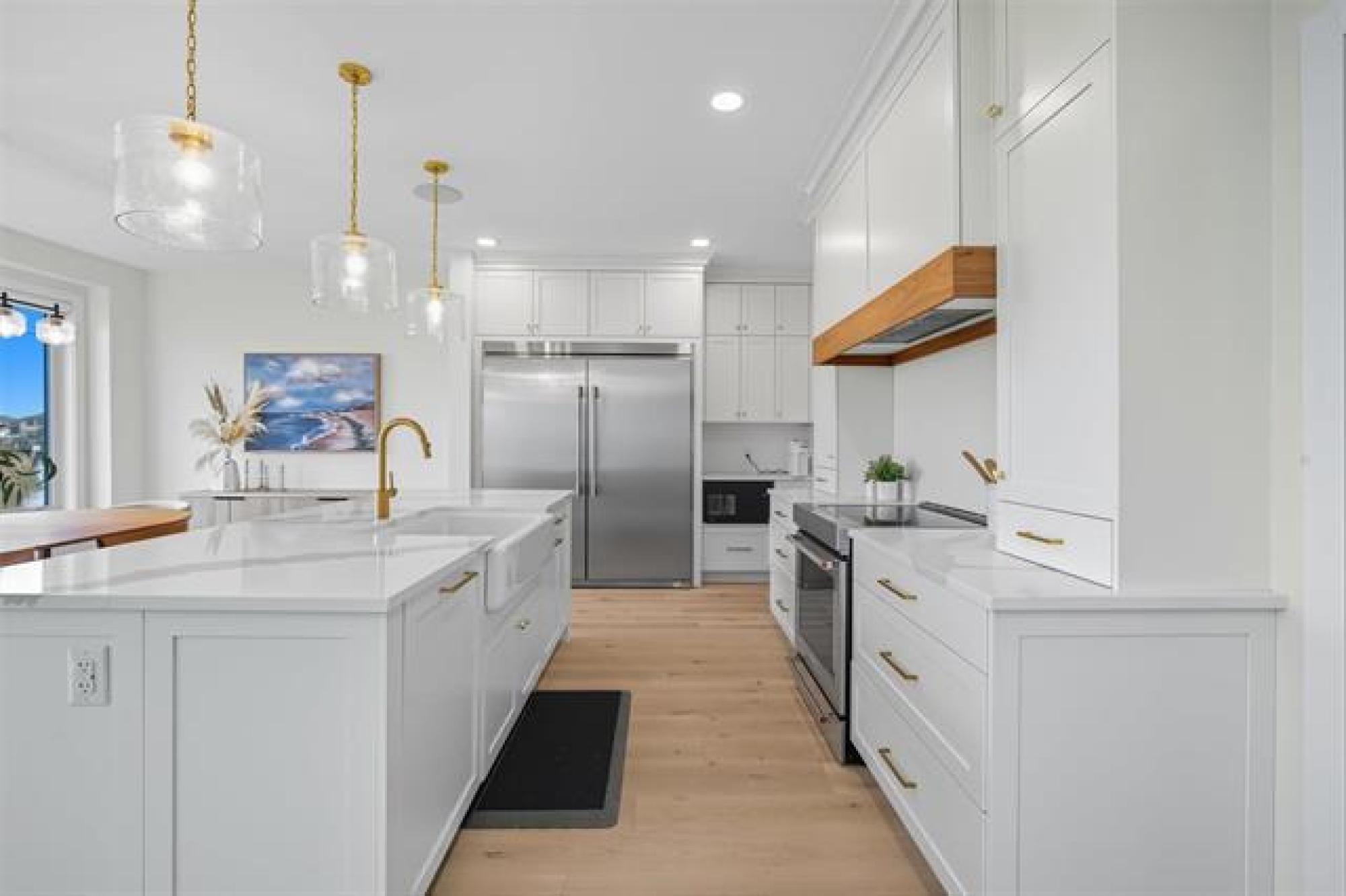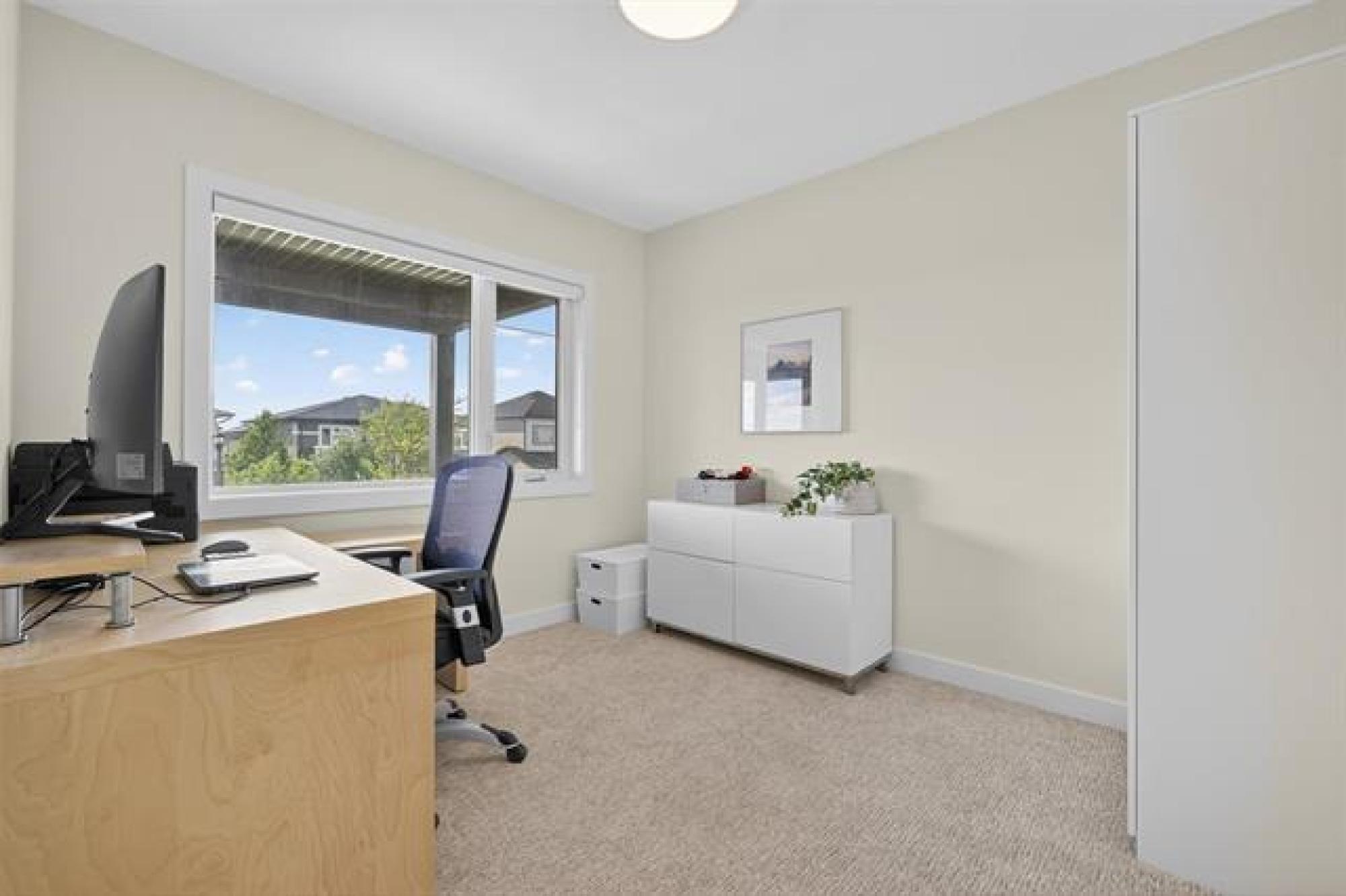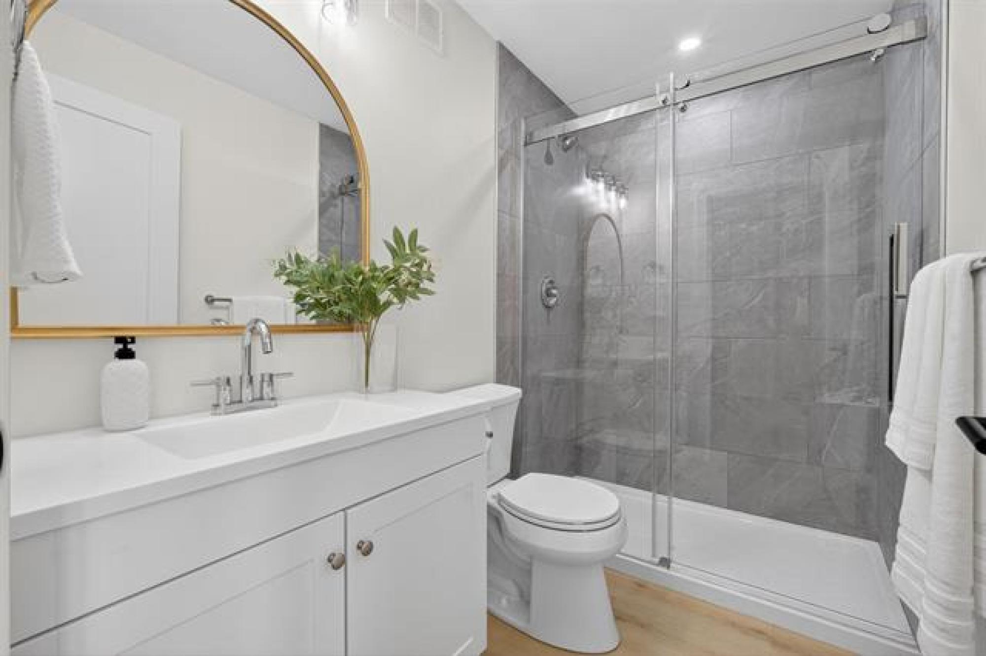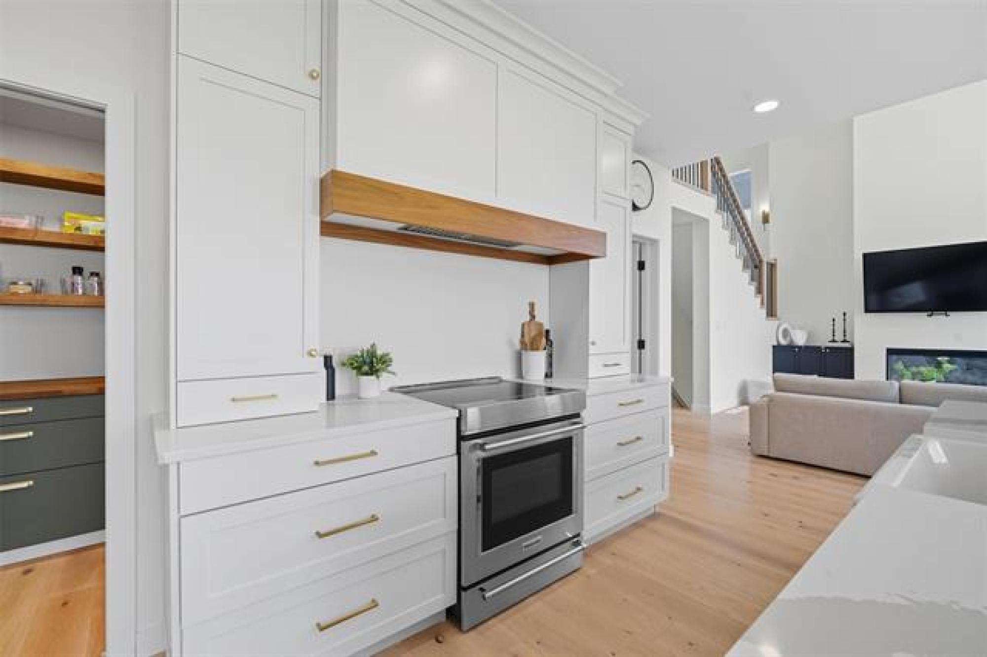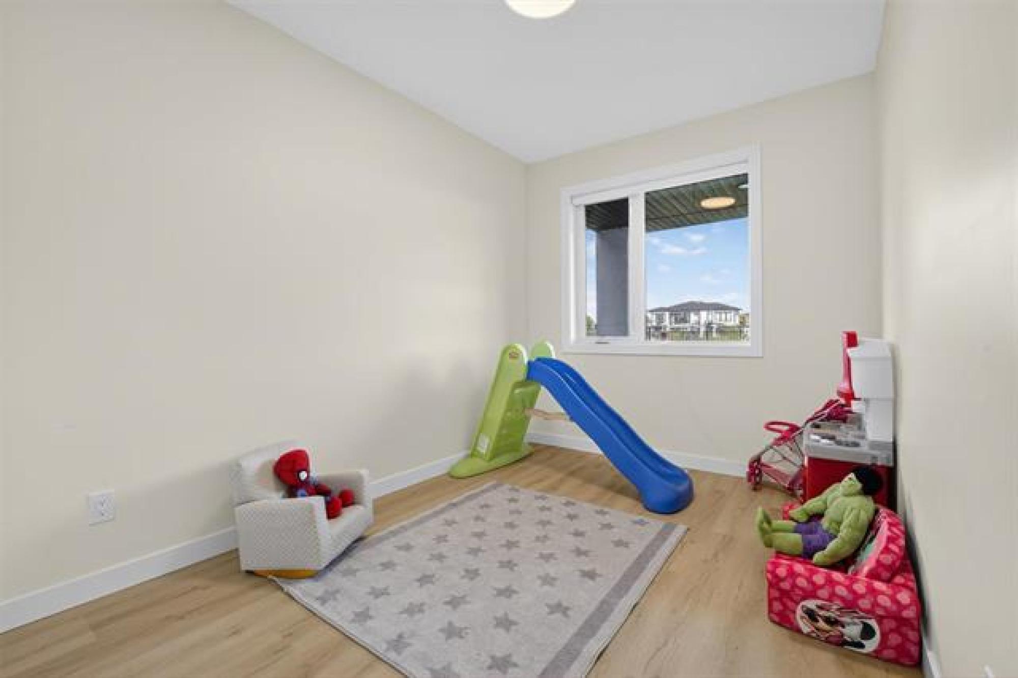 Welcome to this stunning two-storey home with a fully finished walkout basement, designed to impress at every turn. Step inside to soaring 18-ft ceilings with a wall of windows that flood the main living area with natural light. The chef’s kitchen is a true showpiece, featuring quartz countertops, custom pantry cabinetry, and a double fridge/freezer — perfectly designed for entertaining and everyday living. Upstairs, you’ll find four spacious bedrooms, including a luxurious primary suite with a spa-inspired ensuite offering a stand-alone tub, double sinks, and a glass shower. The large walk-in closet is thoughtfully outfitted with custom organizers.The walkout lower level extends your living space with an additional bedroom and bathroom, plus a generous rec room with a striking feature wall and wall of windows with views of the lake — perfect for family gatherings or quiet nights in. This home seamlessly blends style, comfort, and function, making it the perfect choice for your next chapter.
