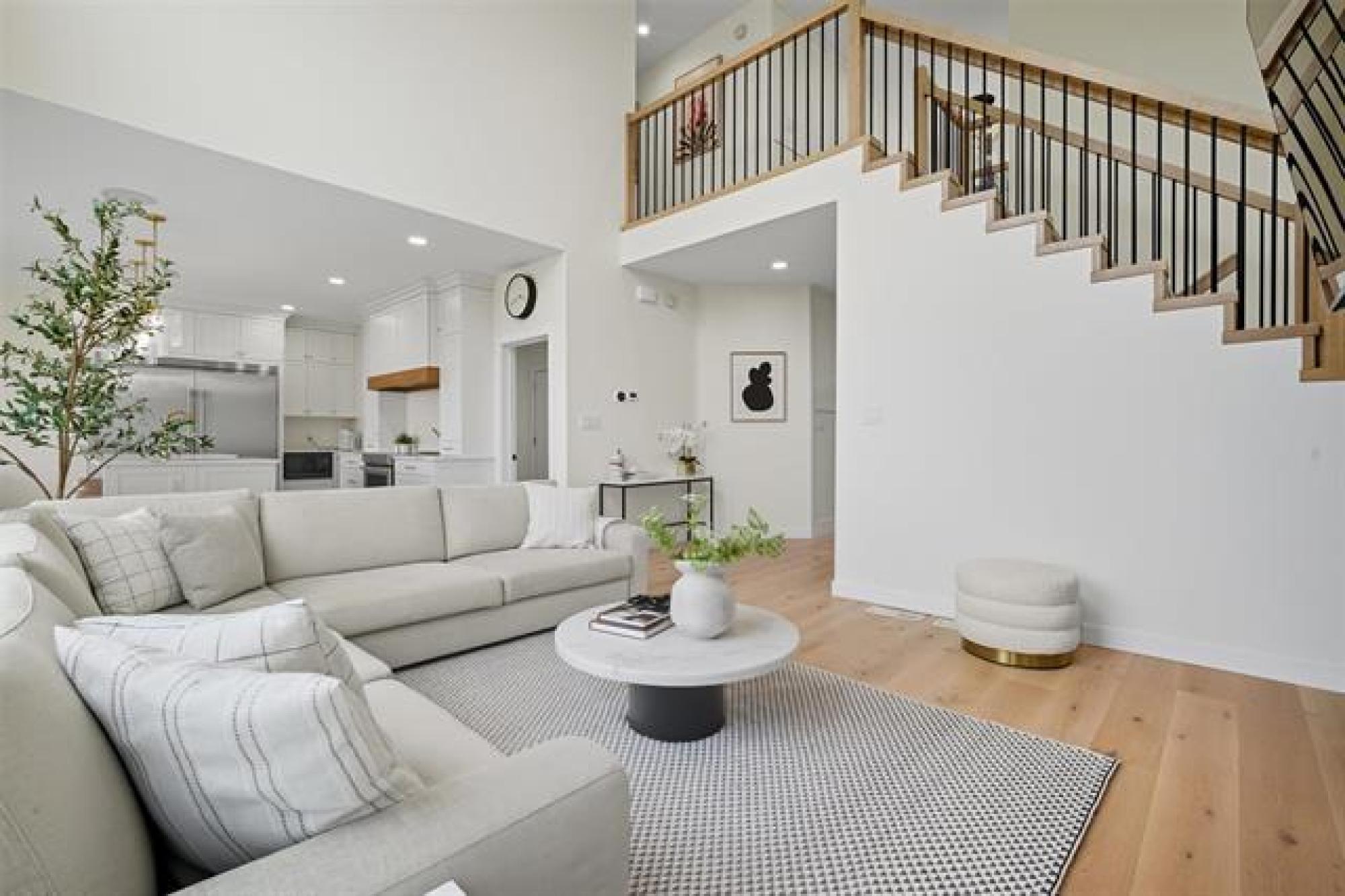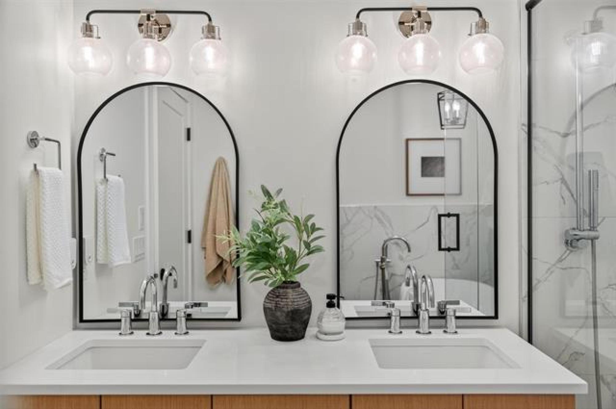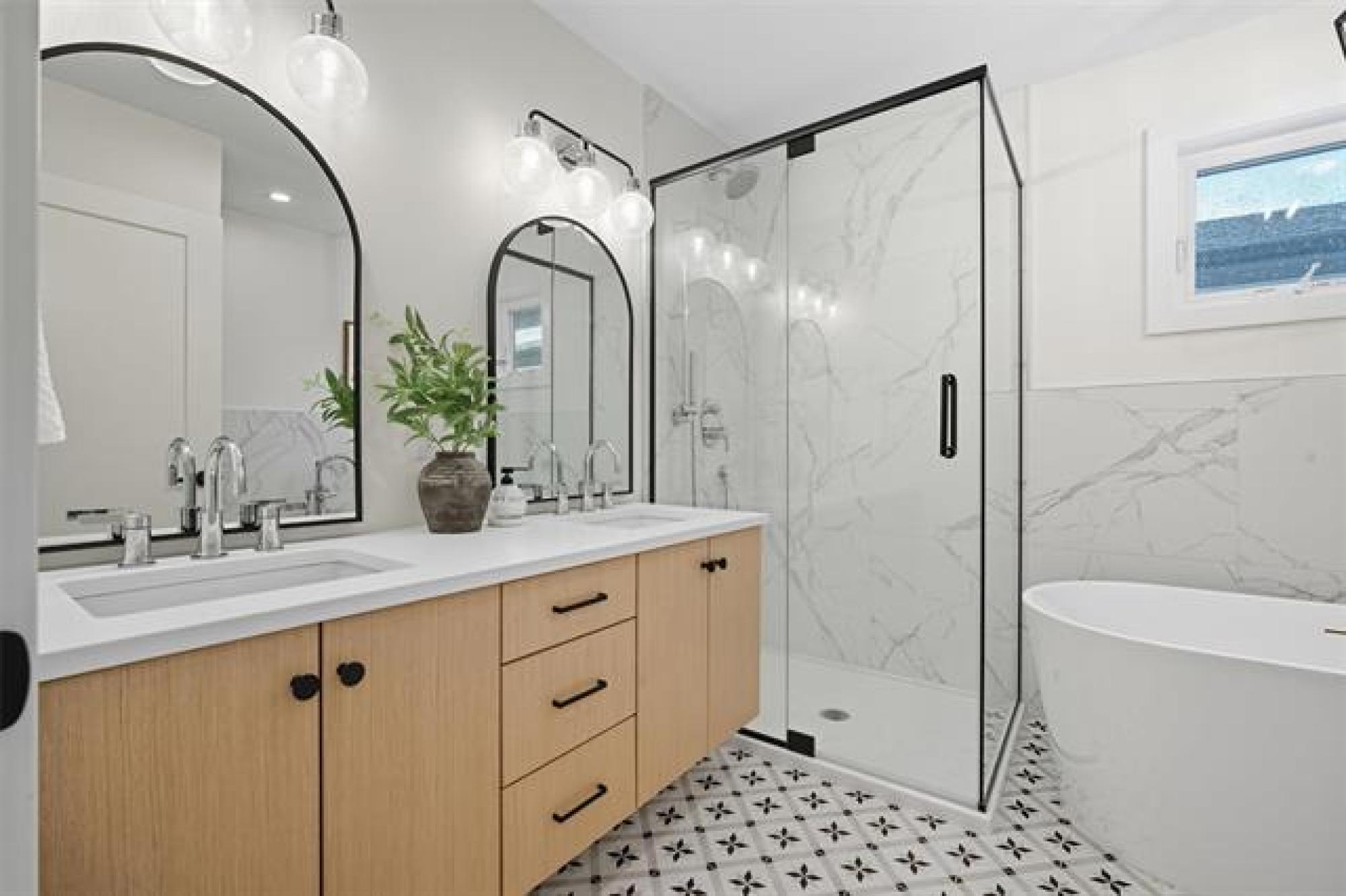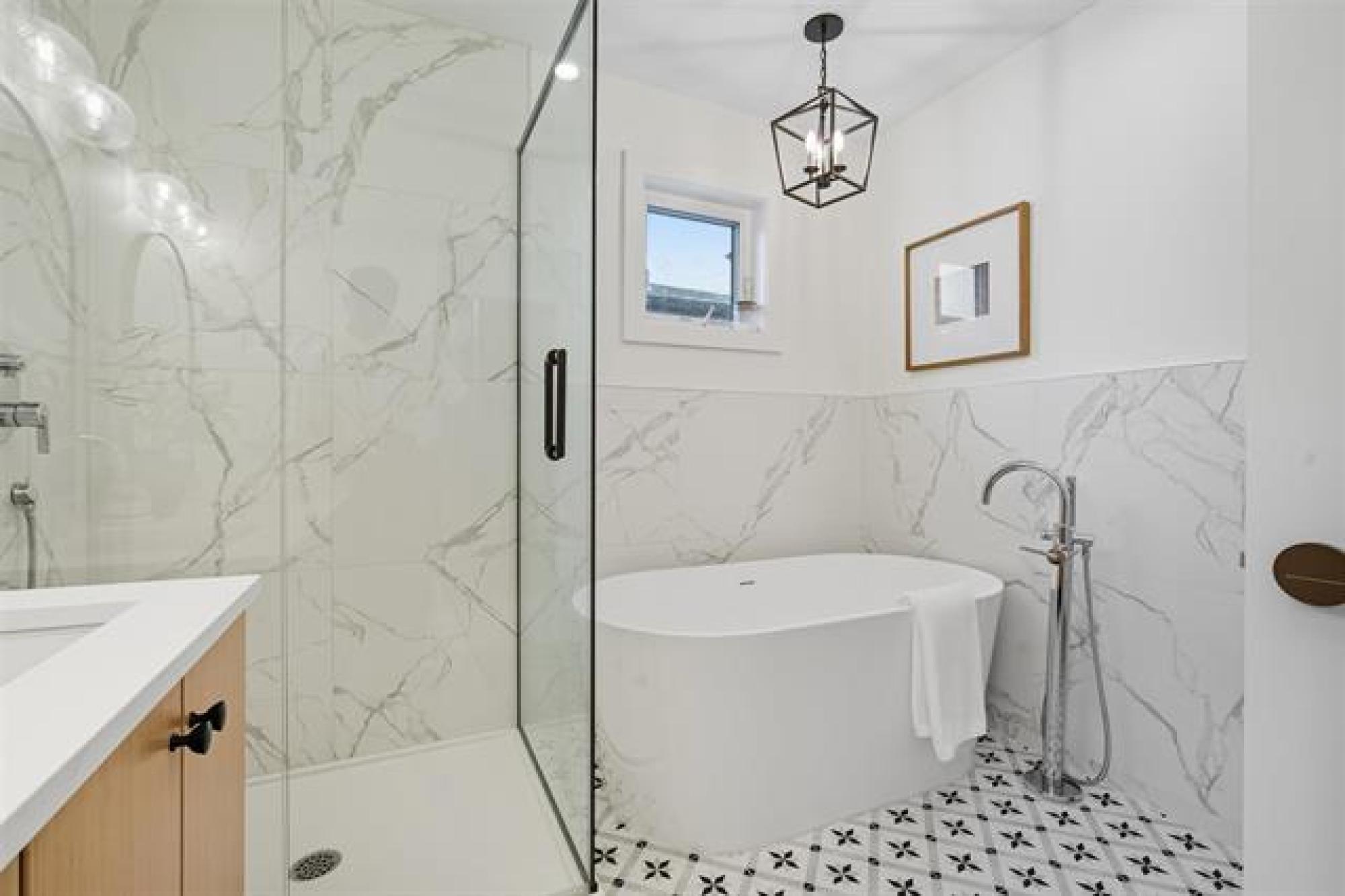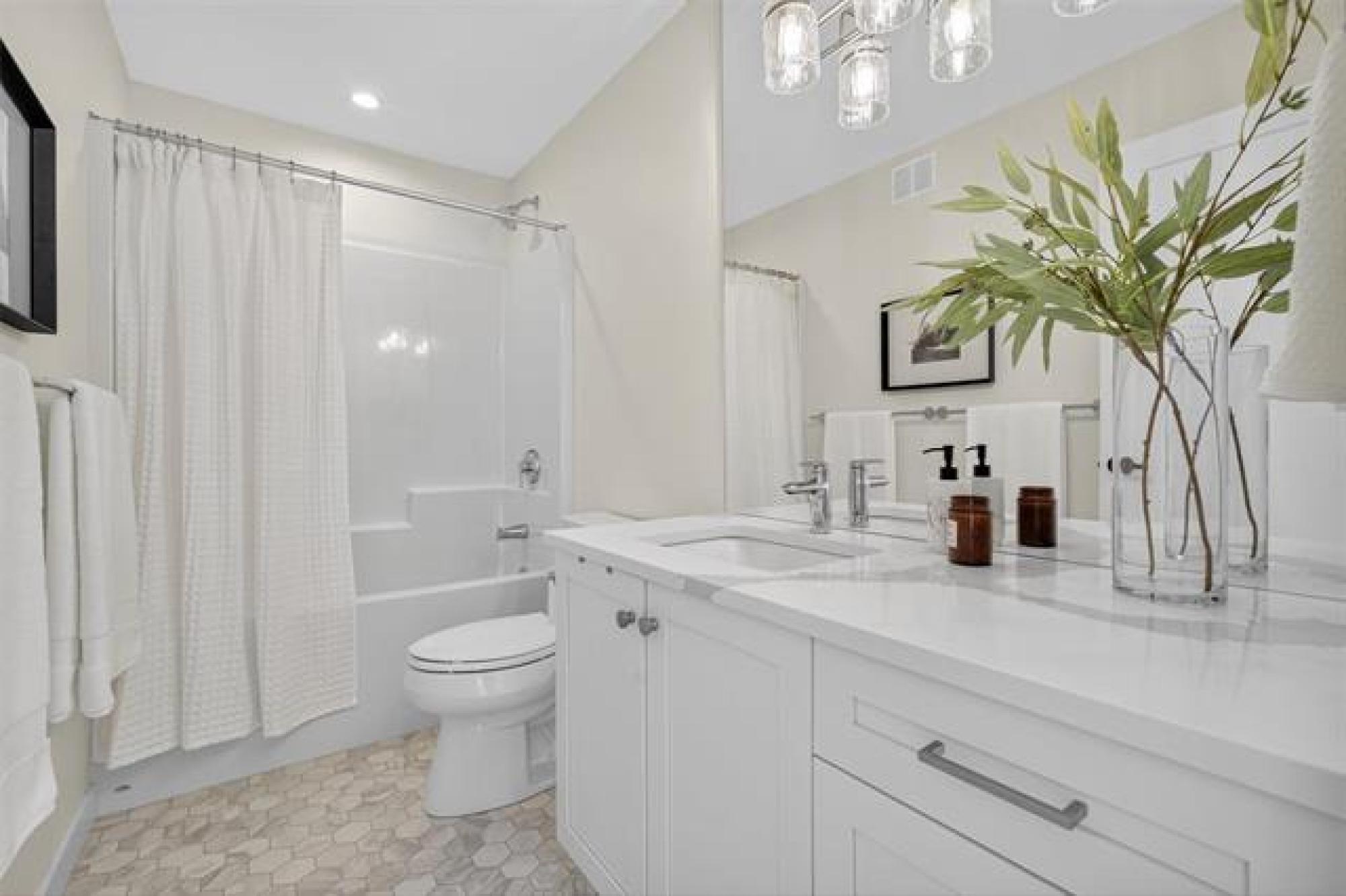 Welcome to this stunning two-storey home with a fully finished walkout basement, designed to impress at every turn. Step inside to soaring 18-ft ceilings with a wall of windows that flood the main living area with natural light. The chef’s kitchen is a true showpiece, featuring quartz countertops, custom pantry cabinetry, and a double fridge/freezer — perfectly designed for entertaining and everyday living. Upstairs, you’ll find four spacious bedrooms, including a luxurious primary suite with a spa-inspired ensuite offering a stand-alone tub, double sinks, and a glass shower. The large walk-in closet is thoughtfully outfitted with custom organizers.The walkout lower level extends your living space with an additional bedroom and bathroom, plus a generous rec room with a striking feature wall and wall of windows with views of the lake — perfect for family gatherings or quiet nights in. This home seamlessly blends style, comfort, and function, making it the perfect choice for your next chapter.