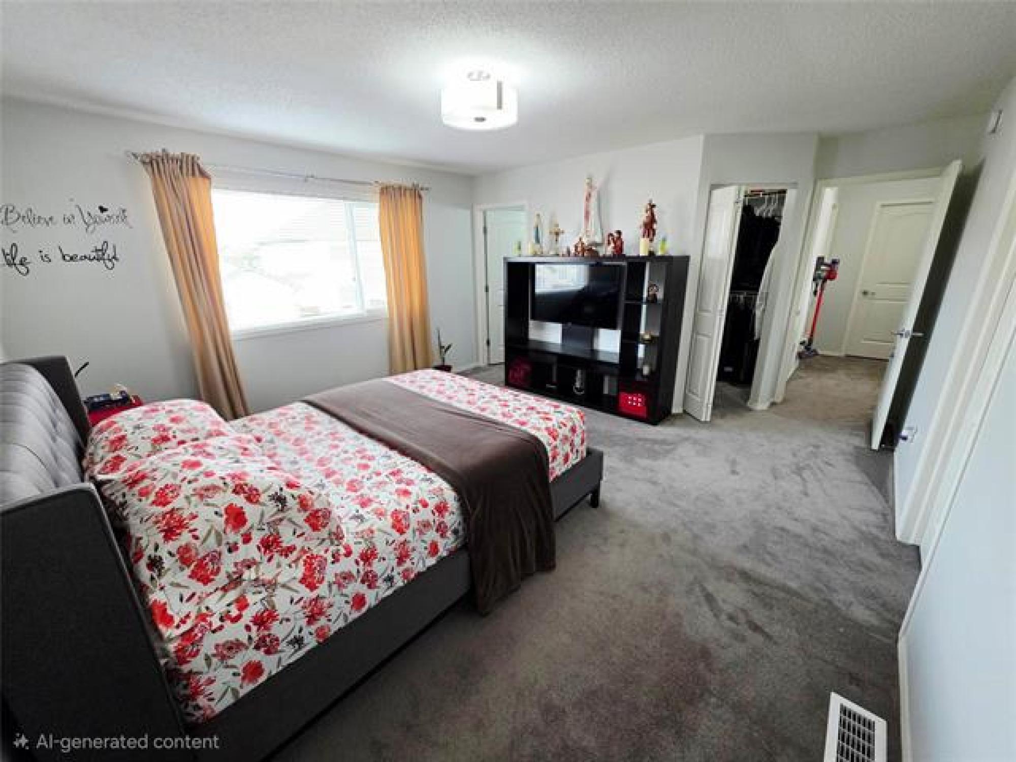 SS Now Offers as received! Welcome to this gorgeous 2,060 sf two-story home built by Randall homes in 2014. Perfect for a large or growing family! Featuring 5 bedrooms and 4 bathrooms, this spacious property offers comfort, functionality, and style throughout. Upstairs you’ll find 4 generous bedrooms, 2 full bathrooms, and a convenient laundry room. The primary bedroom includes two closets and a private 4-piece ensuite. Main floor highlights include two inviting living rooms, an eat-in kitchen (NEW FRIDGE & STOVE 2025), beautiful tile backsplash and large pantry, a versatile bedroom/office, and a convenient half bath. Step through the patio doors off the kitchen into your maintenance-free backyard, complete with patio stones, decorative rock, garden beds, a large 12x14 gazebo (included), and a handy storage shed — perfect for entertaining or relaxing. The partially finished basement offers a large rec room, storage room and a 1/2 bath, with room to add your personal touch. Add an additional bedroom downstairs with an egress window. Double garage 23x19 with a 16x7ft door. Don’t wait — move in before winter and make this stunning Amber Trails home yours!