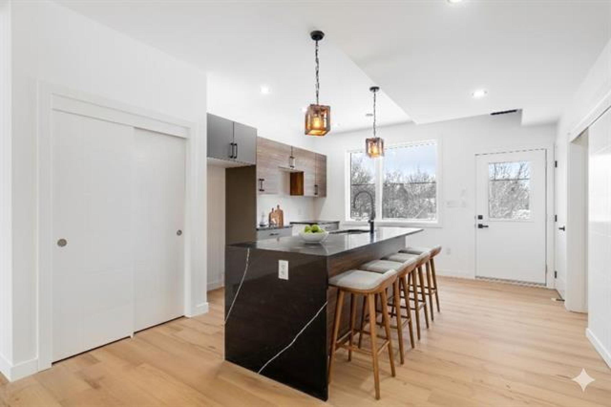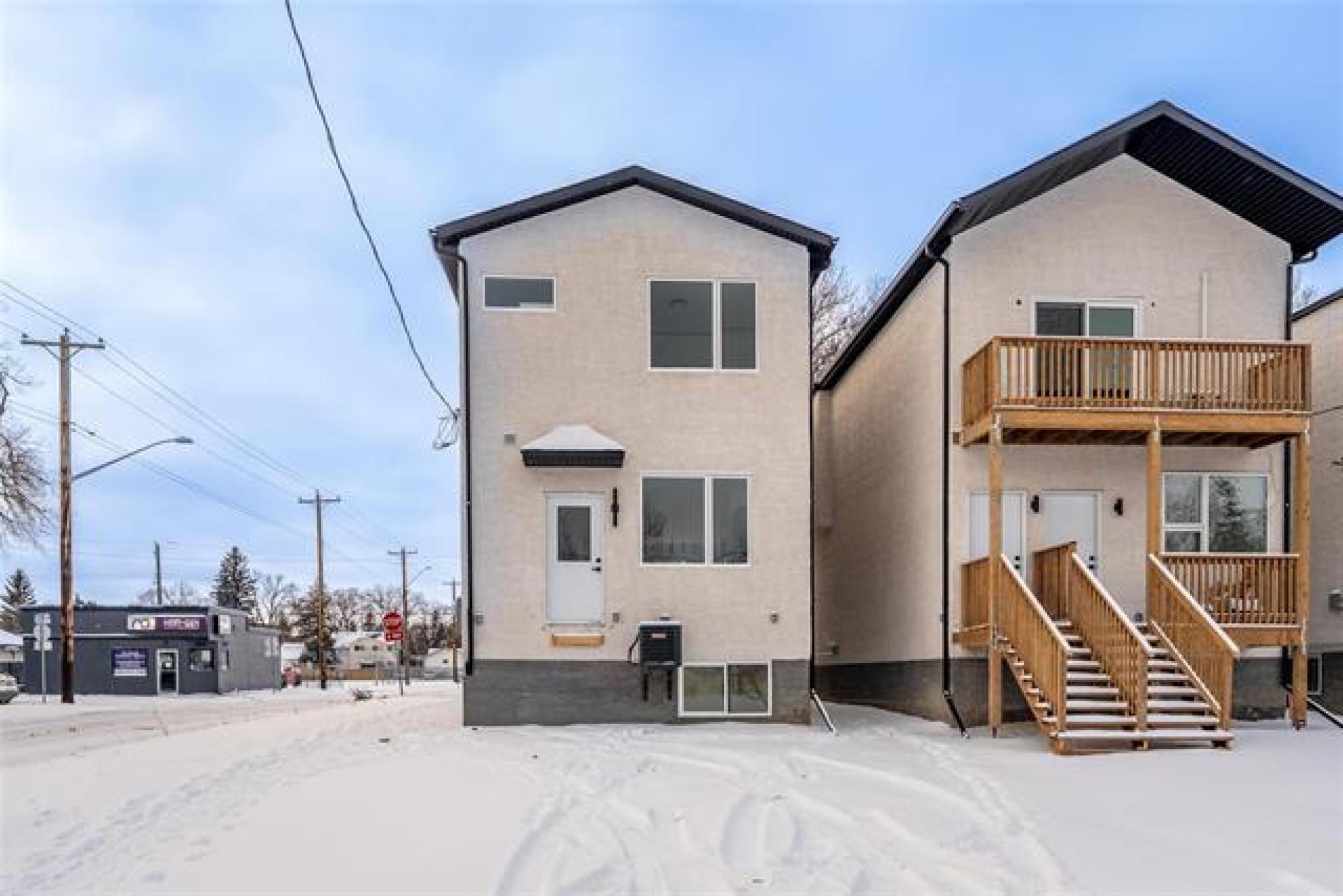 Located in the Deer Lodge community, close to Assiniboine Park, Polo Park Shopping Centre, and Portage Avenue, with easy access to public transit, Grace Hospital, and major commuter routes to downtown. This contemporary infill features 3 bedrooms in the primary suite, filled with natural light, a sleek ensuite with modern countertops, 2.5 baths, and convenient upper-level laundry. The main floor offers a spacious living and dining combination paired with a modern kitchen with balanced colour tones. The lower-level secondary suite includes 2 bedrooms, a 4-piece bathroom, in-suite laundry, and an open-concept living and kitchen layout—ideal for extended family or rental income. The property backs onto a creek with no rear neighbours. Stainless steel appliances are included for both units. Some photos have been virtually staged.