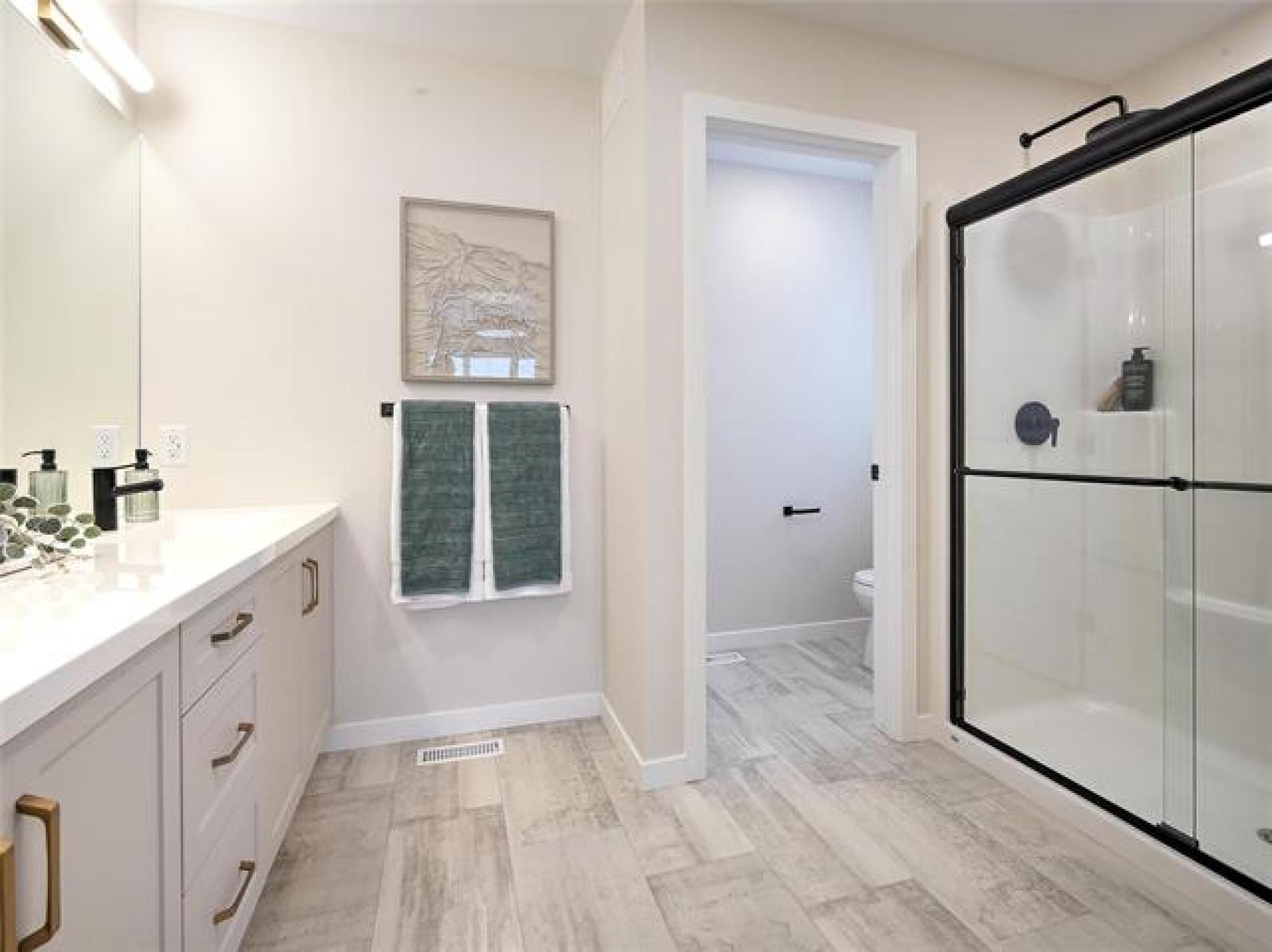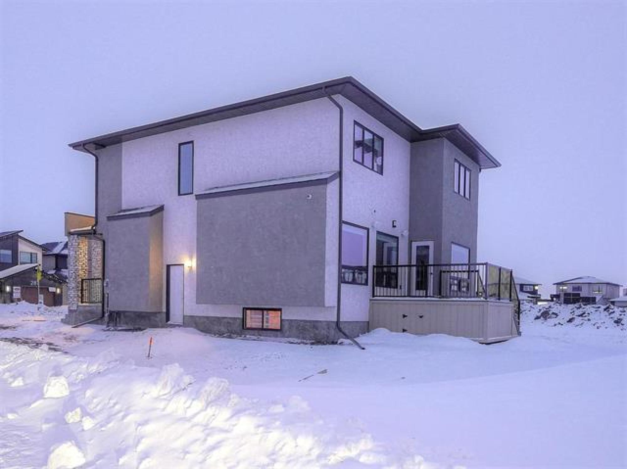 This exceptional two-storey Avanti showhome offers sophisticated living in one of Bison Run’s most sought-after locations. Situated on a beautiful lakeview lot, this home seamlessly blends high-end craftsmanship with thoughtful, modern design—creating the perfect family retreat. Home Highlights Include: • 5 spacious bedrooms and 3 well-appointed bathrooms, ideal for families or hosting guests • Oversized windows throughout, flooding the home with natural light • Elegant electric fireplace feature wall in the great room • Designer finishes including quartz countertops, soft-close cabinetry, and premium laminate flooring • Open-concept layout with sleek, contemporary styling • Energy-efficient high-efficiency furnace and 200-amp electrical service • Wood-capped railings with metal spindles and MS Delta Wrap foundation protection • 9-foot main-floor ceilings for a bright and spacious atmosphere • Double attached garage with workshop area • Composite deck with stone pillars and pre-finished metal railing * Side entrance + front & back landscaping. This is more than a home—it’s a statement of quality, comfort, and timeless design.