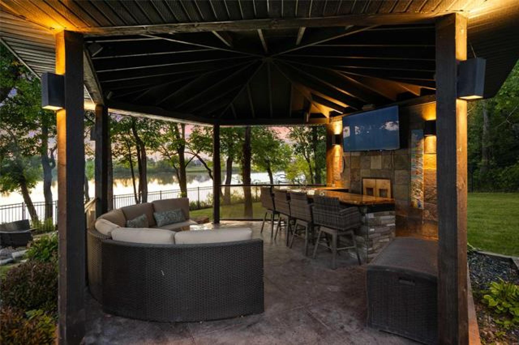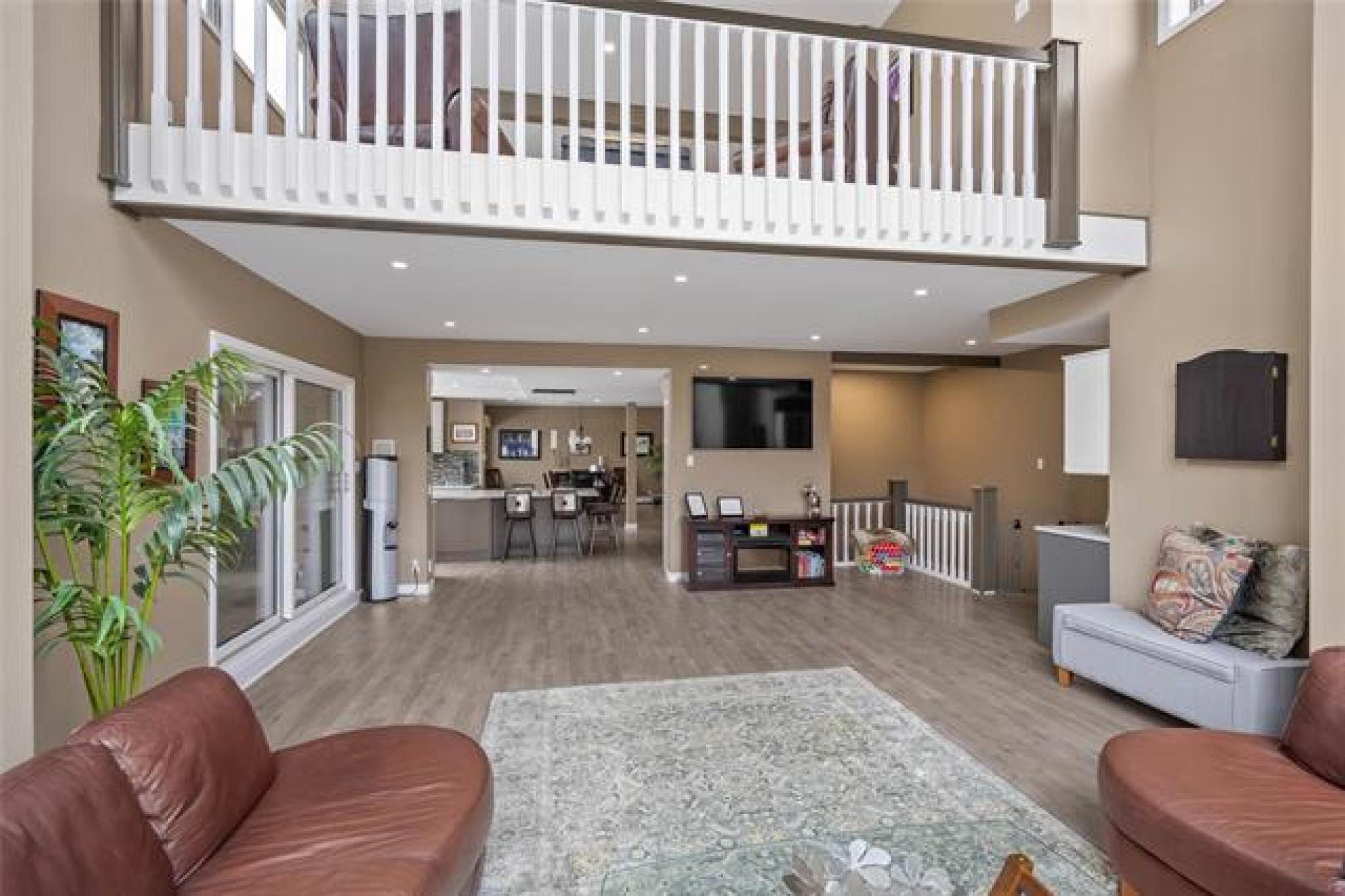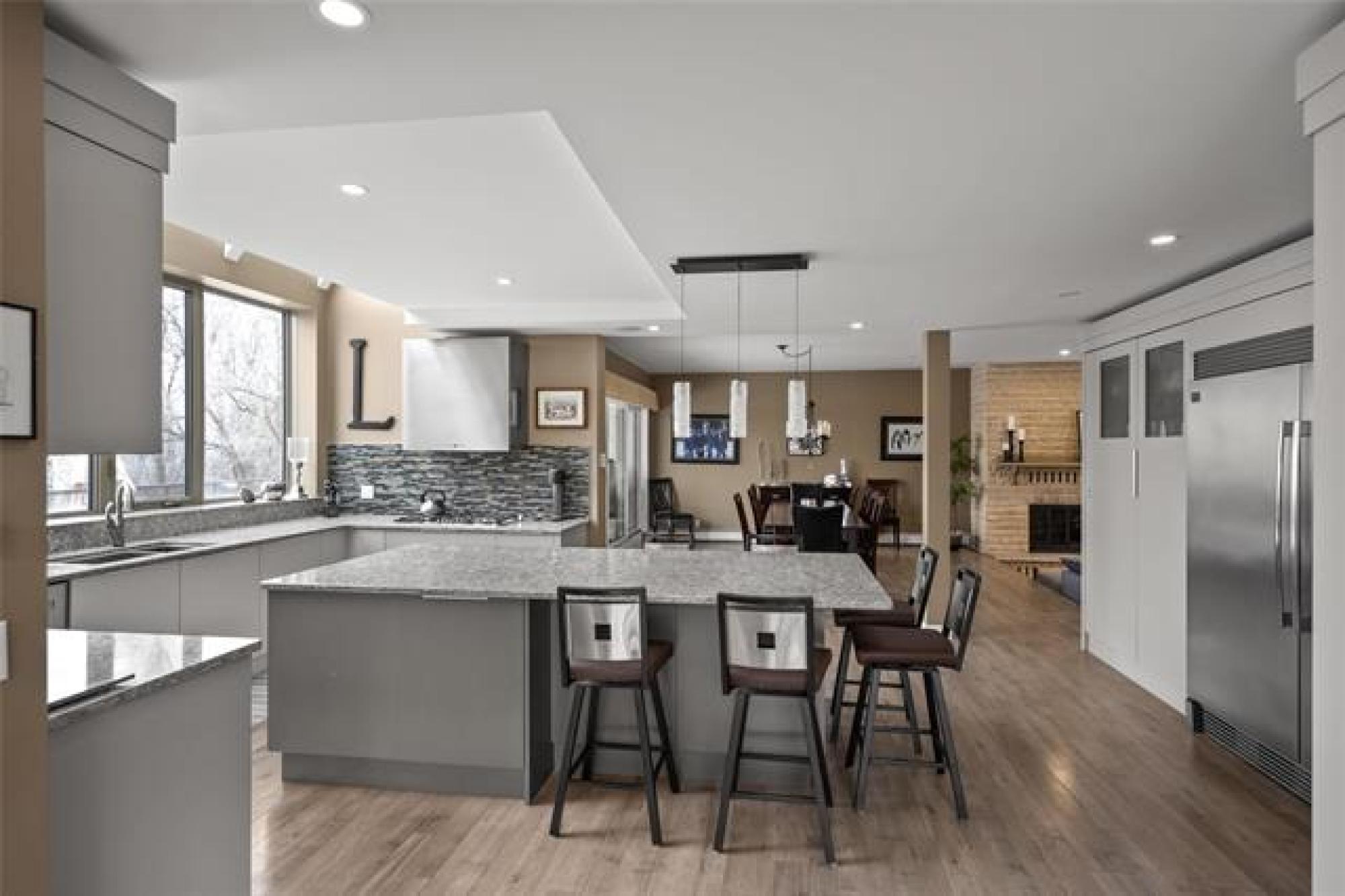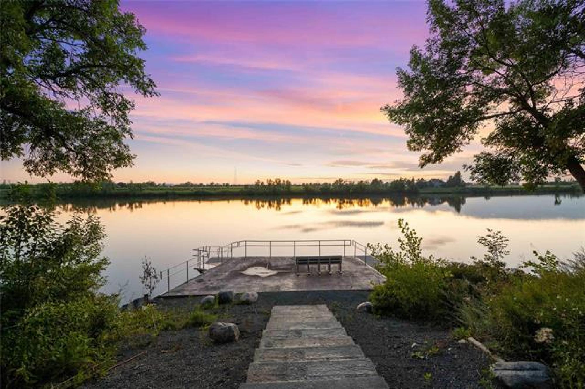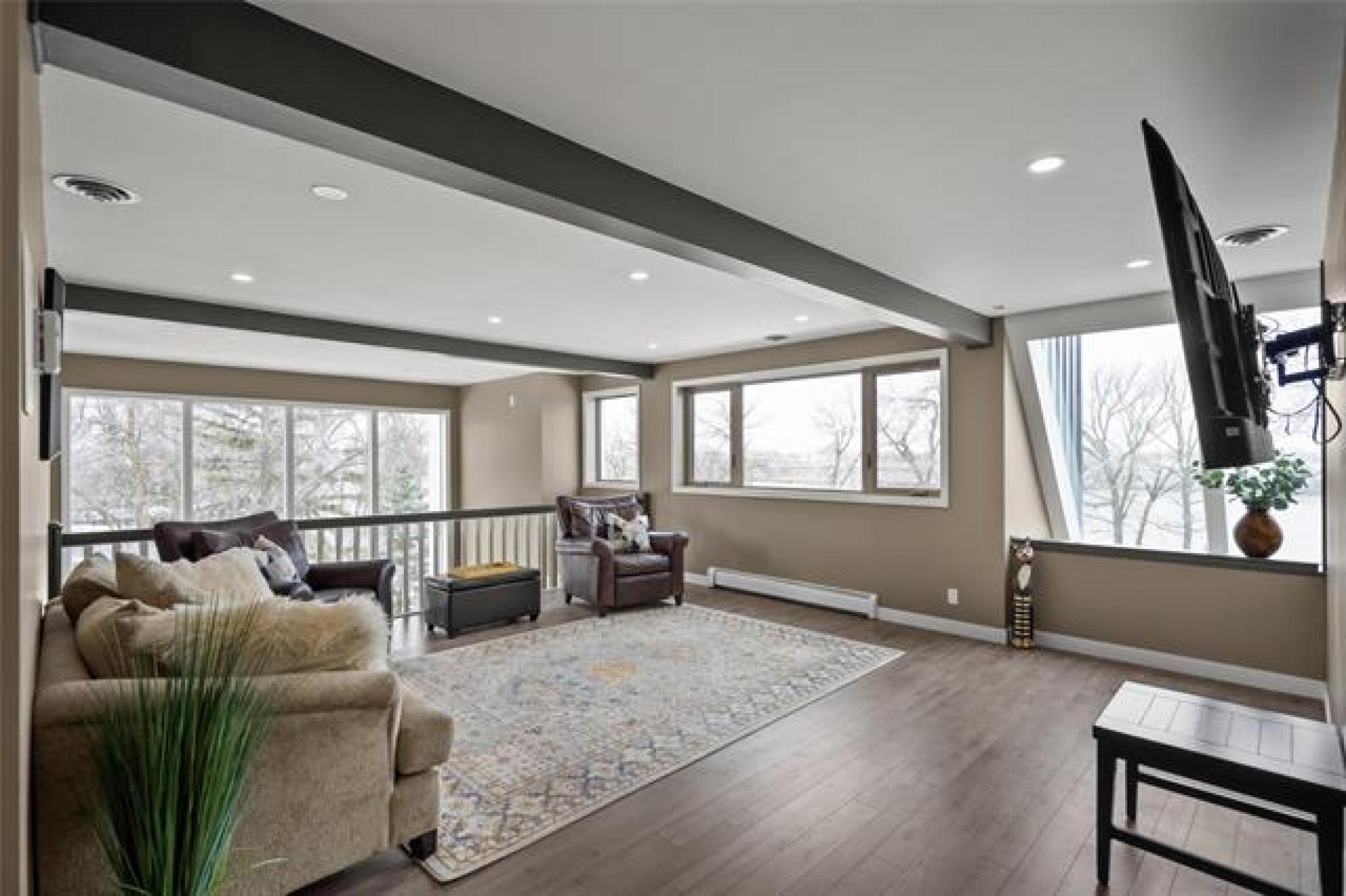 Discover this exquisite 4,110 SF riverfront two-storey estate set on 2.5 acres in desirable East St. Paul. Expansive windows bathe the home in natural light, showcasing an inviting living area with a cozy fireplace and an elegant, open dining space. The gourmet kitchen impresses with quartz countertops, a grand island, built-in stainless steel appliances, dual ovens, and an oversized fridge. Upstairs, a spacious loft leads to the serene primary suite featuring a private balcony, floor-to-ceiling mirrored closets, and a spa-inspired 4-piece ensuite. Three additional bedrooms and a dual vanity bathroom complete the upper level. The lower level offers an expansive rec room with a 3-piece bath, ideal for family gatherings and entertaining. A versatile workshop, currently a gym, and a quadruple detached garage provide exceptional flexibility and storage. Step into the sunroom and out to your private resort-style oasis with an in-ground pool, hot tub, volleyball court, outdoor bar, raised deck, cozy fire pit and private dock. This extraordinary property embodies timeless elegance, comfort, and luxury in one of East St. Paul’s most coveted settings.