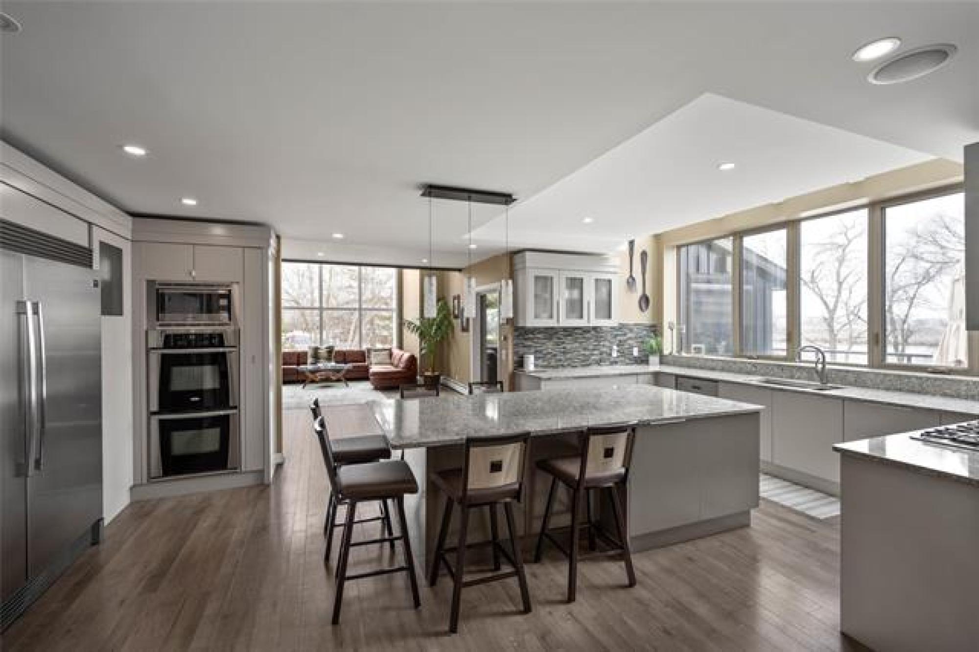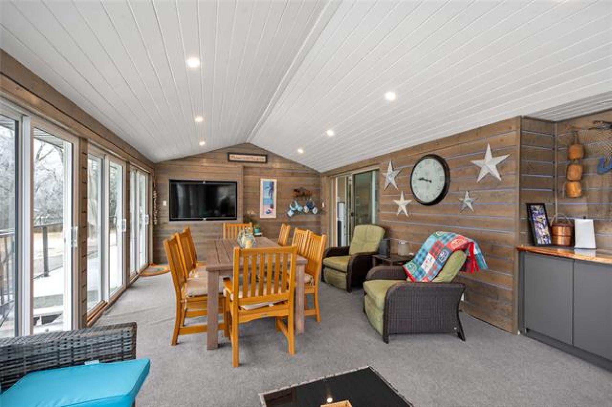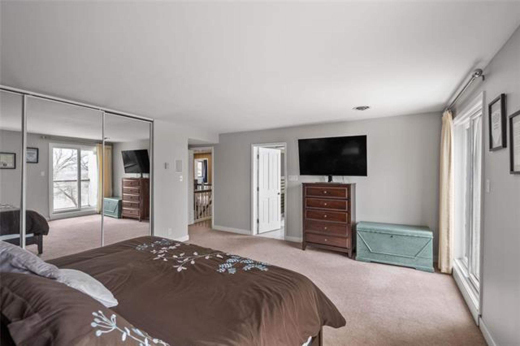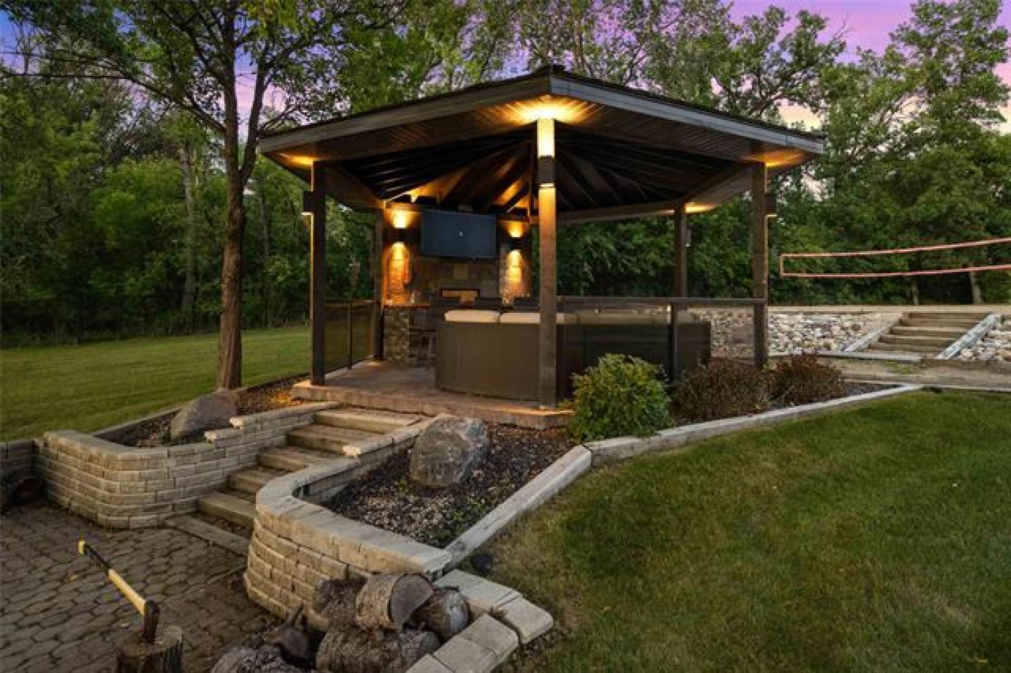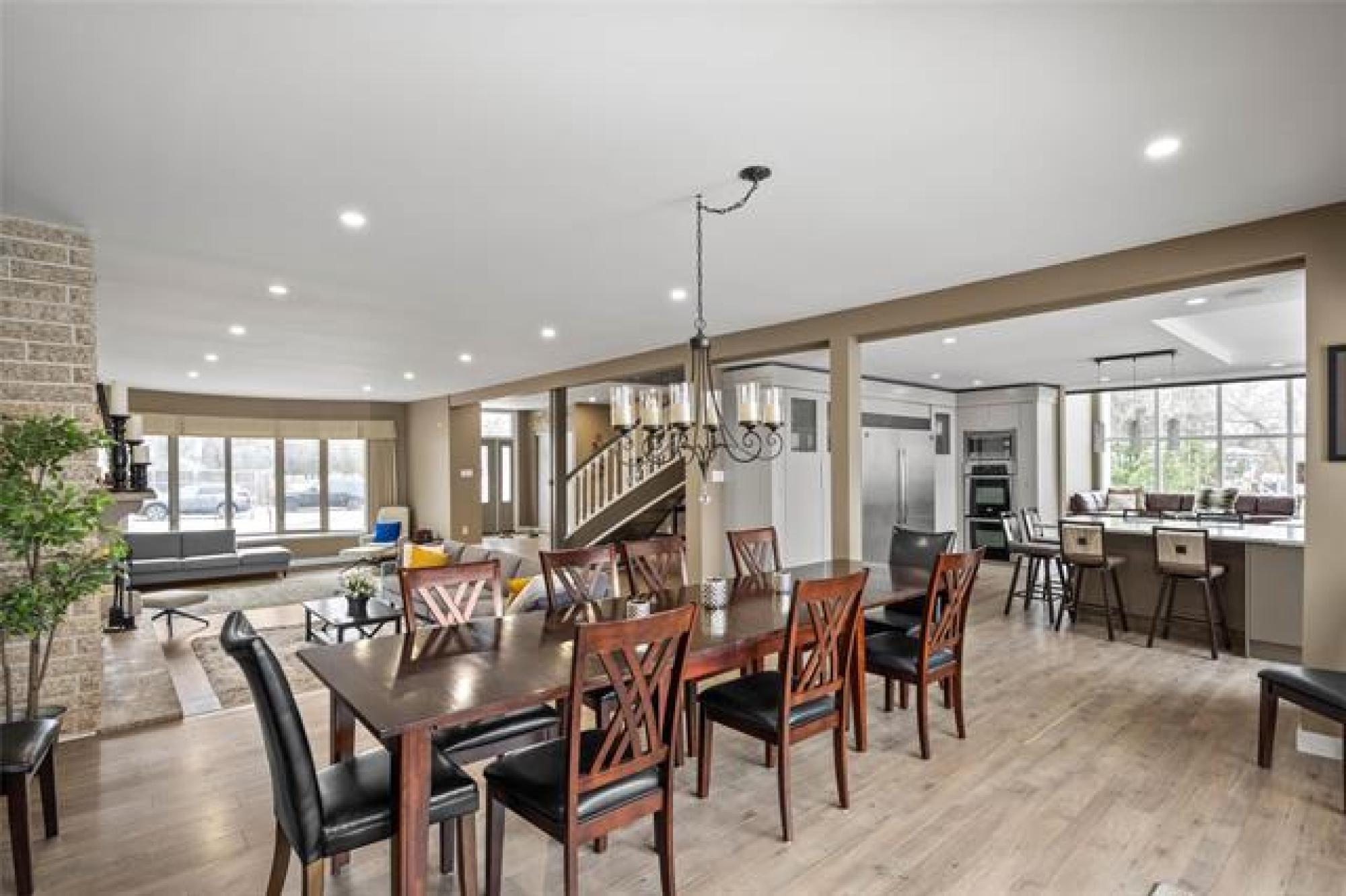 Discover this exquisite 4,110 SF riverfront two-storey estate set on 2.5 acres in desirable East St. Paul. Expansive windows bathe the home in natural light, showcasing an inviting living area with a cozy fireplace and an elegant, open dining space. The gourmet kitchen impresses with quartz countertops, a grand island, built-in stainless steel appliances, dual ovens, and an oversized fridge. Upstairs, a spacious loft leads to the serene primary suite featuring a private balcony, floor-to-ceiling mirrored closets, and a spa-inspired 4-piece ensuite. Three additional bedrooms and a dual vanity bathroom complete the upper level. The lower level offers an expansive rec room with a 3-piece bath, ideal for family gatherings and entertaining. A versatile workshop, currently a gym, and a quadruple detached garage provide exceptional flexibility and storage. Step into the sunroom and out to your private resort-style oasis with an in-ground pool, hot tub, volleyball court, outdoor bar, raised deck, cozy fire pit and private dock. This extraordinary property embodies timeless elegance, comfort, and luxury in one of East St. Paul’s most coveted settings.