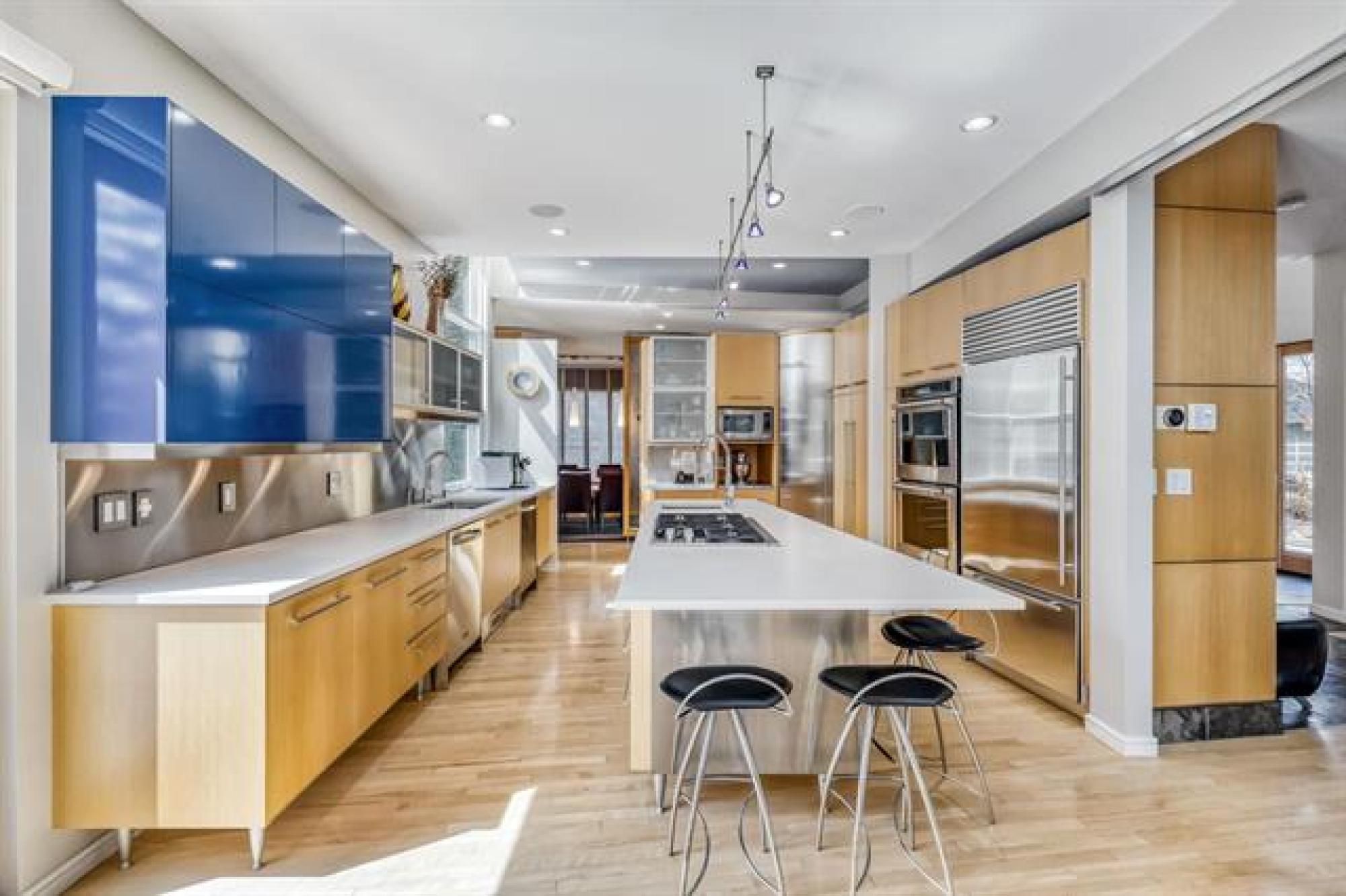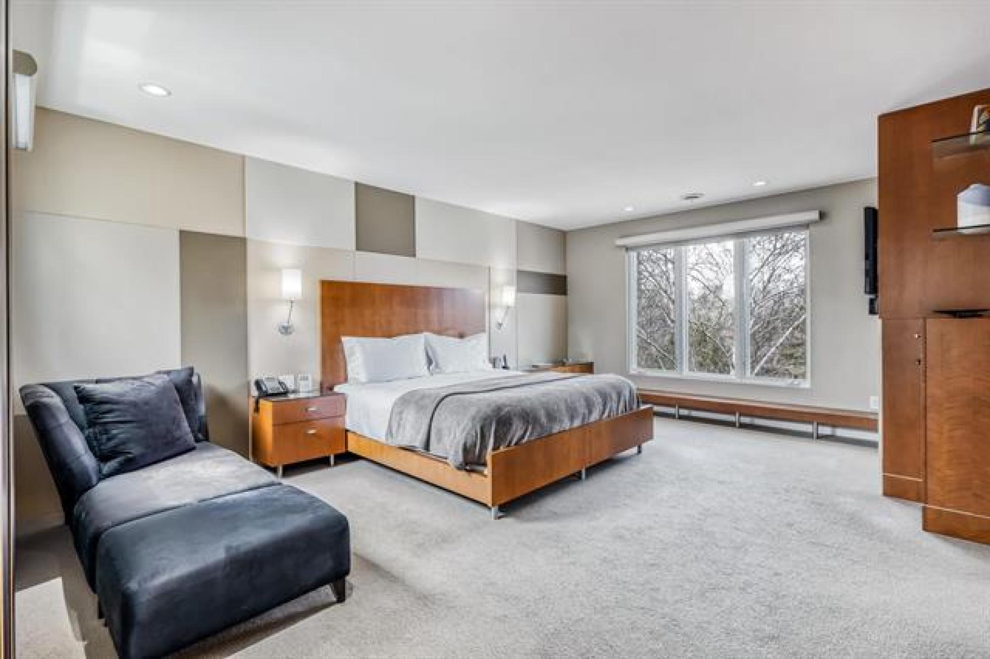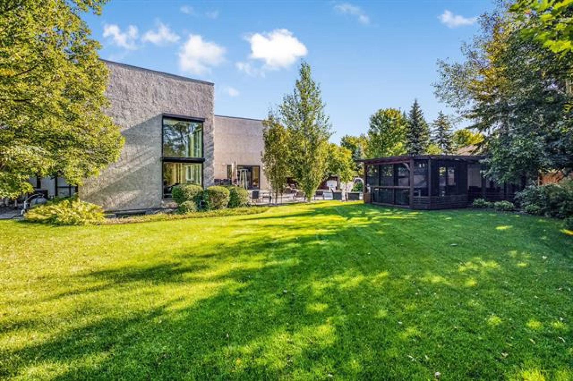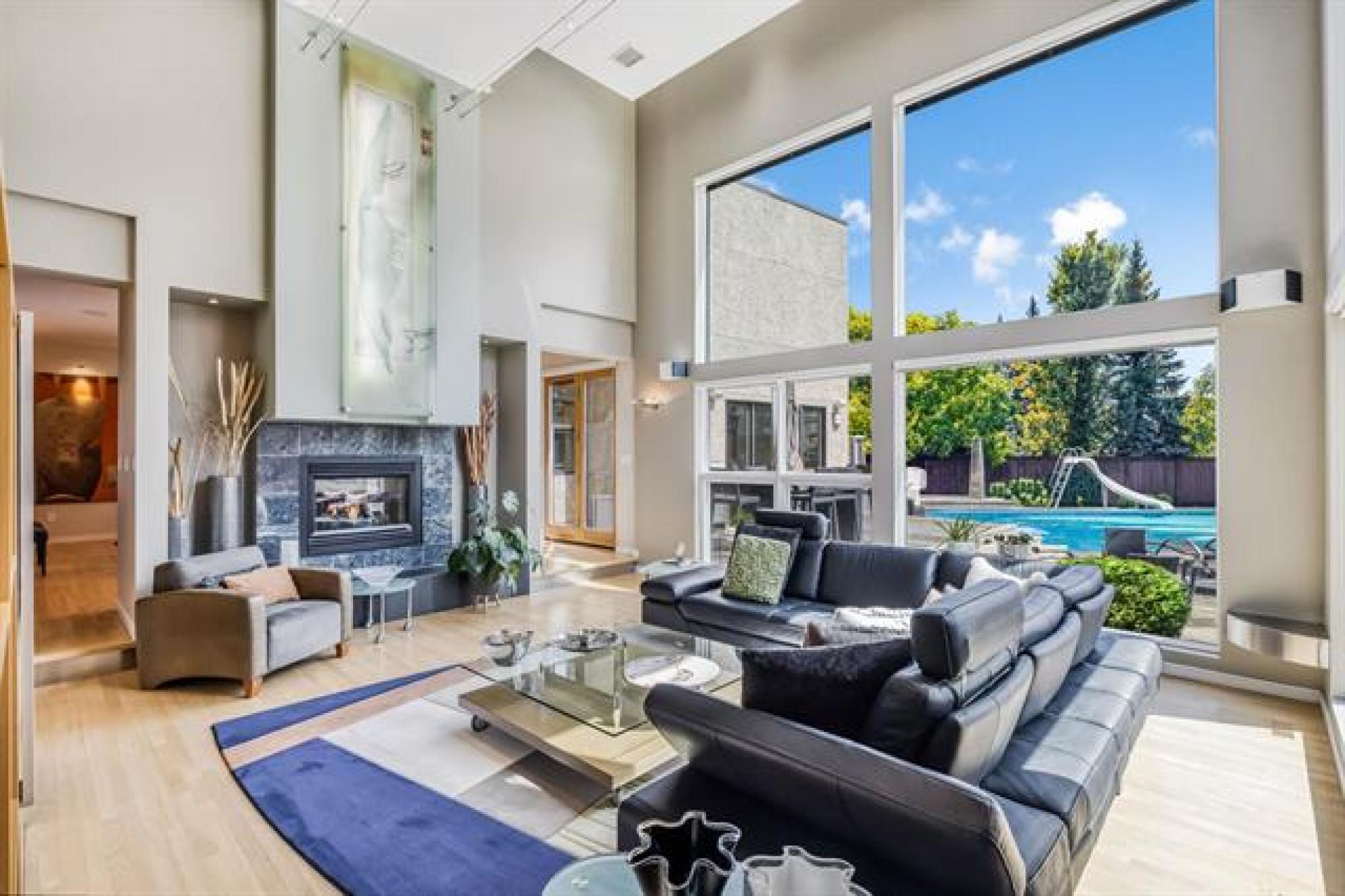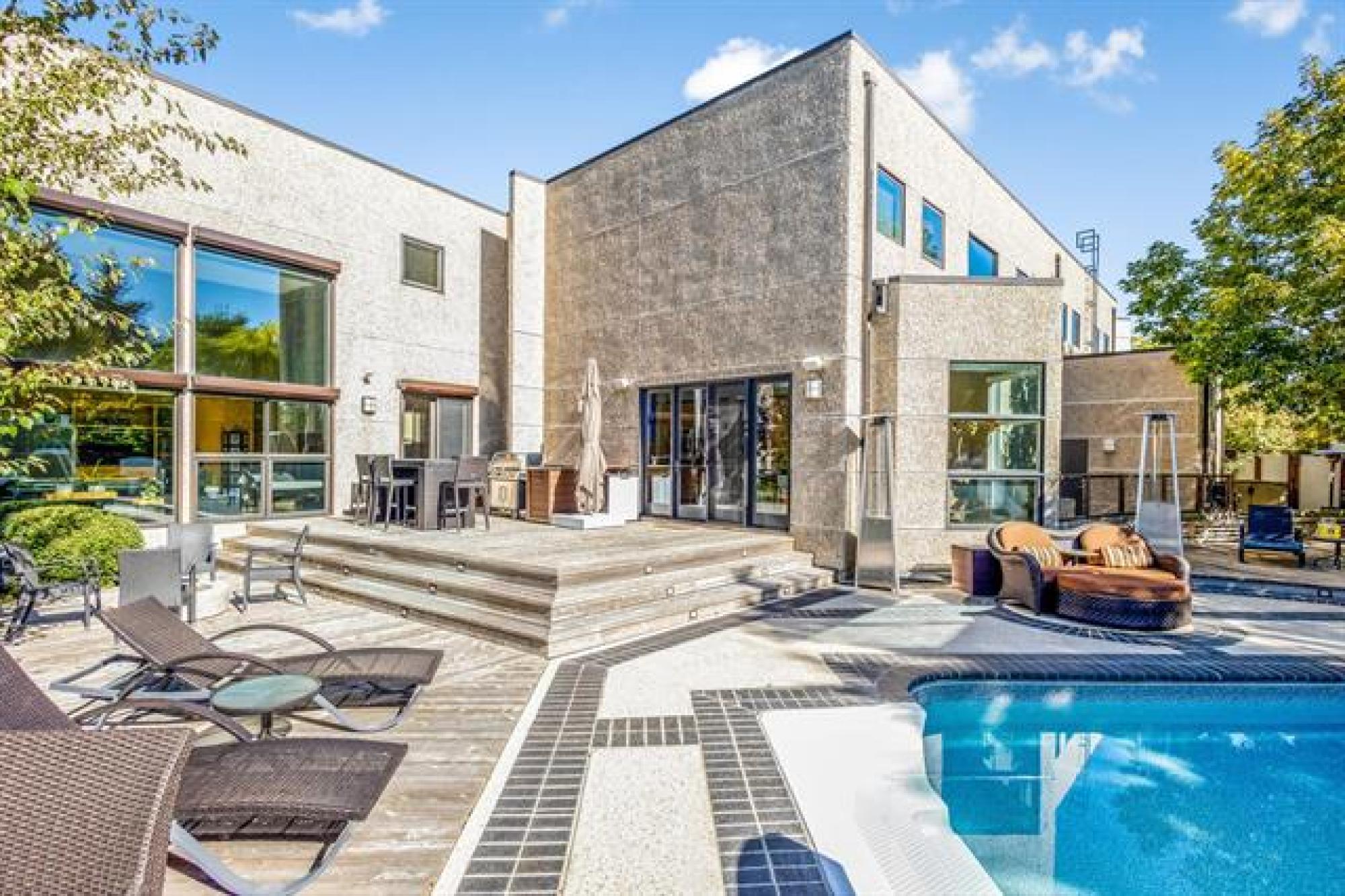 A true architectural masterpiece custom built by Art Gross Builders, this one-of-a-kind Tuxedo home offers over 4,200 sq ft of exceptional design and craftsmanship on an 18,932 sq ft lot. The grand foyer with double glass doors, soaring ceilings, and Carrara tile flooring sets the tone for the elegant interior. Sunken great room with feature wall, custom media unit, and floor-to-ceiling windows overlooking a spectacular backyard oasis with pool, deck, outdoor kitchen, and screened gazebo. Gourmet Beechwood kitchen with Wolf cooktop, Sub-Zero fridge, dual dishwashers, double ovens, stone island, and built-in bar. Main floor office, mudroom, and 2-pc bath. Upstairs features a private primary suite with fireplace, dual walk-ins, spa-style ensuite with steam shower & air tub, plus 3 additional bedrooms each with built-ins and baths. Finished lower level with media room, gym, and guest suite. Triple attached garage. Steps to Assiniboine Forest—an incomparable Tuxedo retreat!