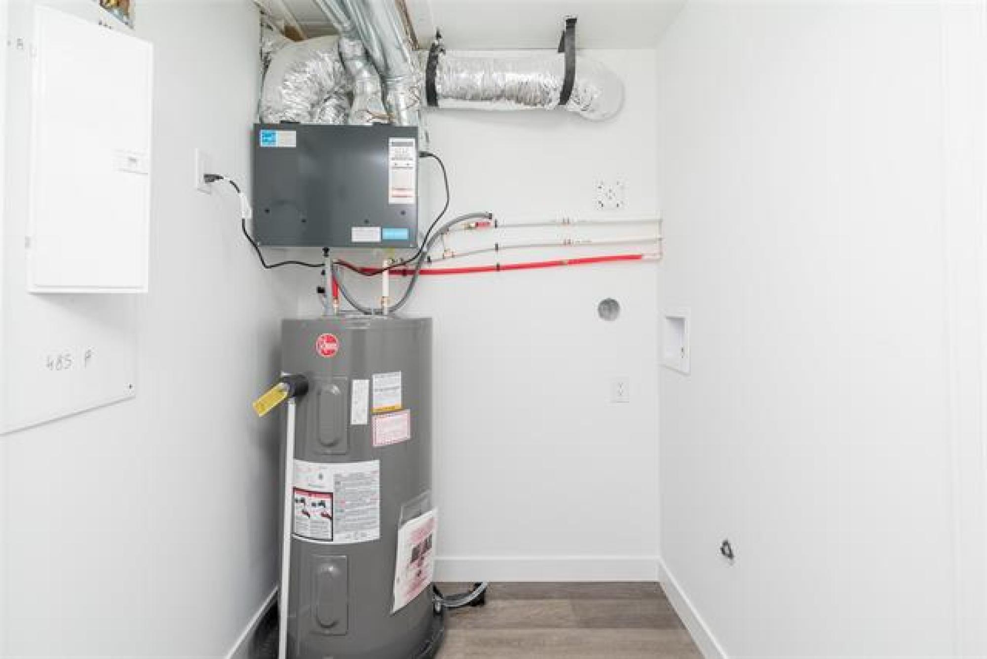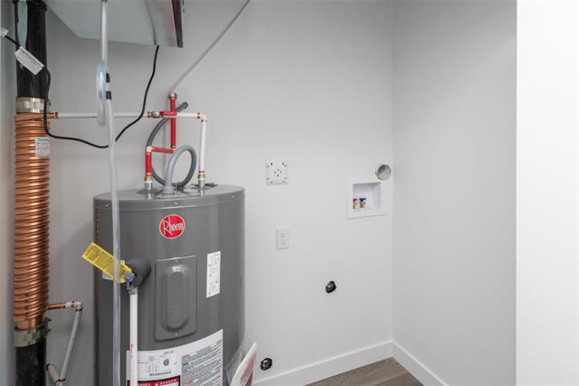 Offer Presentation: December 2, 2025 Evening. Two-storey Duplex offers over 2,100 sq.ft. living space & includes a legal secondary suite on the second floor—ideal as an investment. Total rental income: $3500 + utilities per month. Each unit is equipped with its own utilities & laundry for added convenience. The main level welcomes you with a bright, open-concept layout featuring a spacious living room, a centrally positioned kitchen with modern cabinetry & quartz countertops, & a dining area perfect for family gatherings or hosting guests. This unit includes three bedrooms, two full bathrooms, & an in-suite laundry area. The upper suite has a private entrance & offers two comfortable bedrooms, a full bathroom, an eat-in kitchen, & a generous living space with access to its own balcony. Quality finishes are found throughout the home, including 9-ft ceilings on the main floor and basement, vinyl plank flooring, black trim details, high-efficiency windows & doors, HRV, high efficiency furnace, upgraded cabinetry, & air conditioning for both units. Exterior features include rear decks for both suites, a concrete walkway, gravel parking pad, & construction on piles for long-term durability.